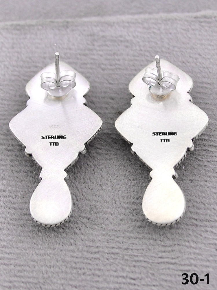 Southwest Made White Buffalo & Sterling Silver Post Earrings. It measures 1 1/8 inches long and 7/8 of an inch wide. Stamped and signed.
