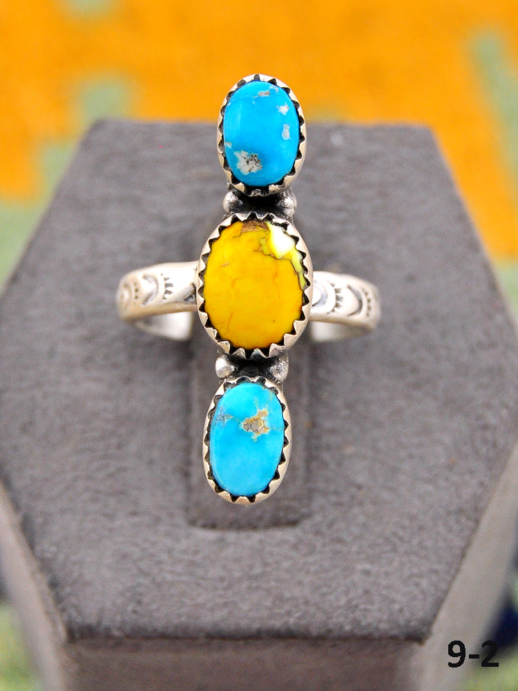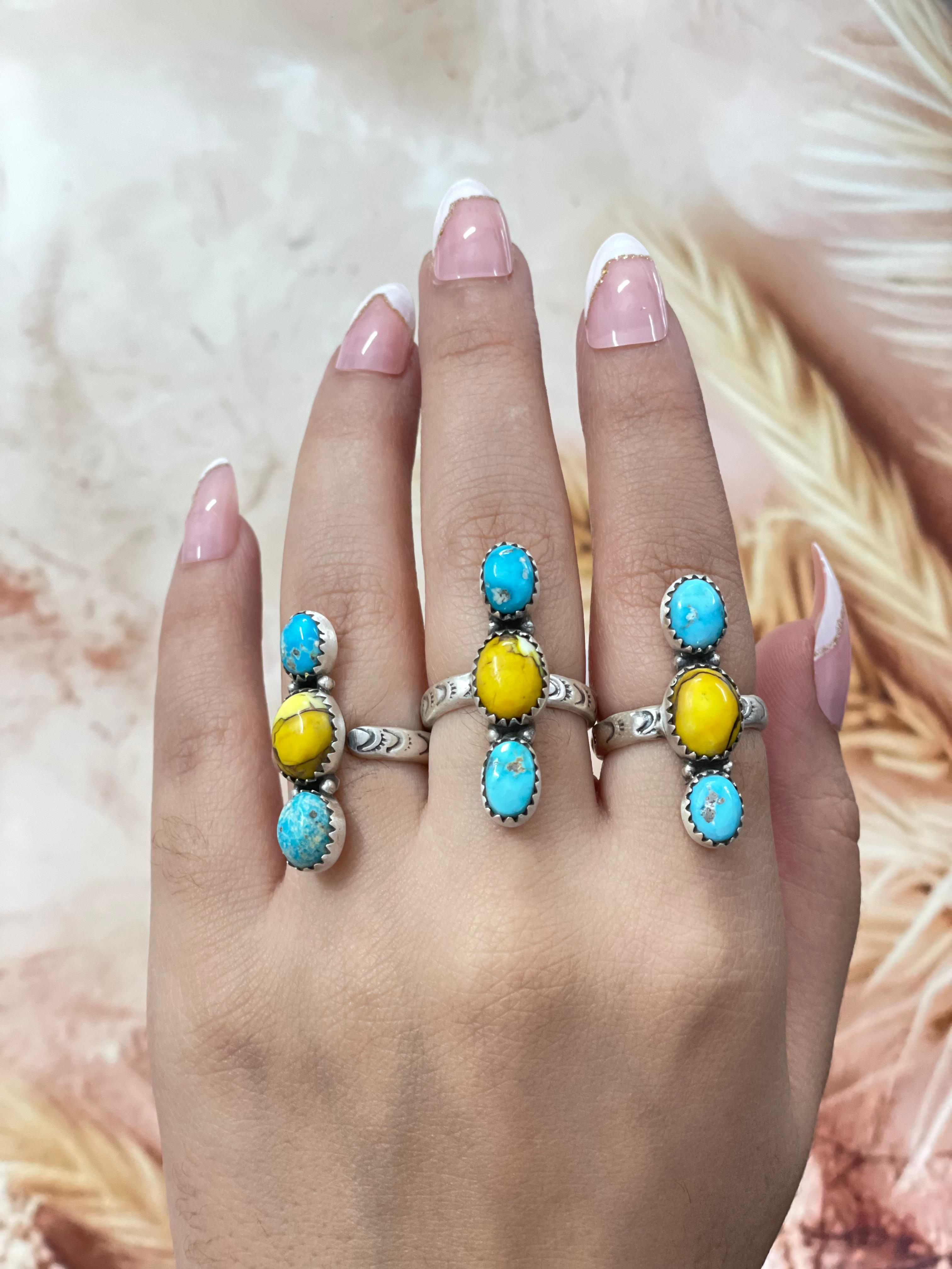 Southwest Made Multi Stone & Sterling Silver Adjustable Ring