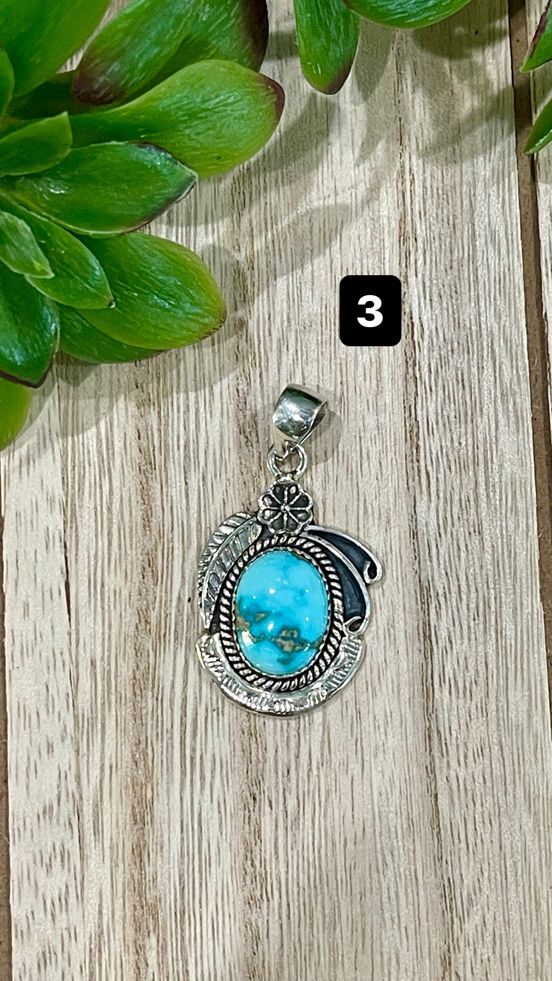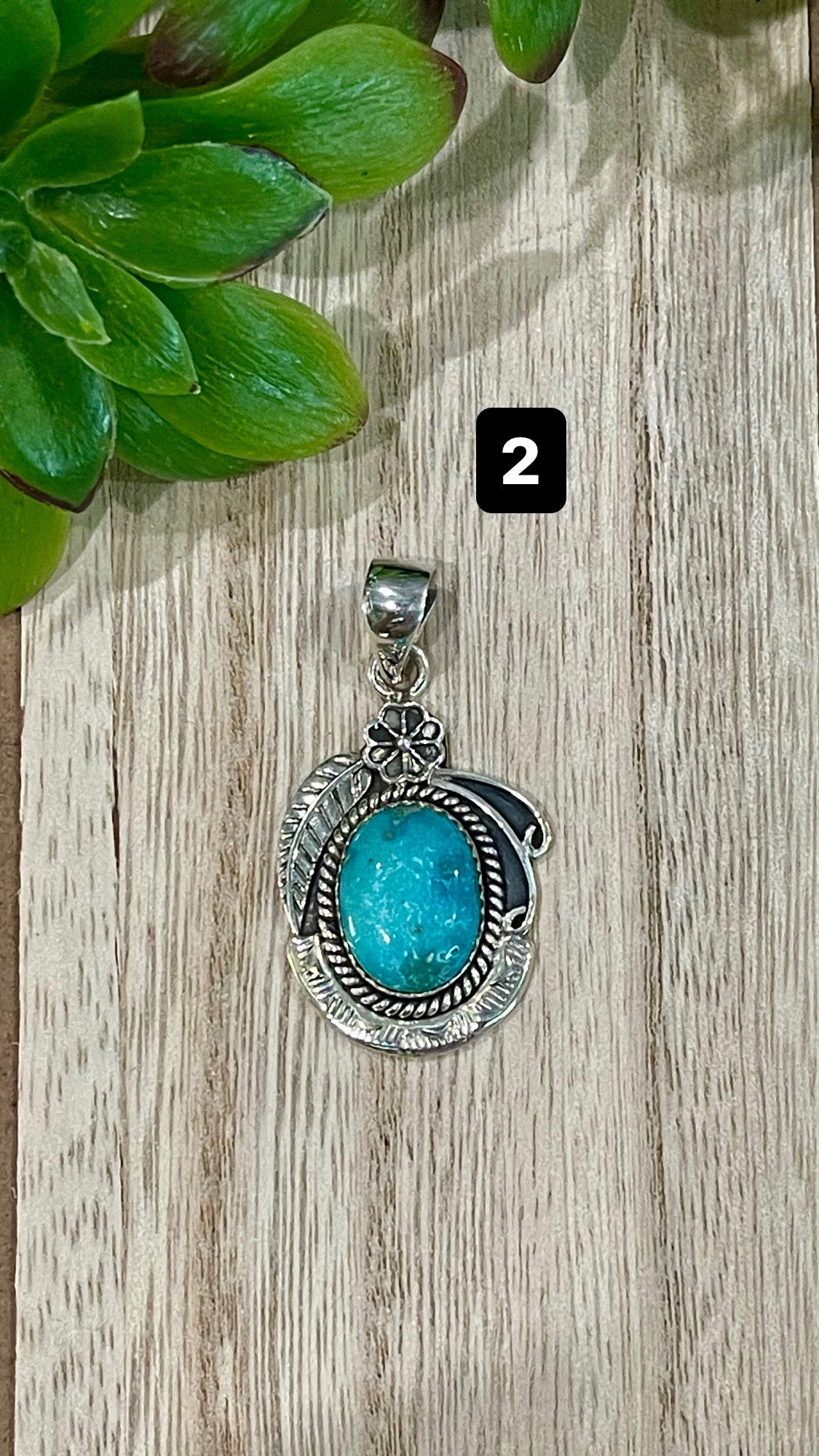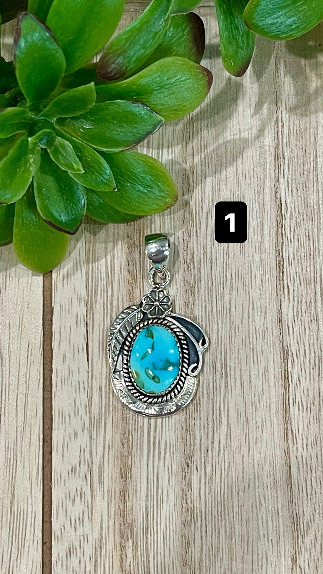 Beautiful Pendant. Southwest Made Sonoran Mountain Turquoise & Sterling Silver Pendant. They measure just over 1 5/8 inches long and 7/8 of an inch wide. Signed by the artist and stamped sterling silver. Pendant Only. Thank you for checking out my store, if you have any questions please contact me!!