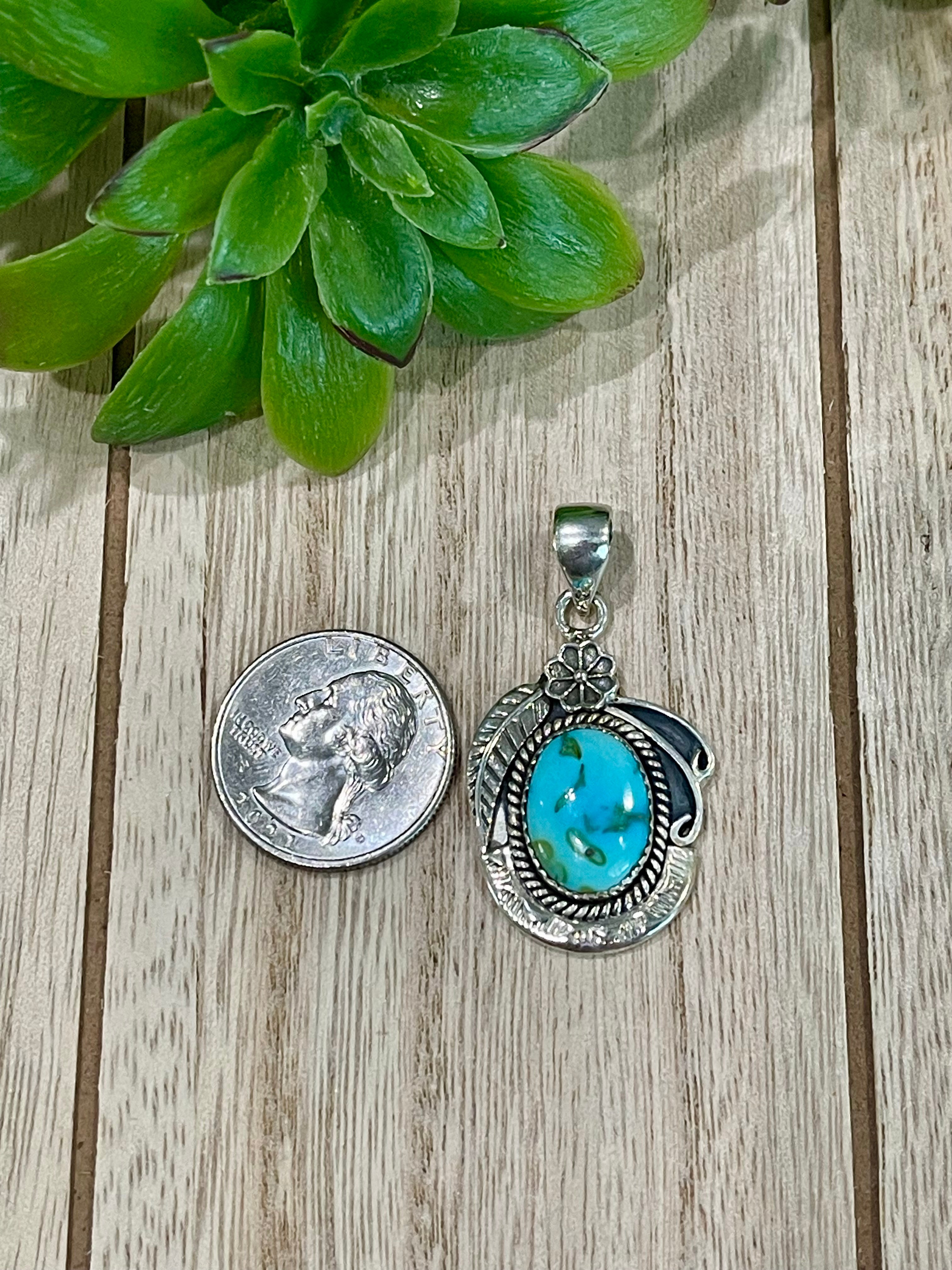 Southwest Handmade Sonoran Mountain Turquoise & Sterling Silver Pendant