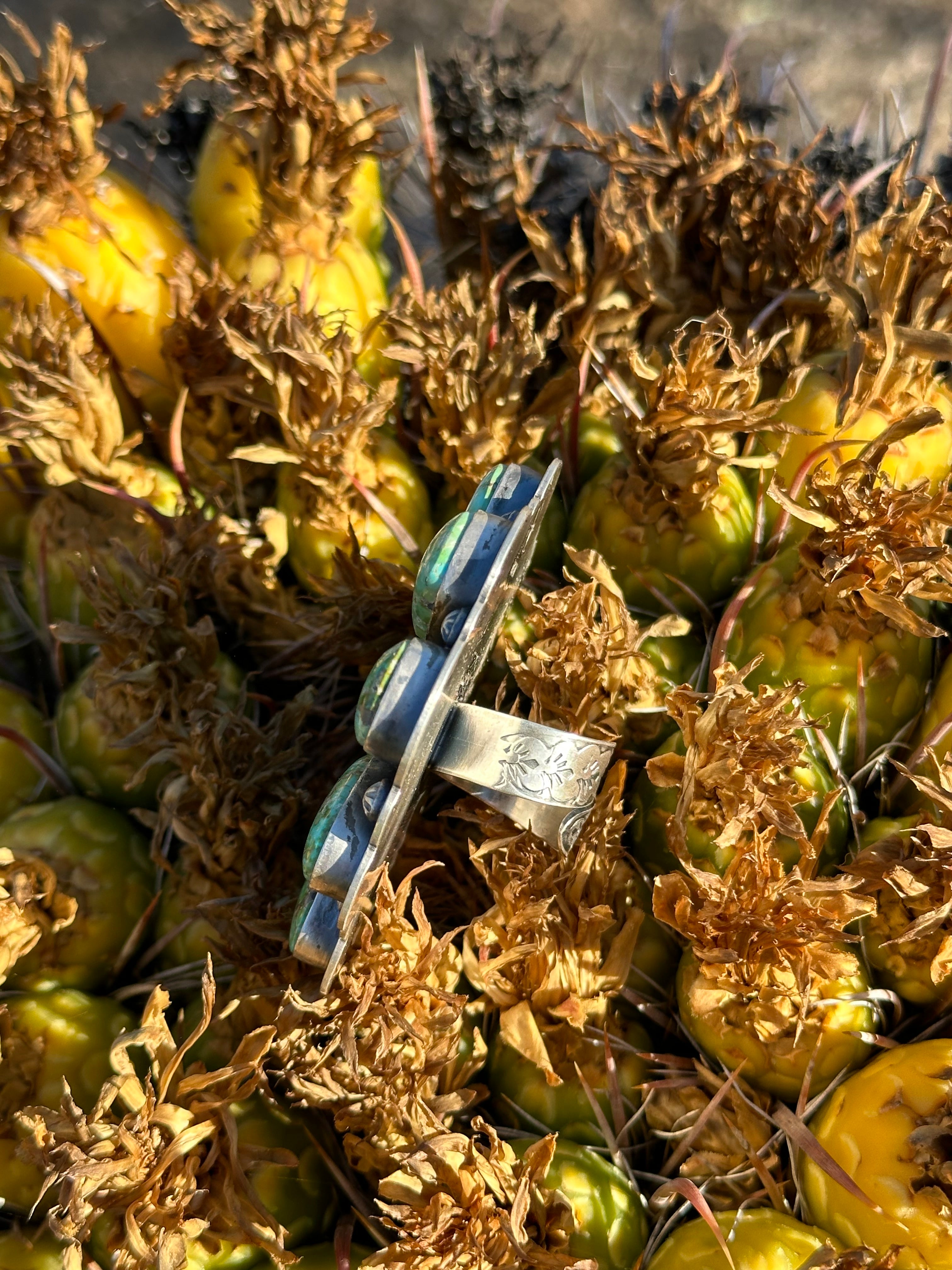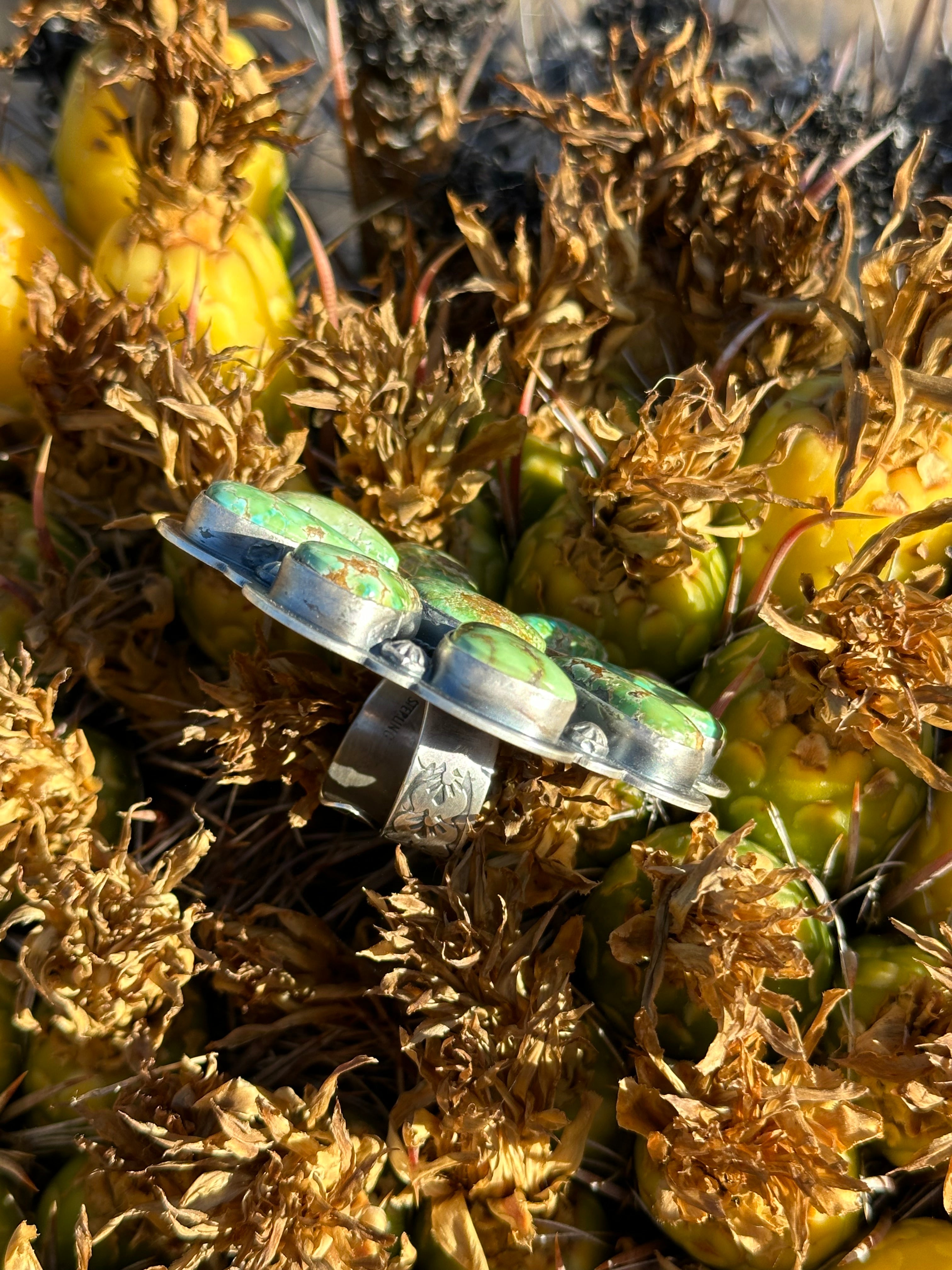 Steven Nez Sonoran Gold Turquoise & Sterling Silver Cluster Adjustable Ring