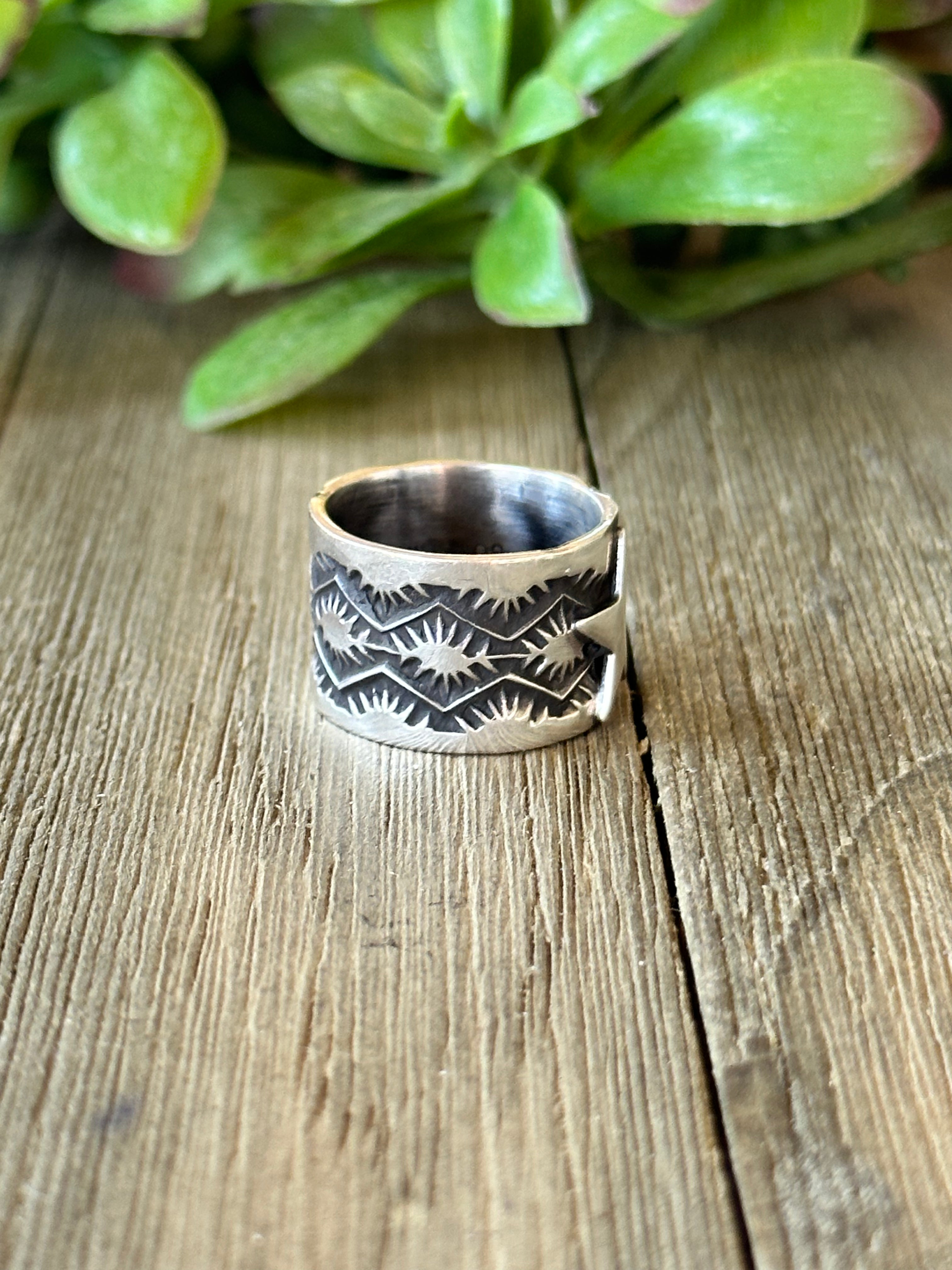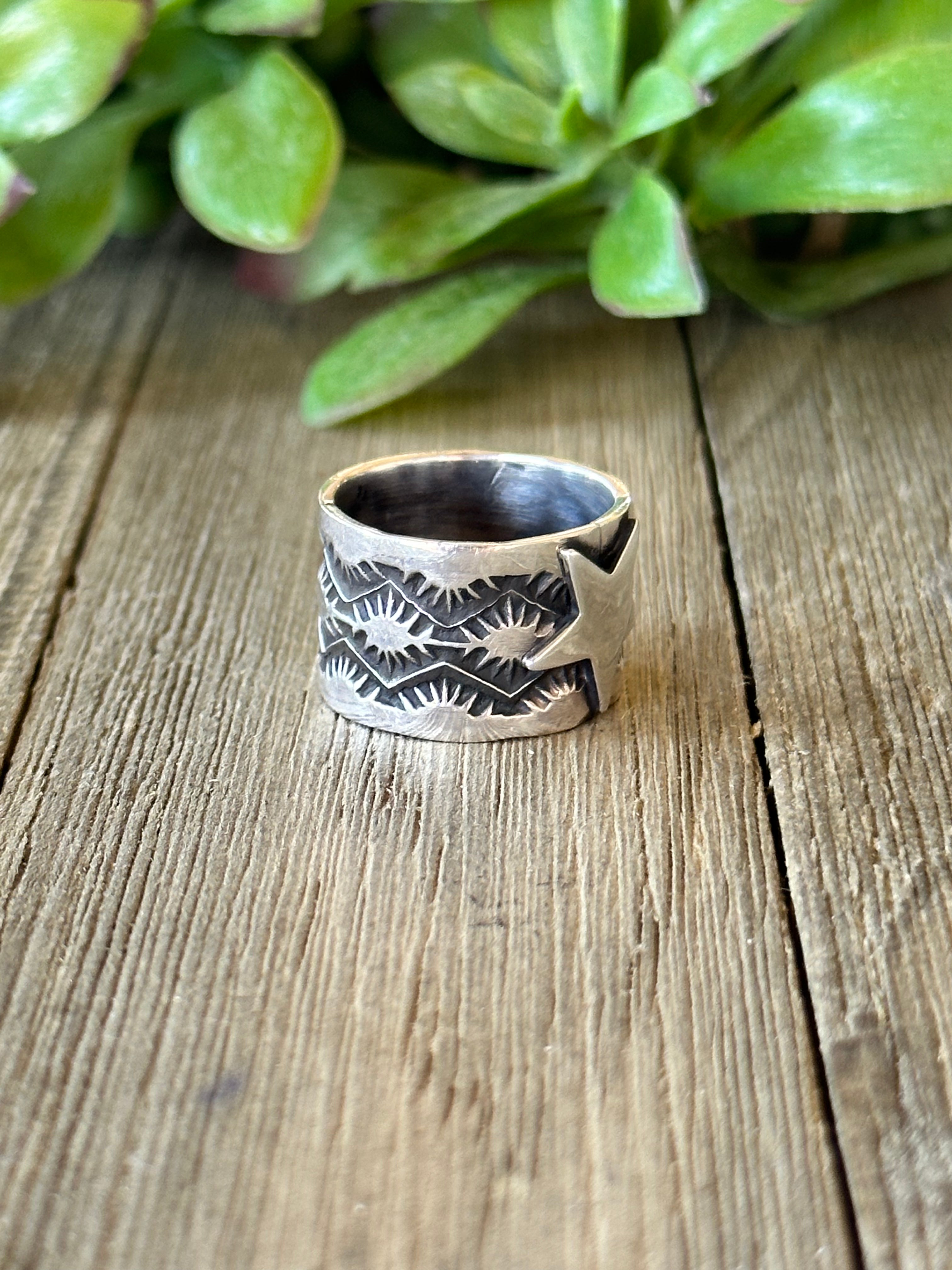 A beautiful Ring. Sunshine Reeve & Sterling Silver Ring Size 7.5. It measures just over 1/2 of an inch long. Signed by the artist and stamped sterling silver.