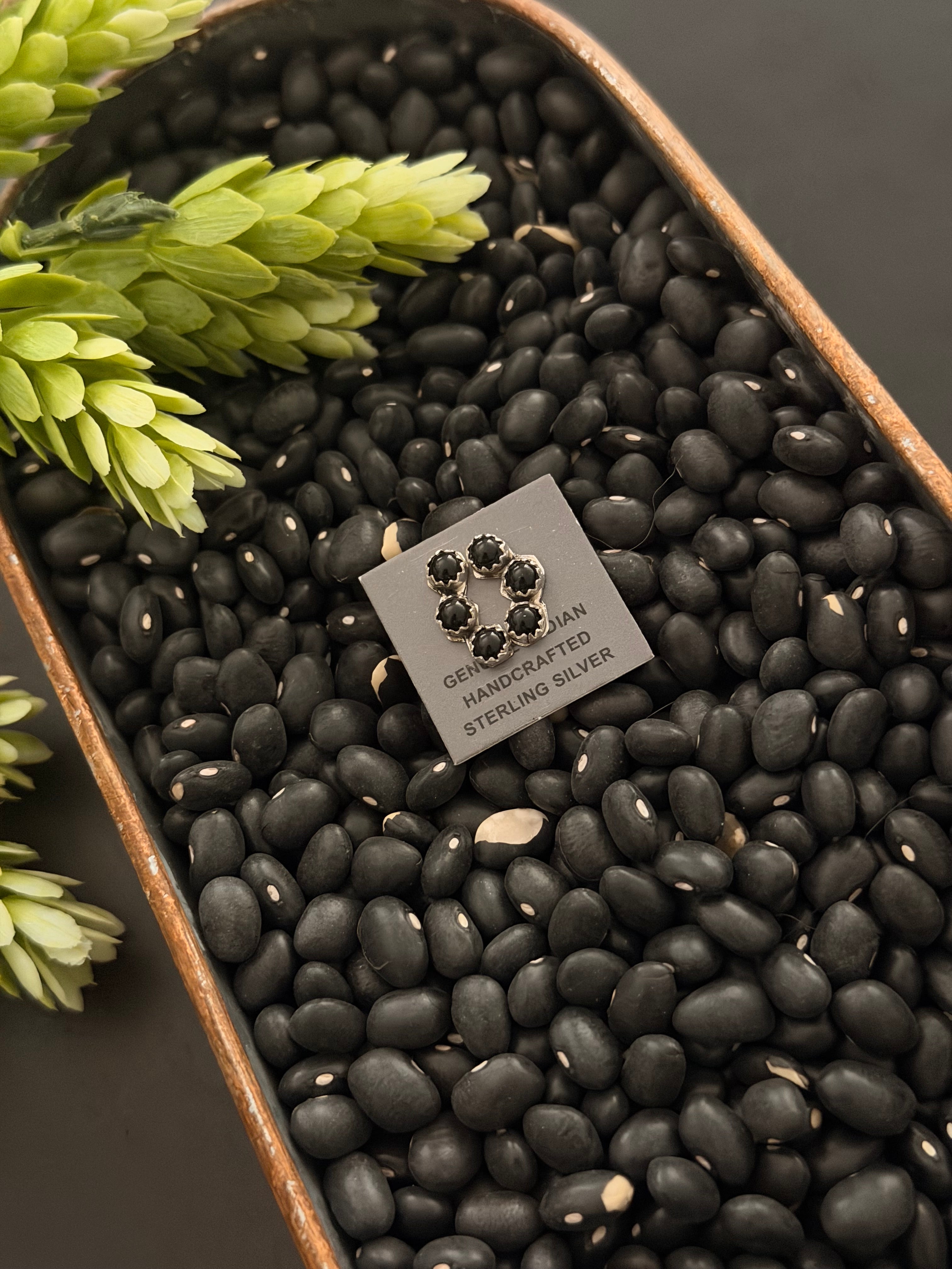 Sylvia Chee Onyx & Sterling Silver Post Cluster Earrings. It measures just over 1/2 of an inch long and just under 1/4 of an inch wide. Stones will differ due to natural stones.