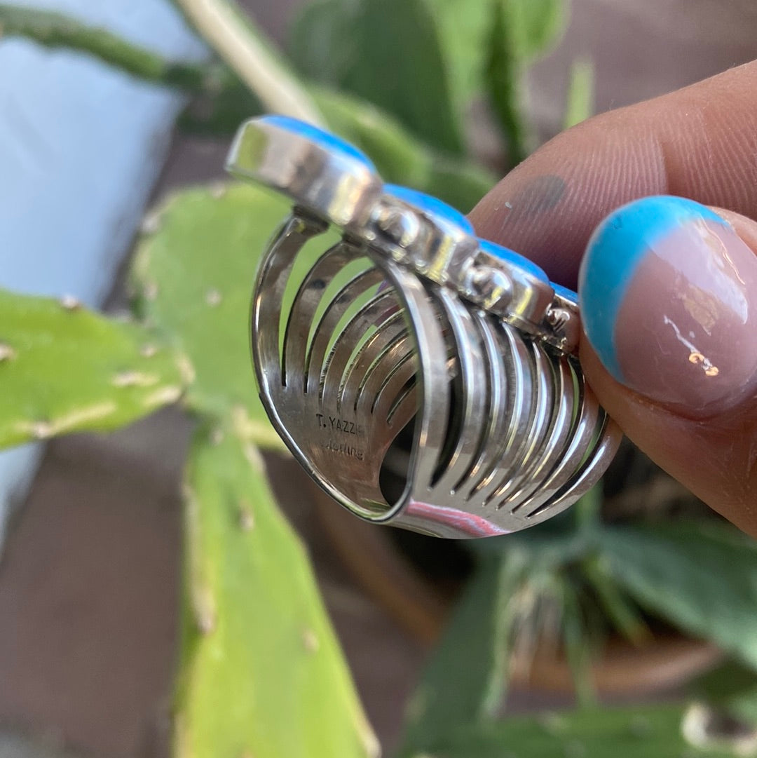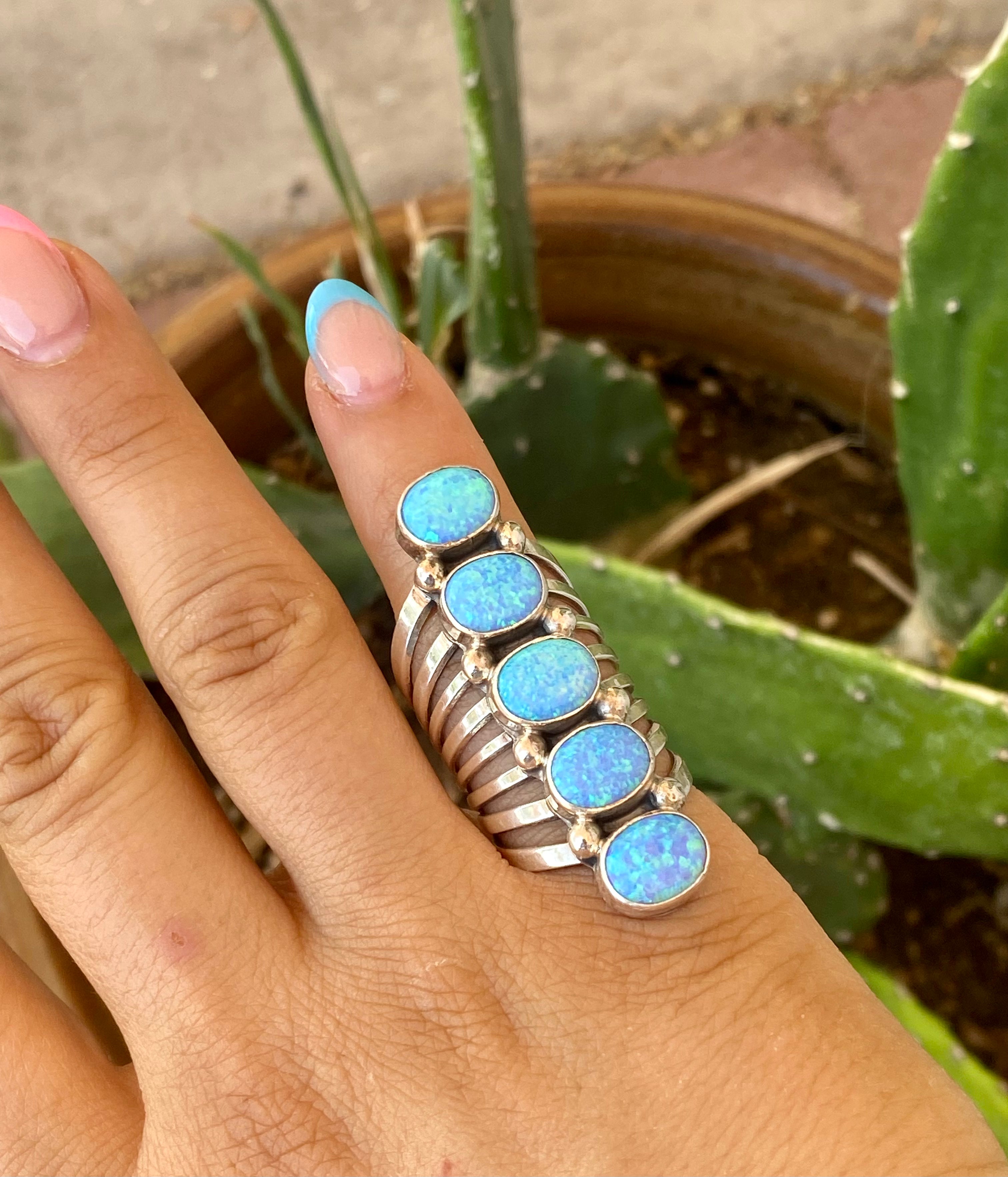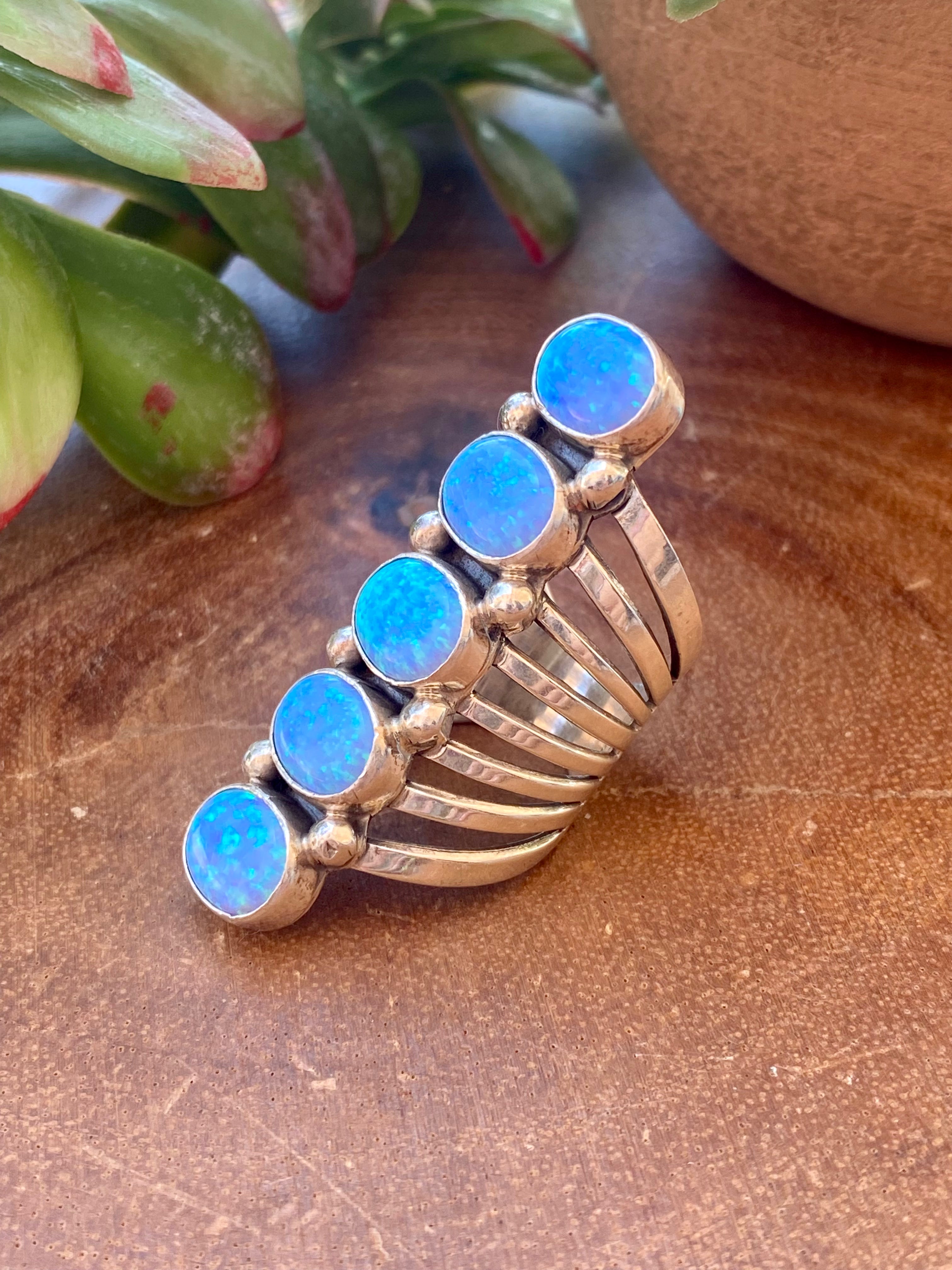 T. Yazzie Blue Opal & Sterling Silver Ring Size 8