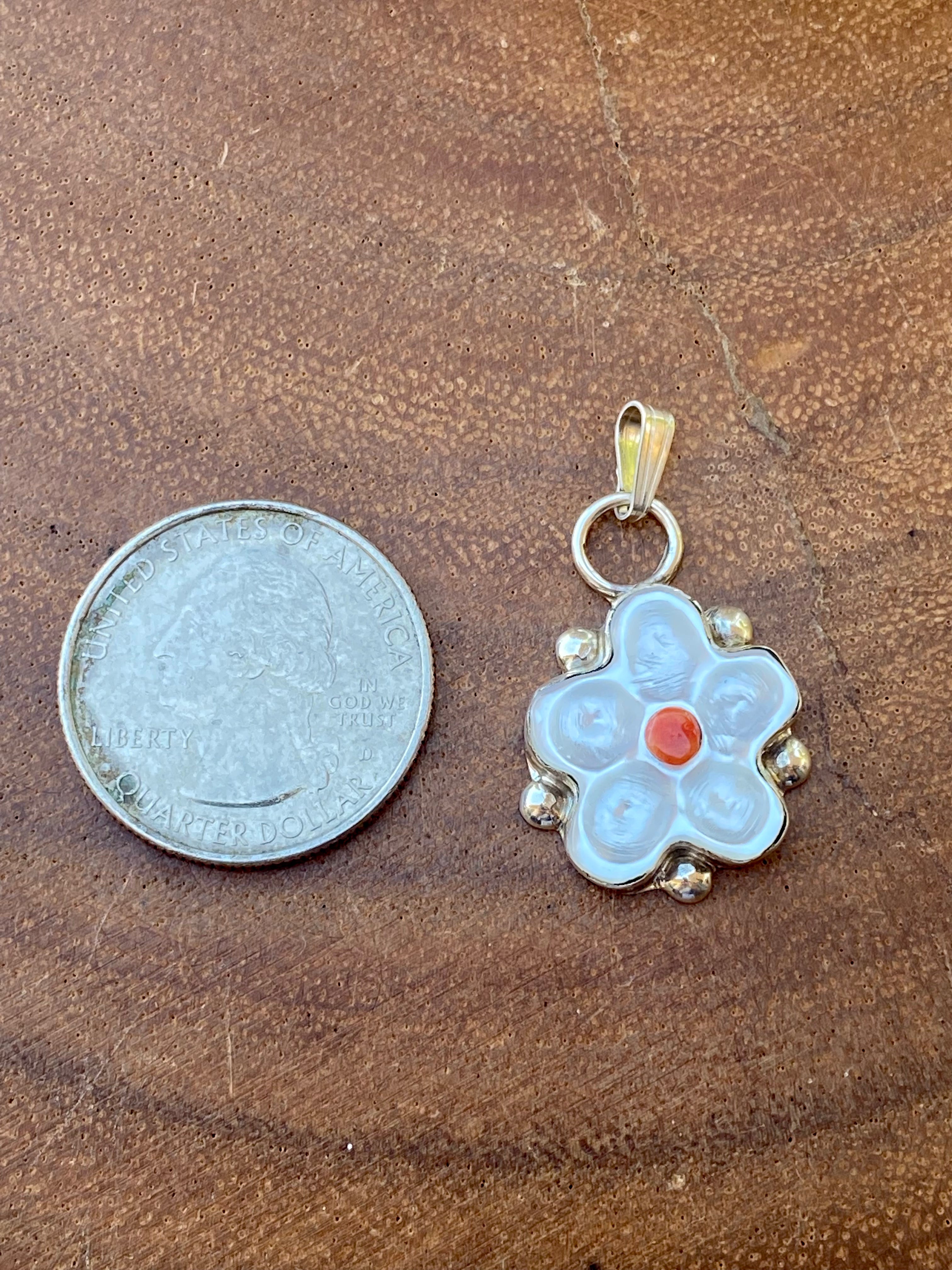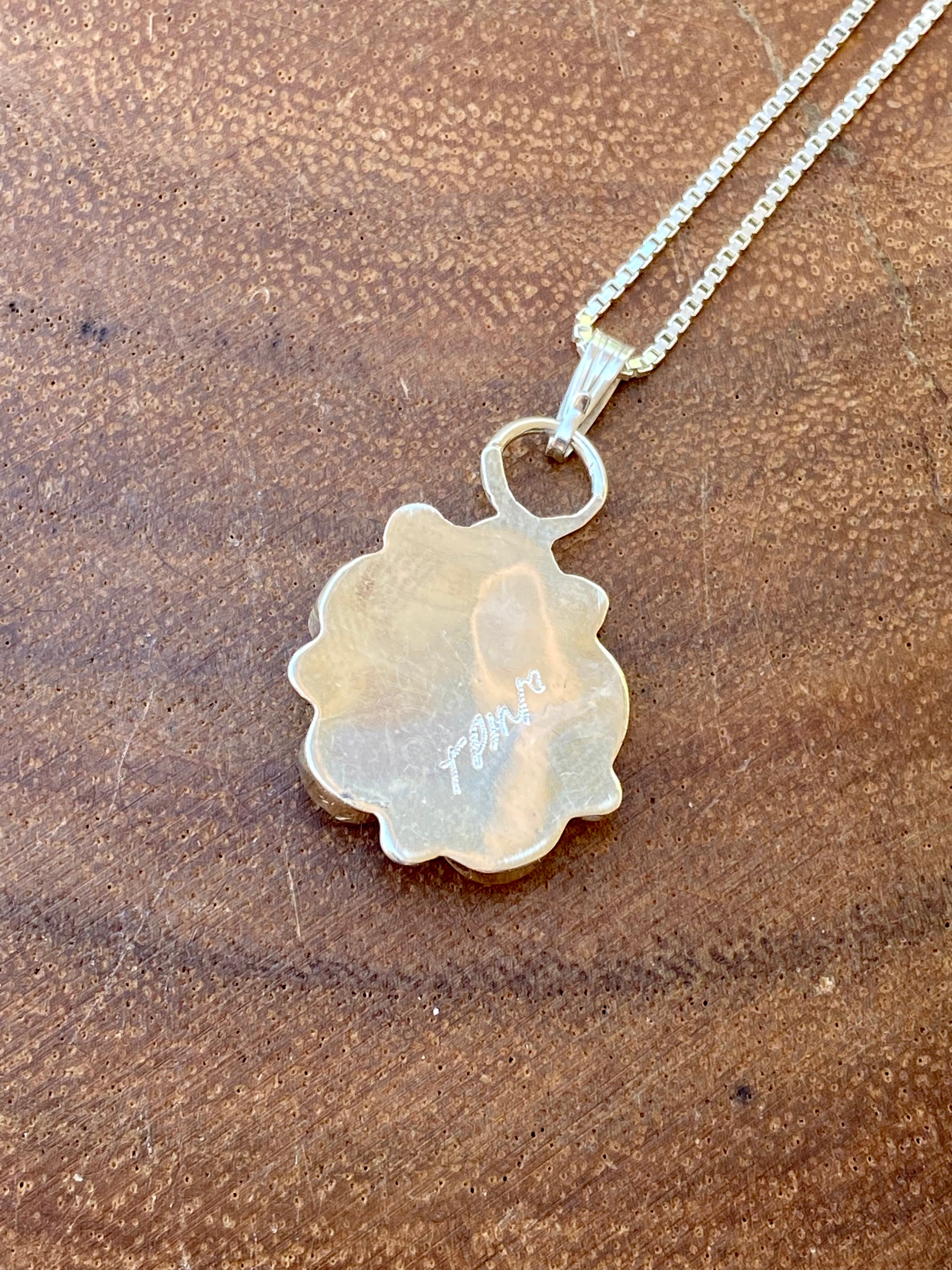 Tamara Pinto Multi Stone & Sterling Silver Flower Pendant. It measures 1 1/4 inches long and 3/4 of an inch wide. Pendant Only!! Signed by the artist.