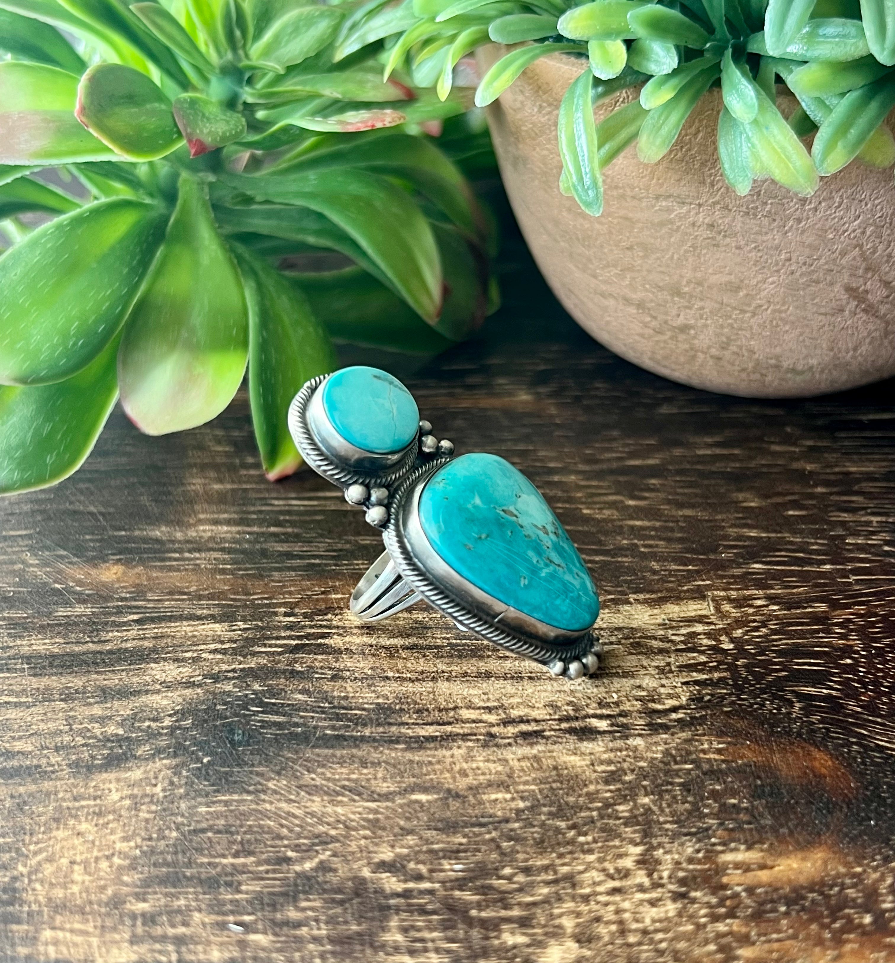 Tim Smith Kingman Turquoise & Sterling Silver Ring Size 8