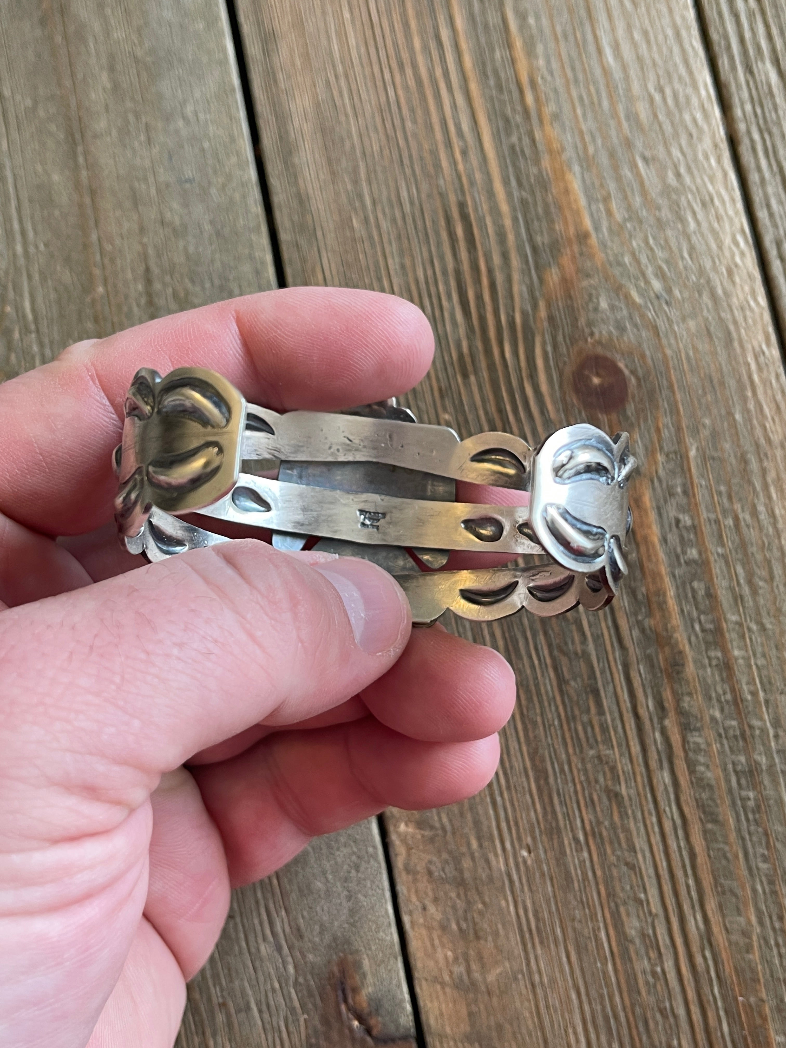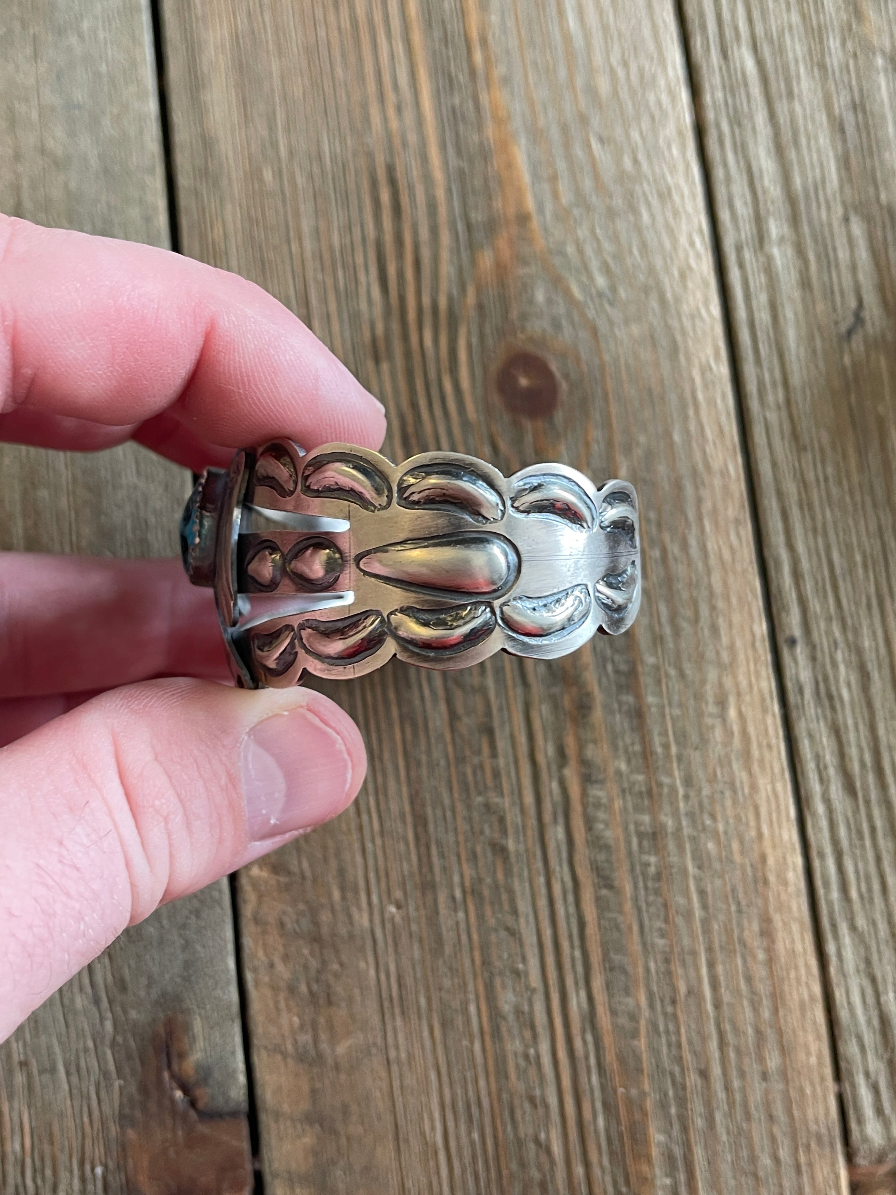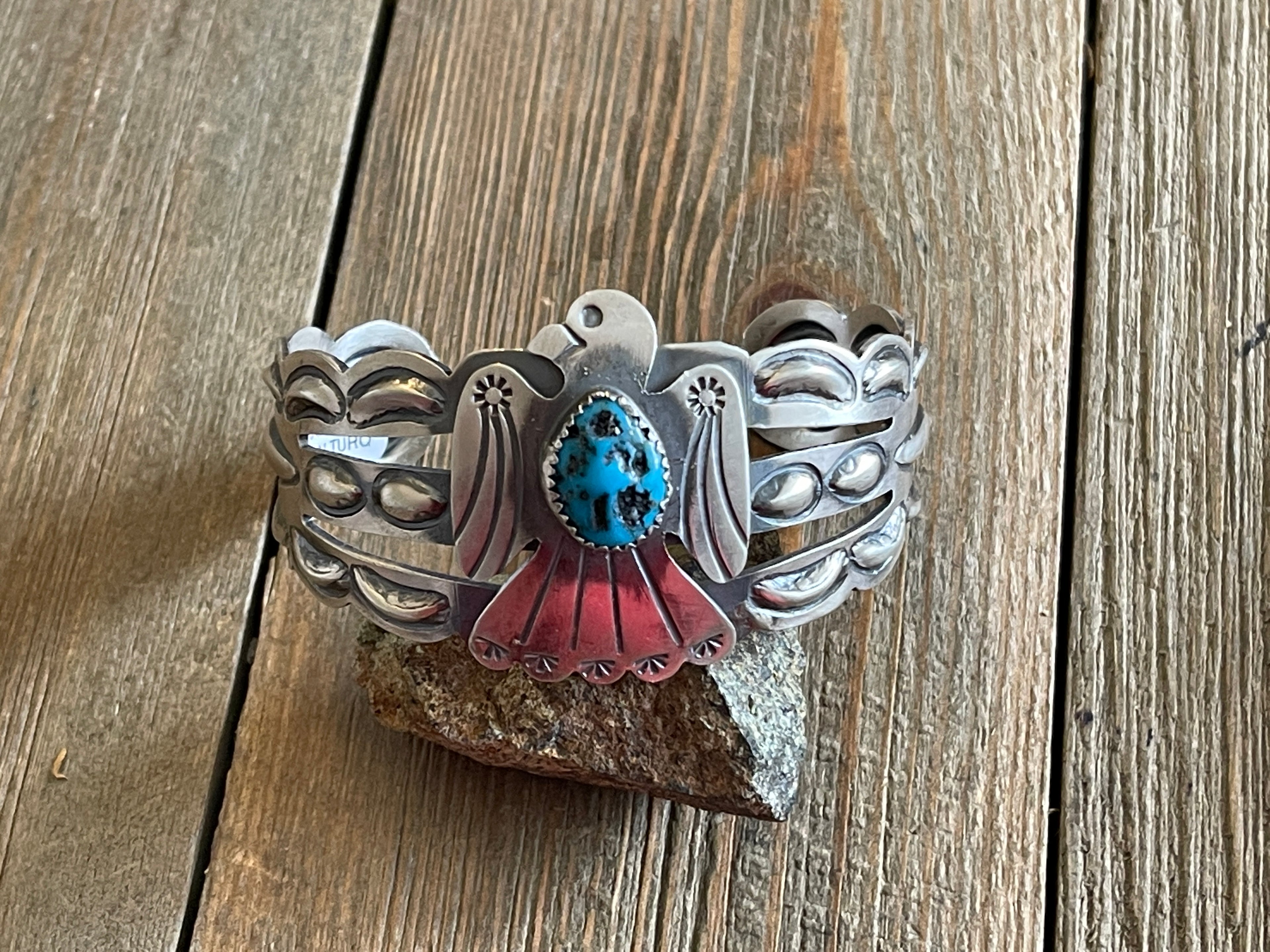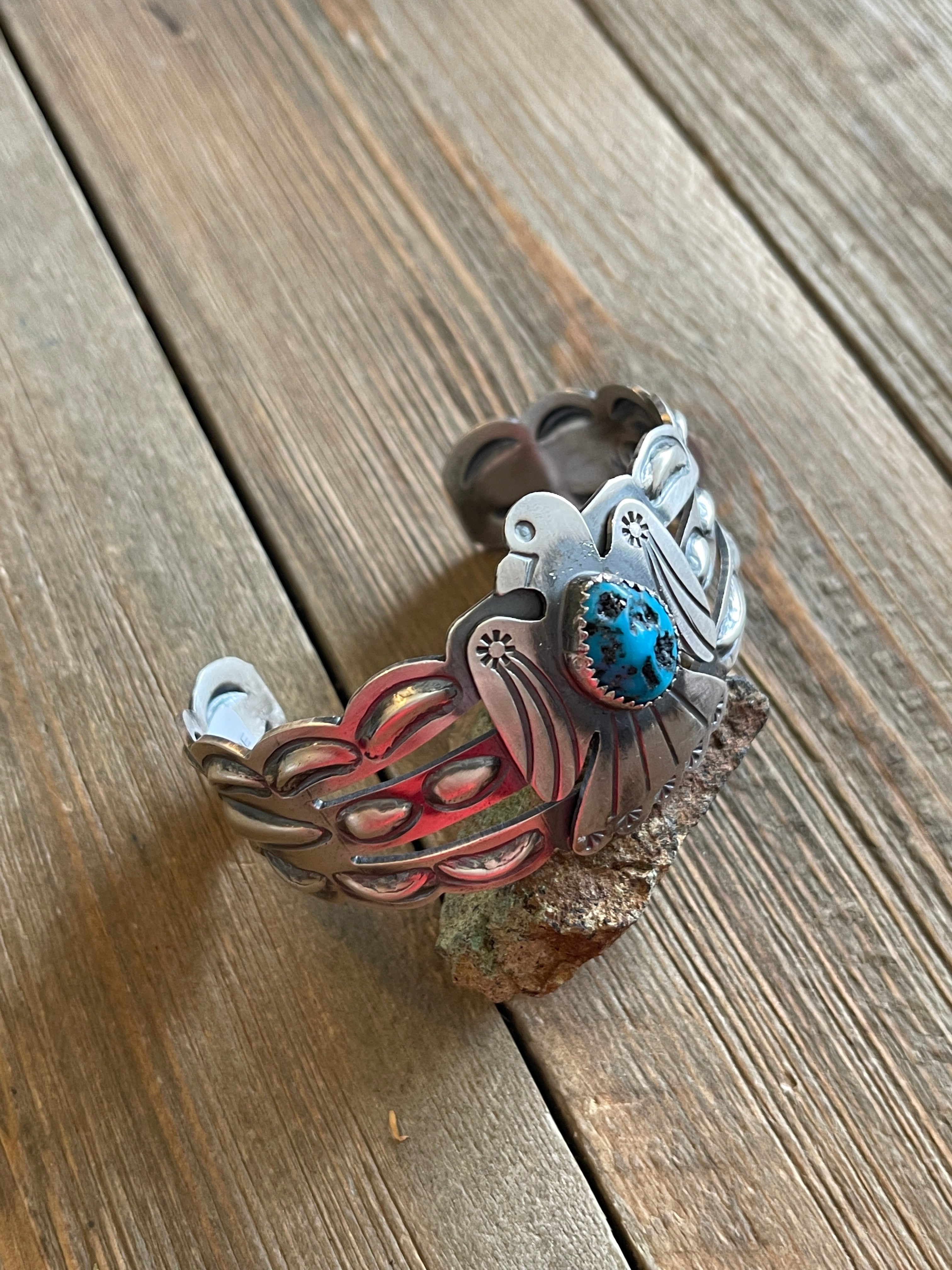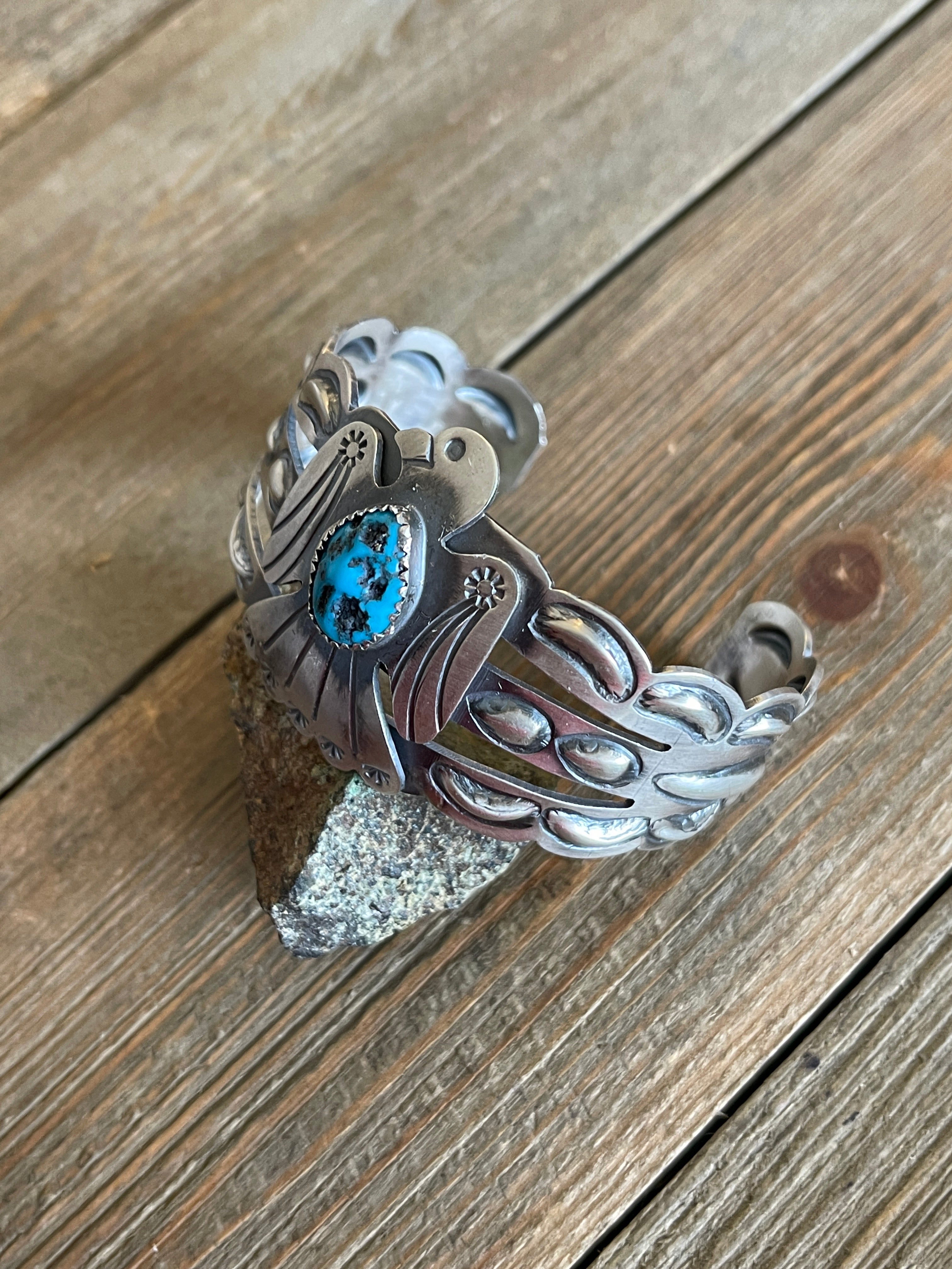 Tim Yazzie Kingman Turquoise & Sterling Silver Thunderbird Cuff Bracelet