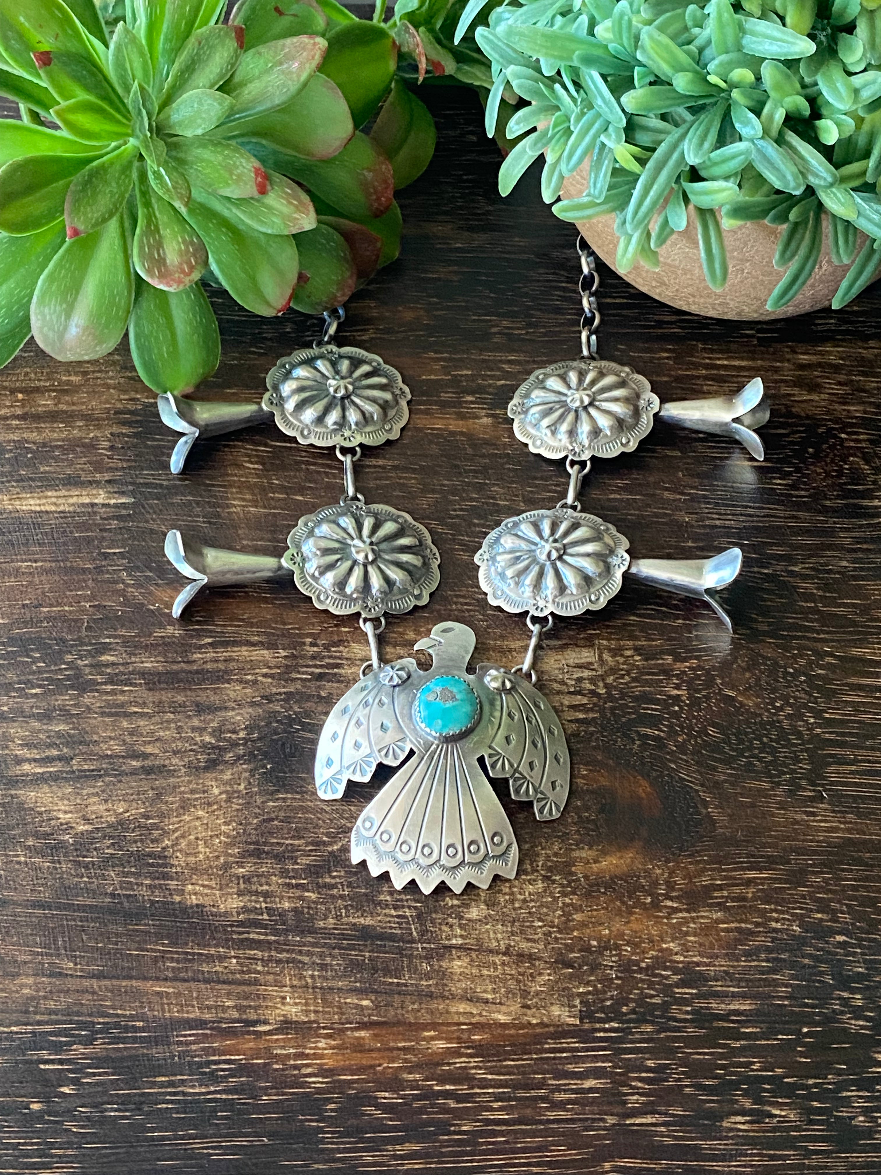 Tim Yazzie Kingman Turquoise & Sterling Silver Thunderbird Necklace