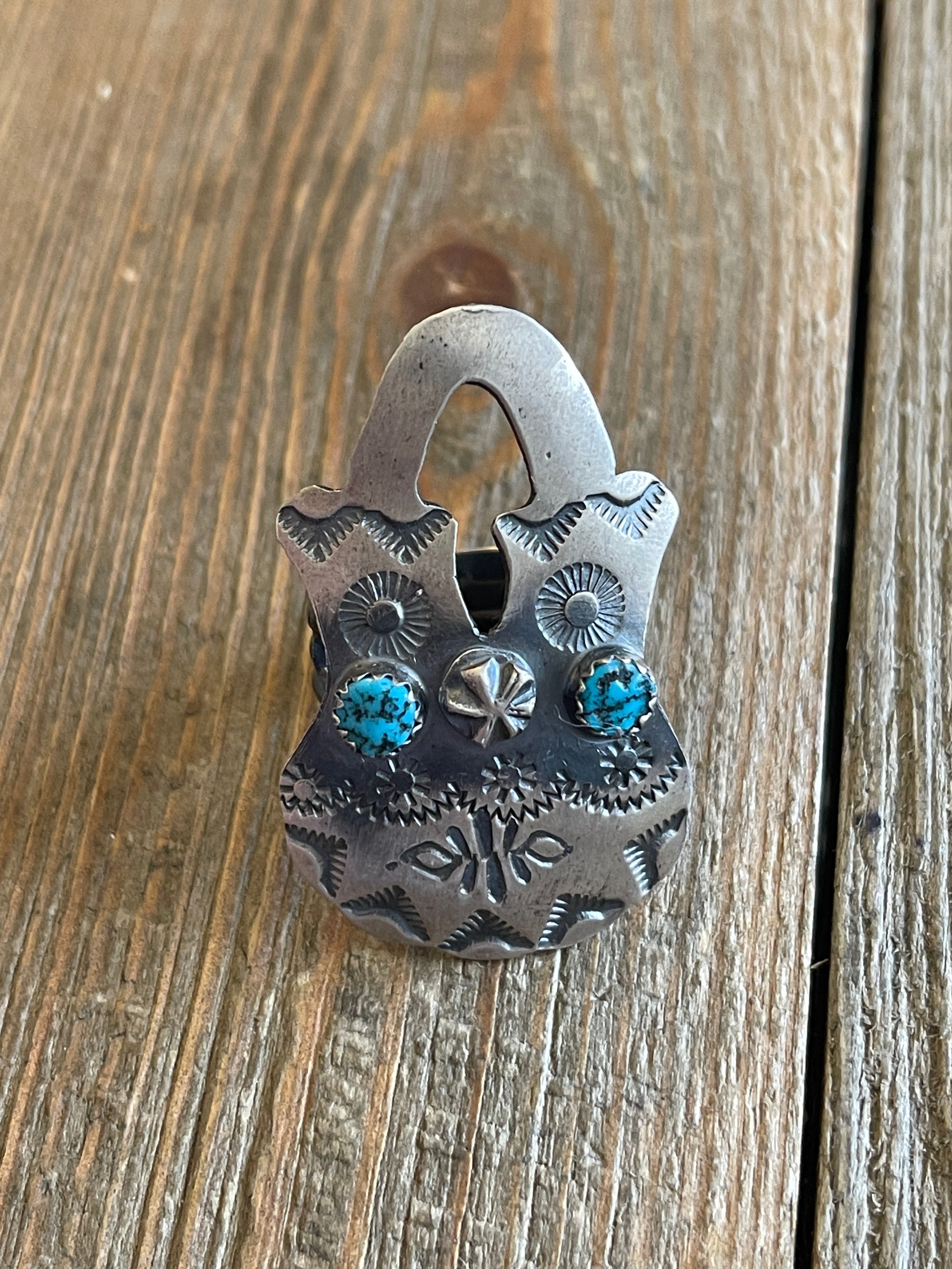 Tim Yazzie Kingman Turquoise & Sterling Silver Vase Ring Size 8