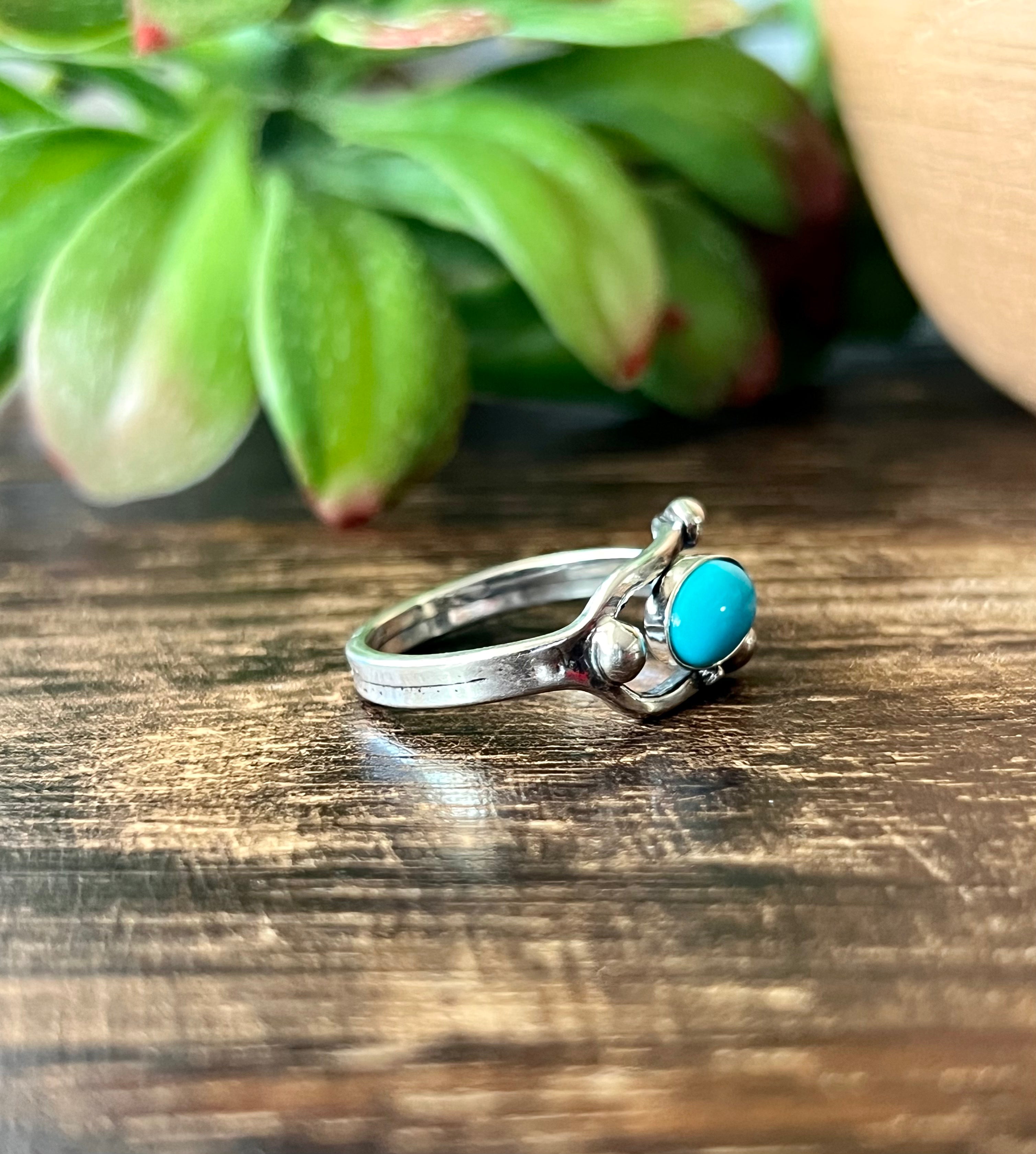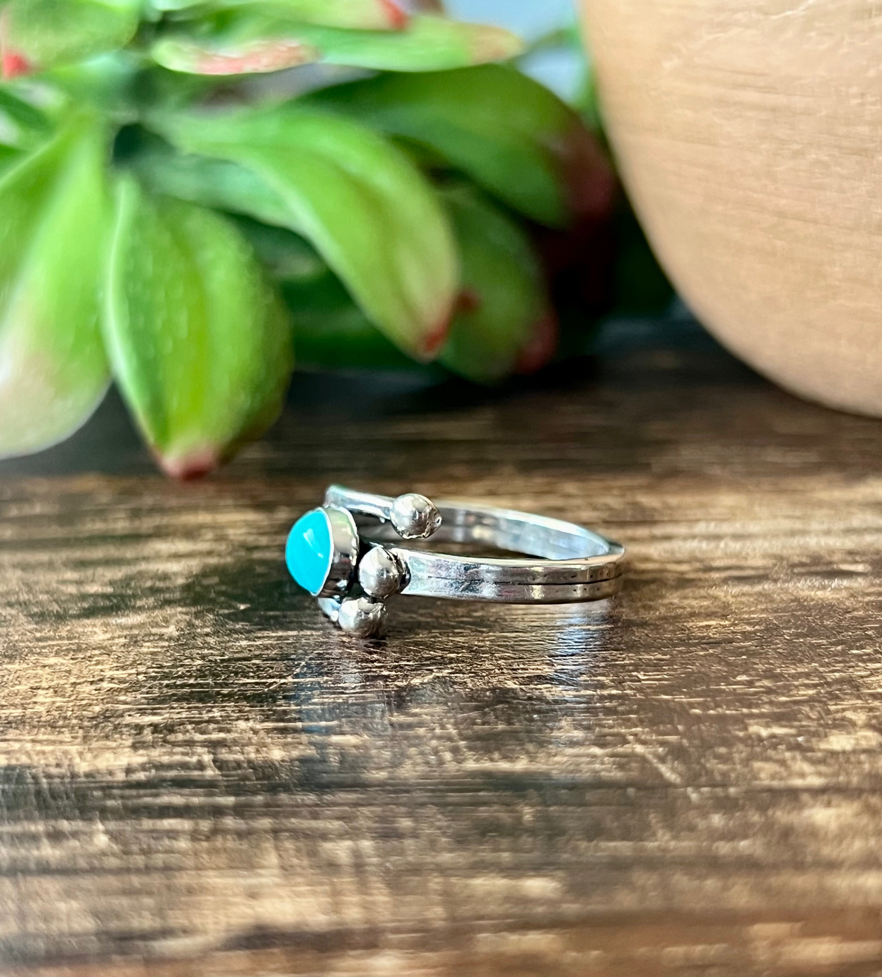 Tom Lewis Kingman Turquoise & Sterling Silver Adjustable Ring. Measures 5/8 long & 1 inch wide.
