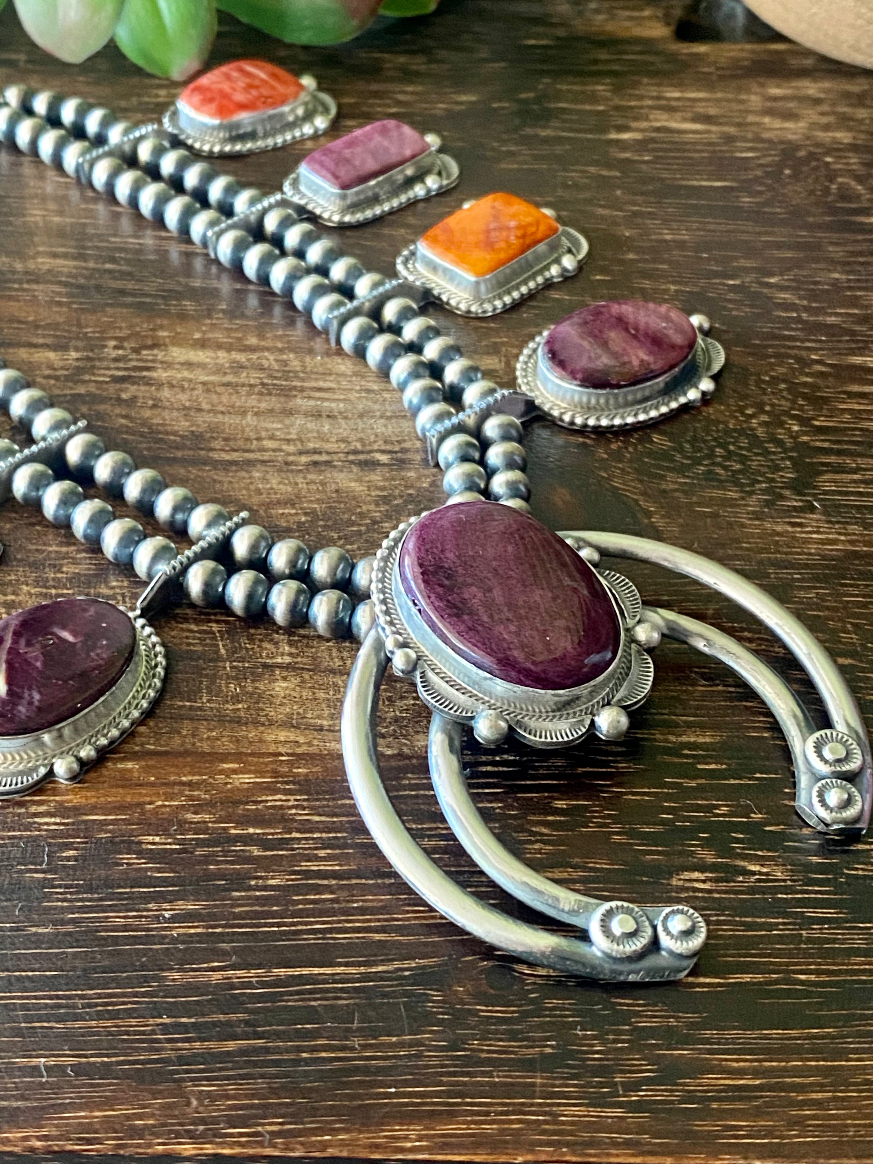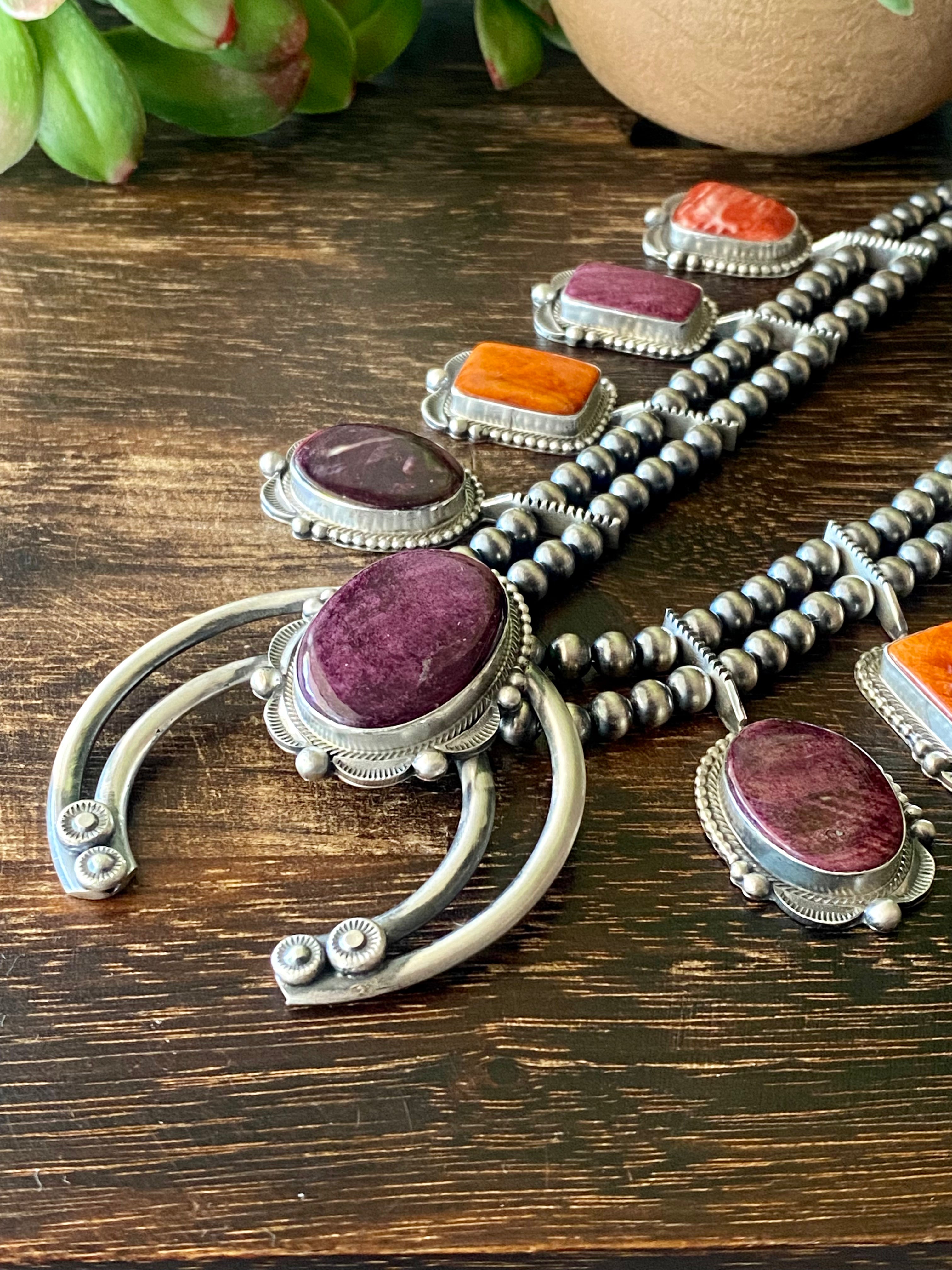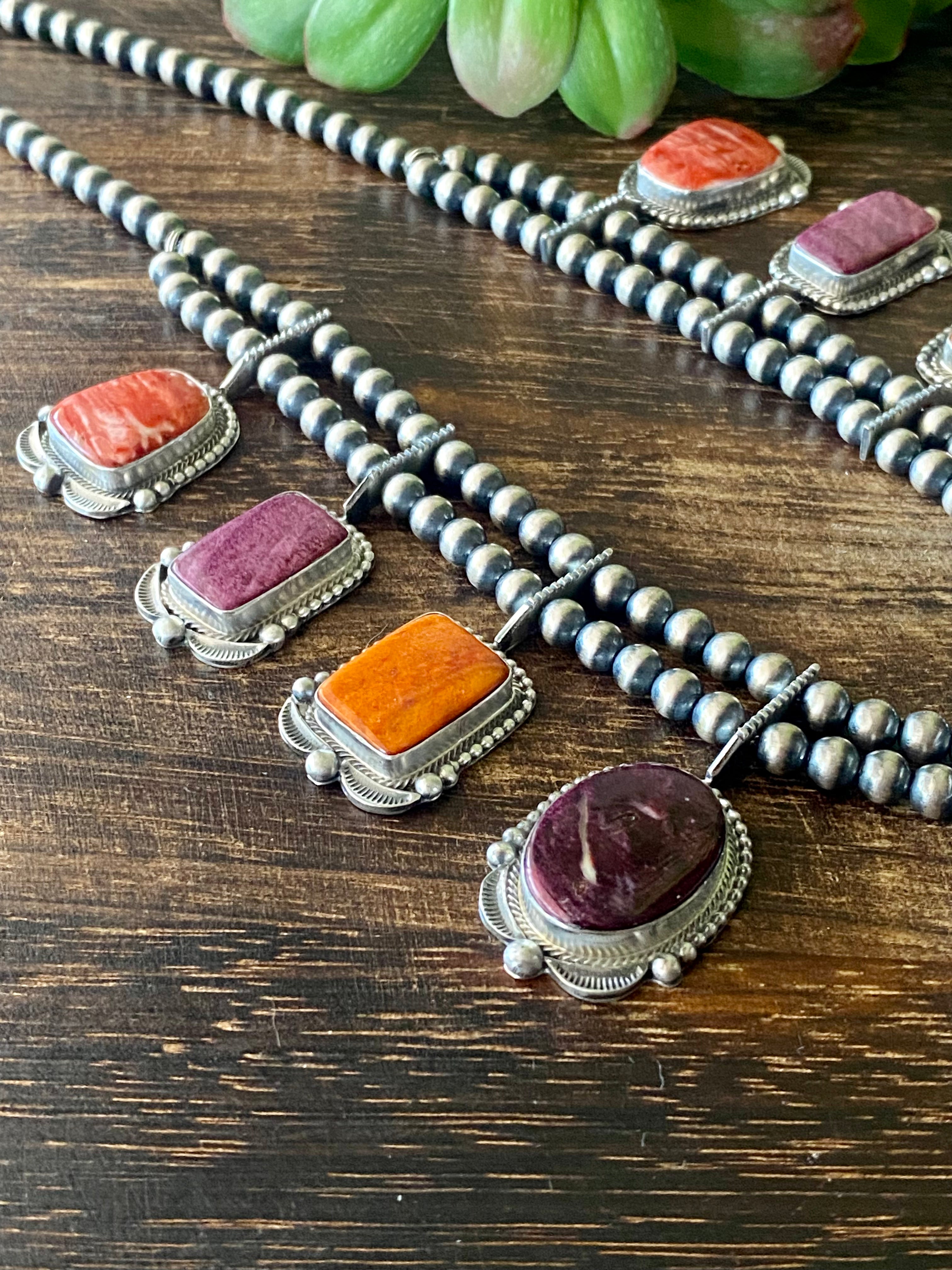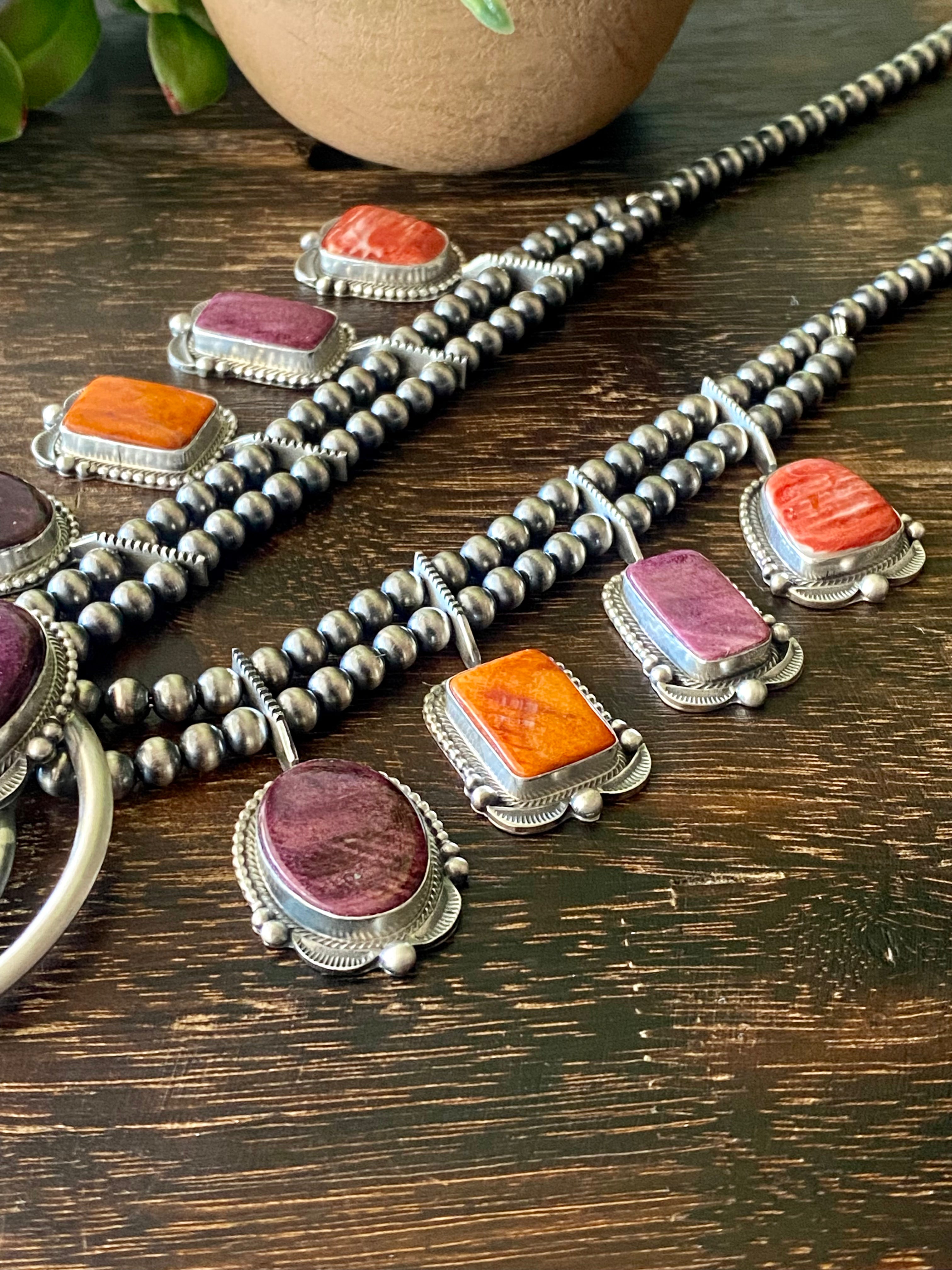 Tom Lewis Spiny Oys & Sterling Silver Squash Necklace Set