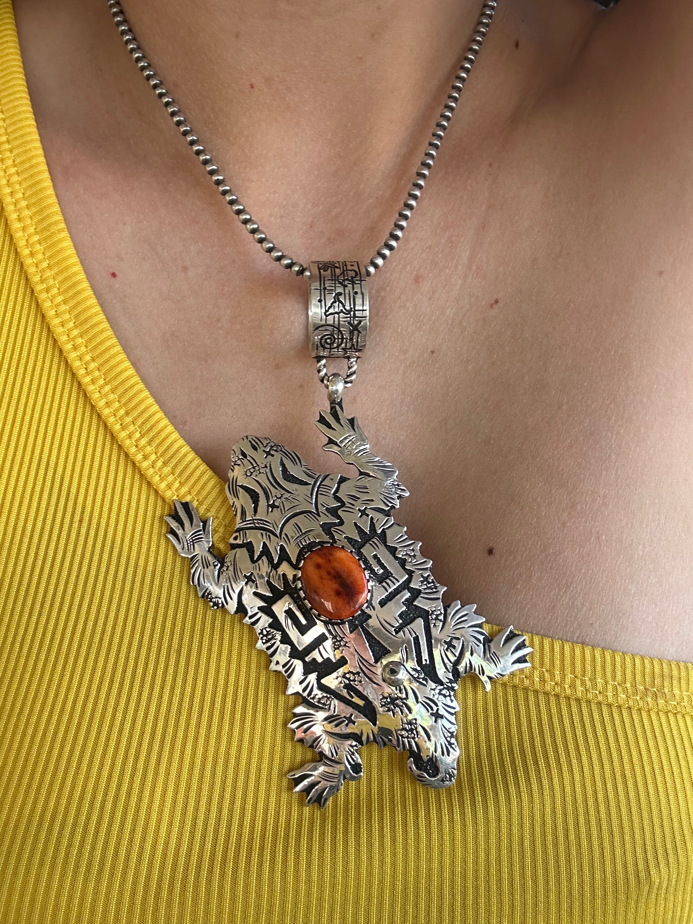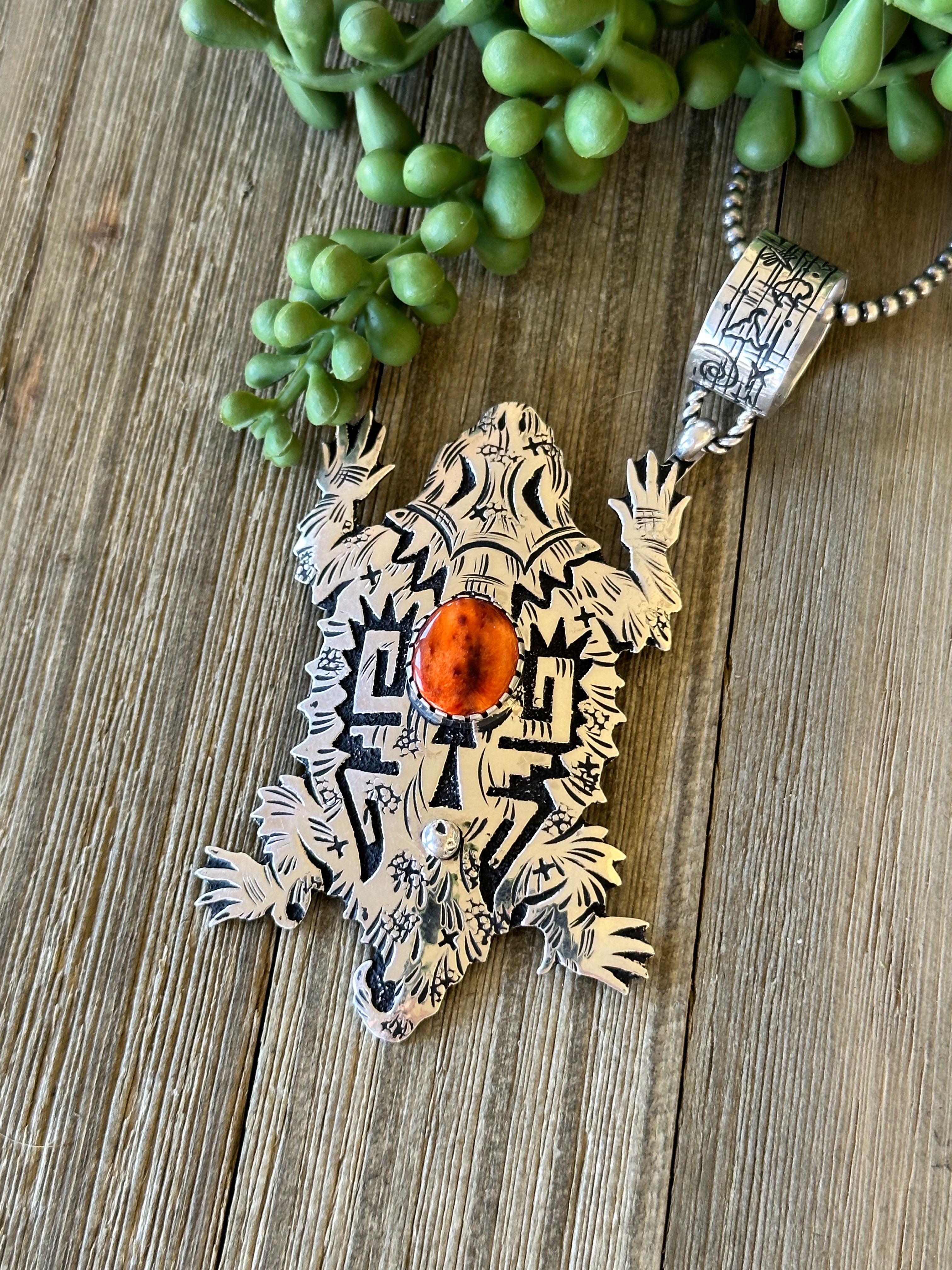 Tommy & Rose Singer Spiny Oyster & Sterling Silver Horny Toad Pendant