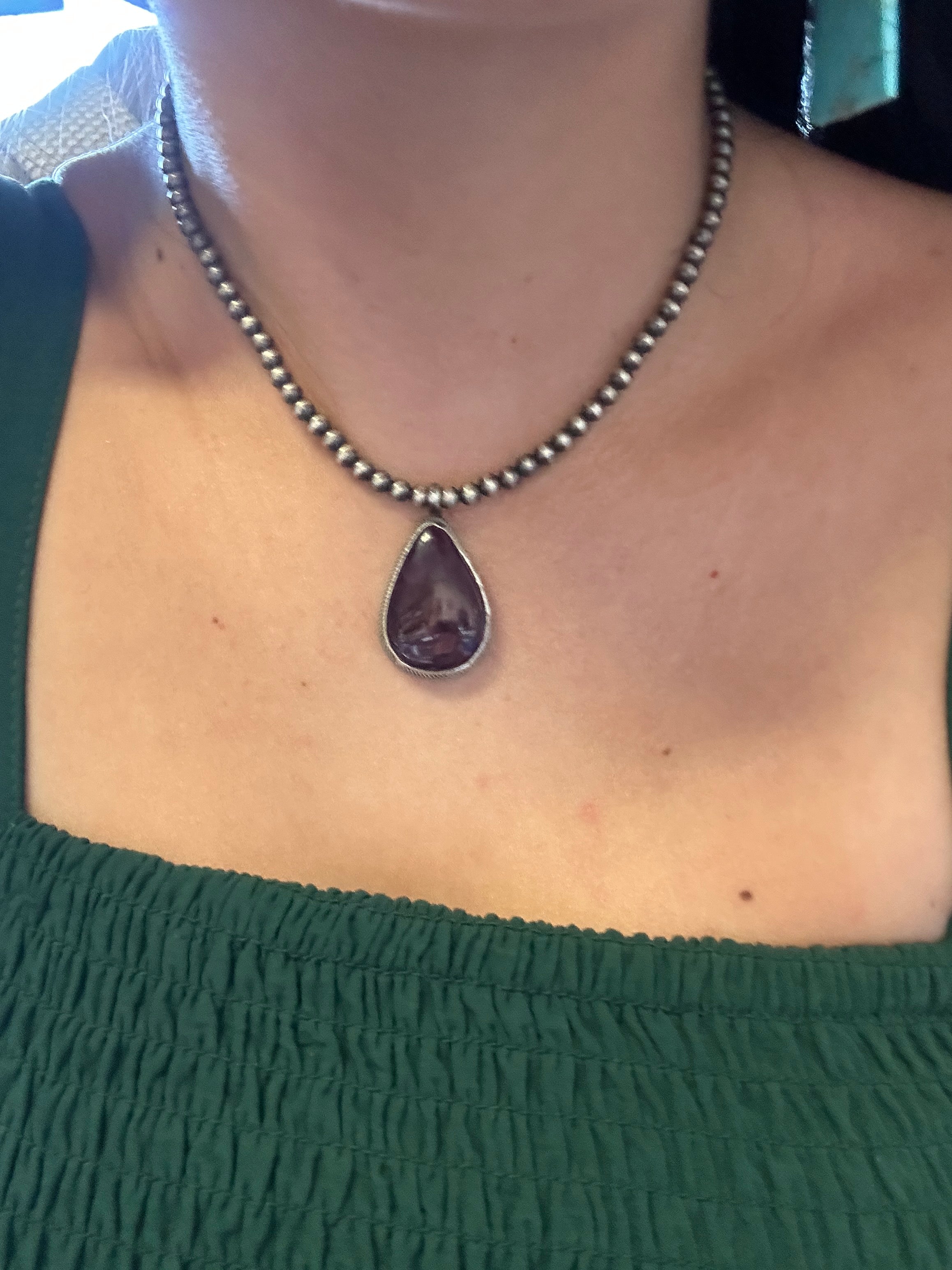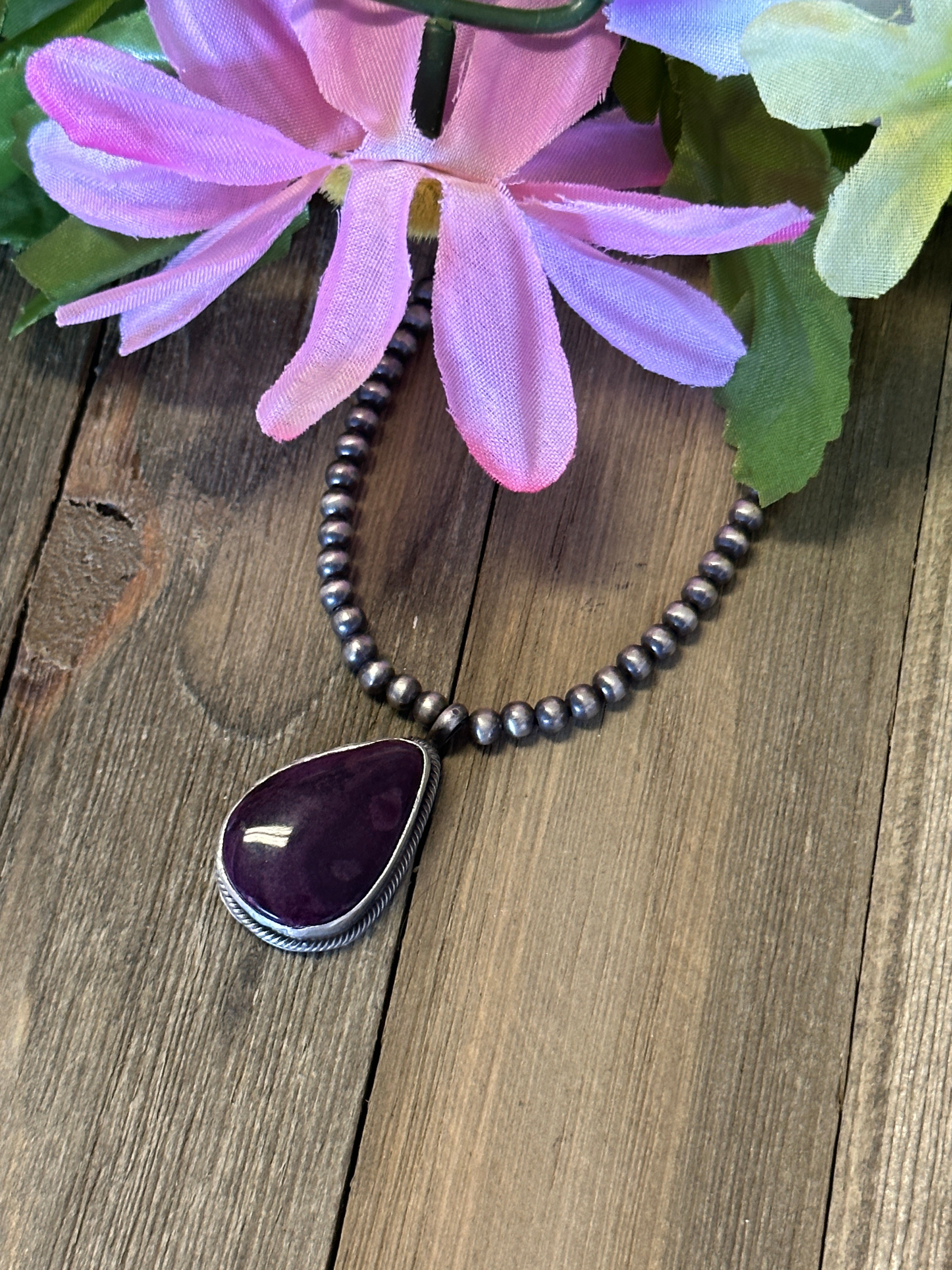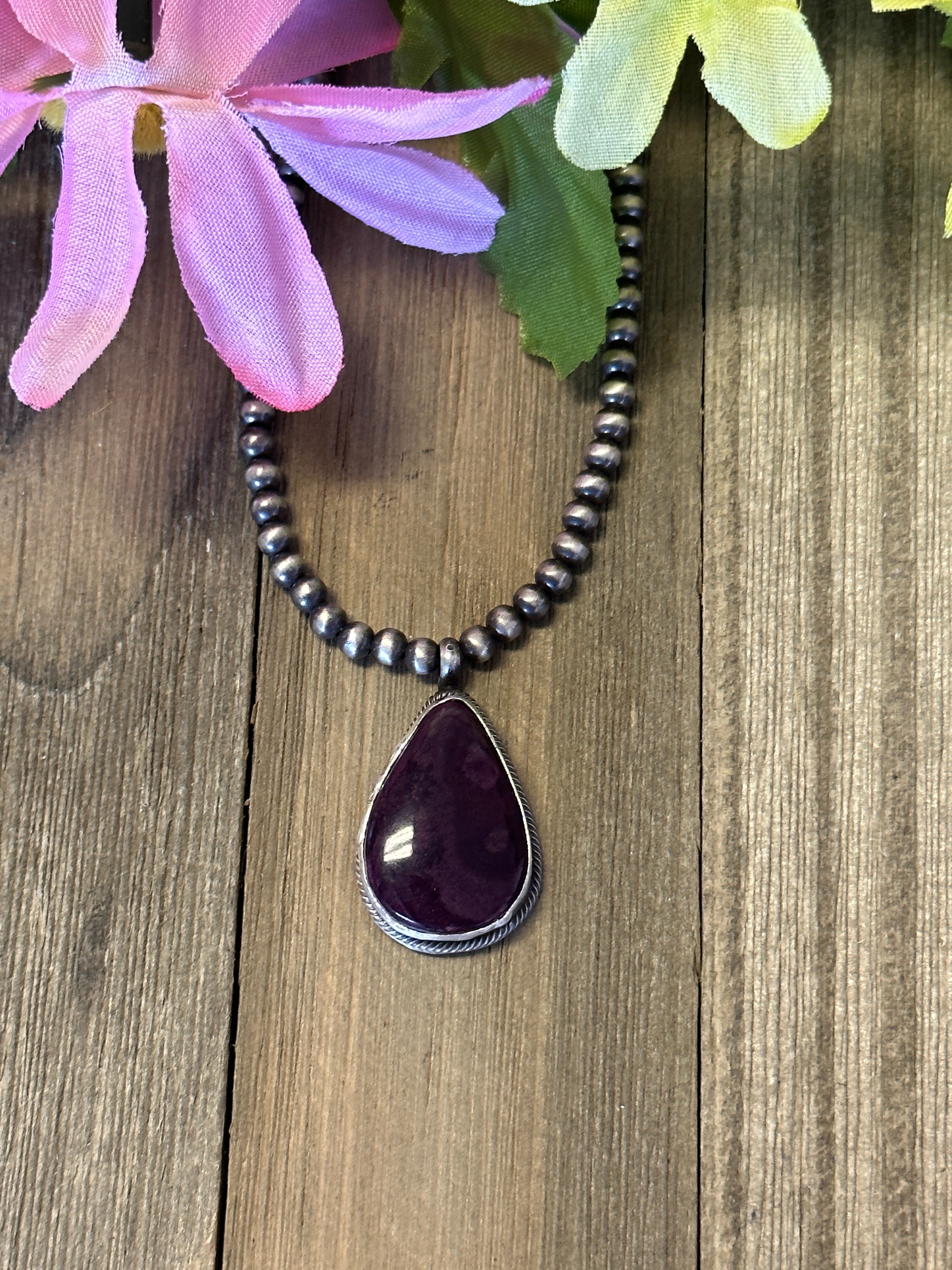 Tony Skeets Purple Spiny Oyster & Sterling Silver Necklace
