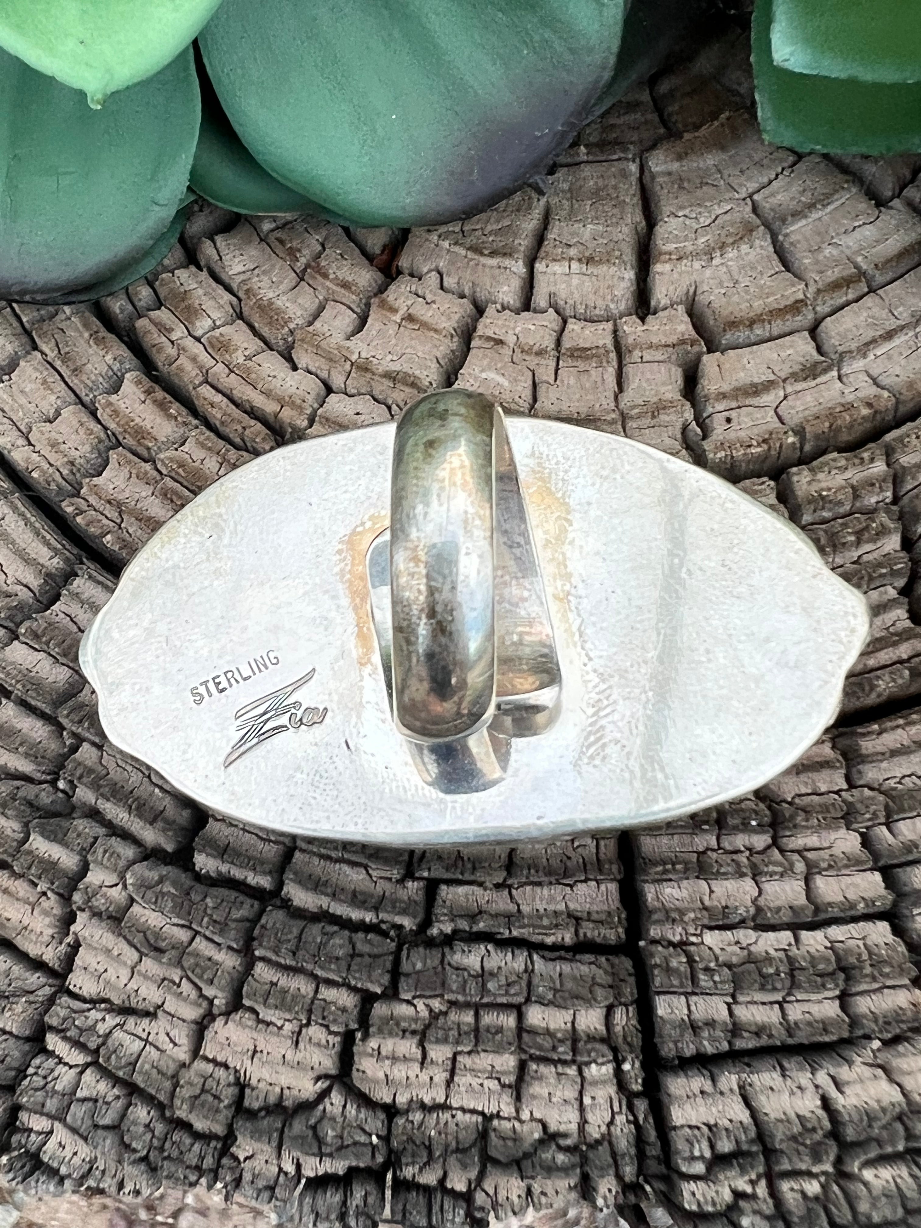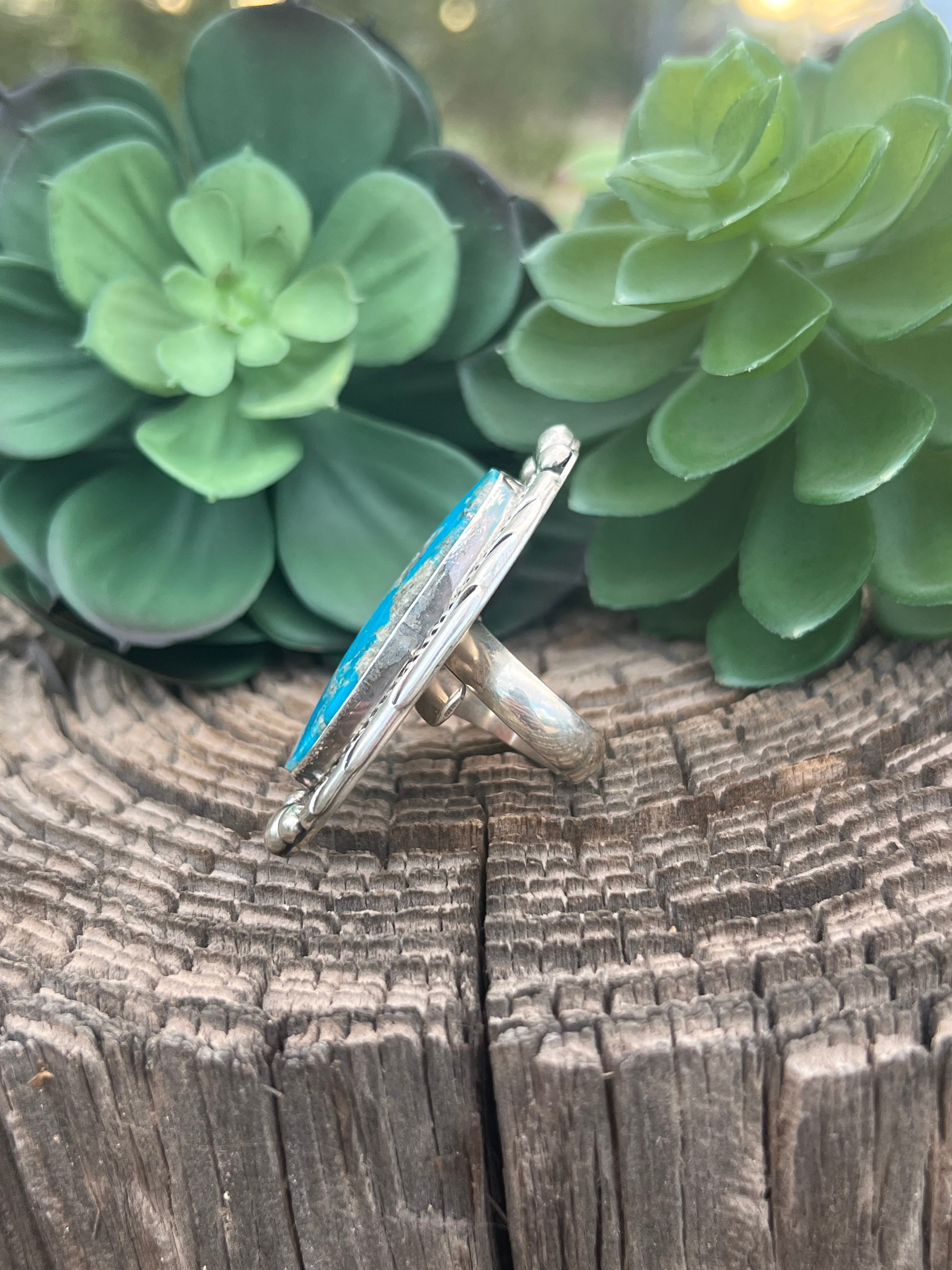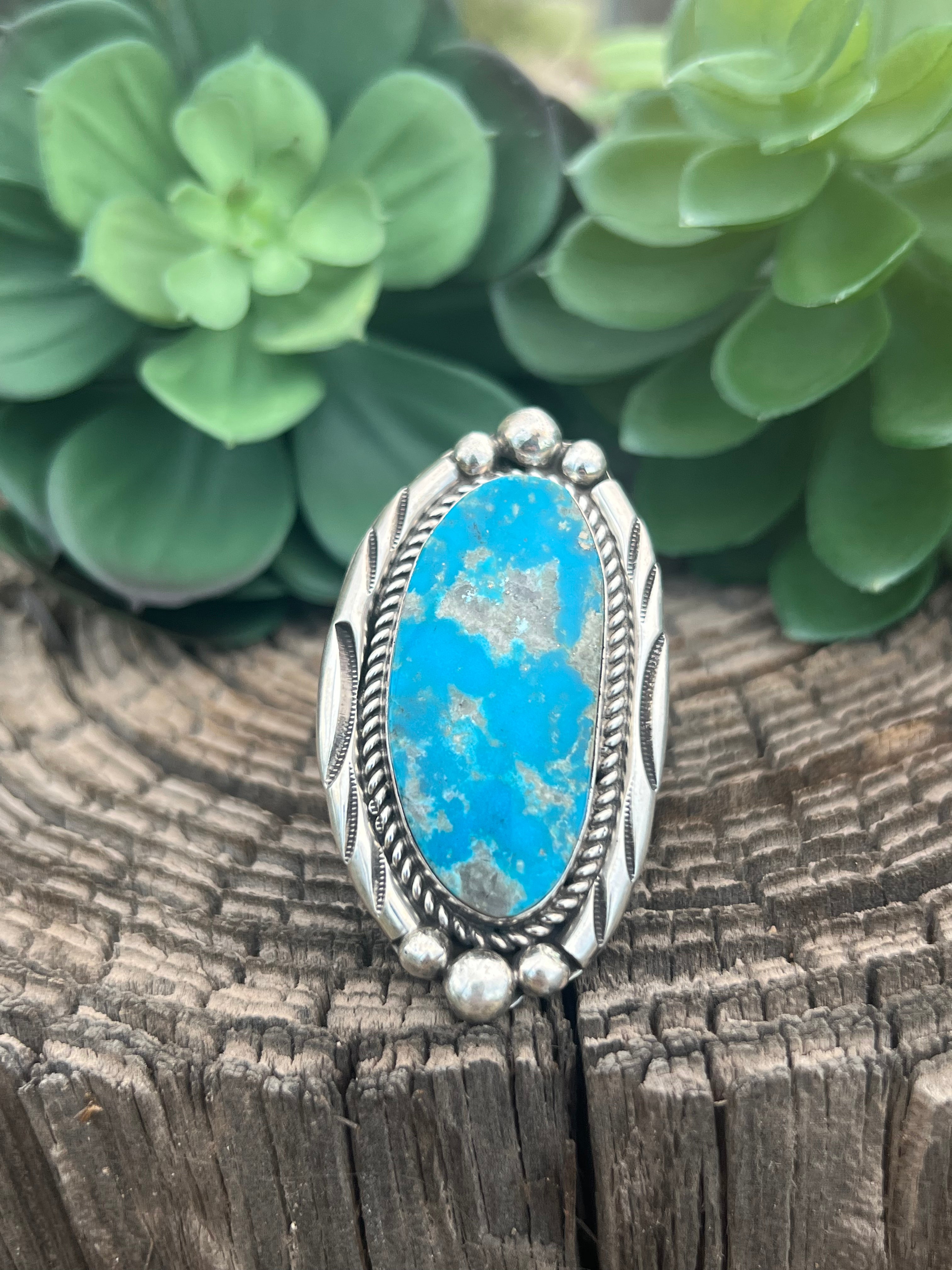 Tony Yazzie Kingman Turquoise & Sterling Silver Adjustable Ring Size 8.5