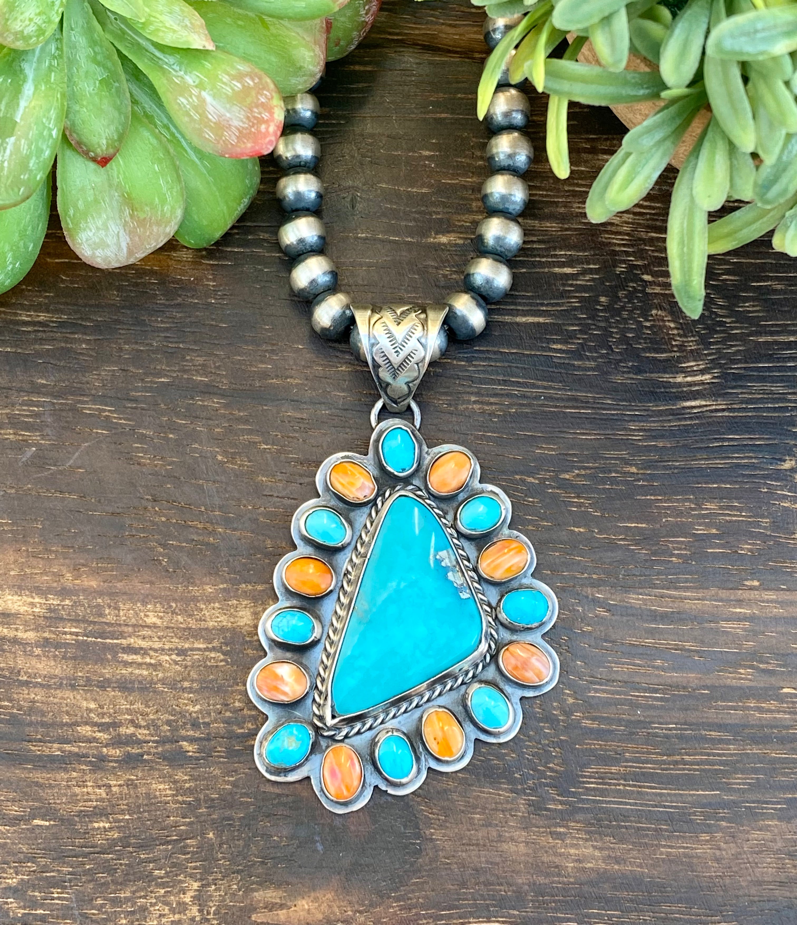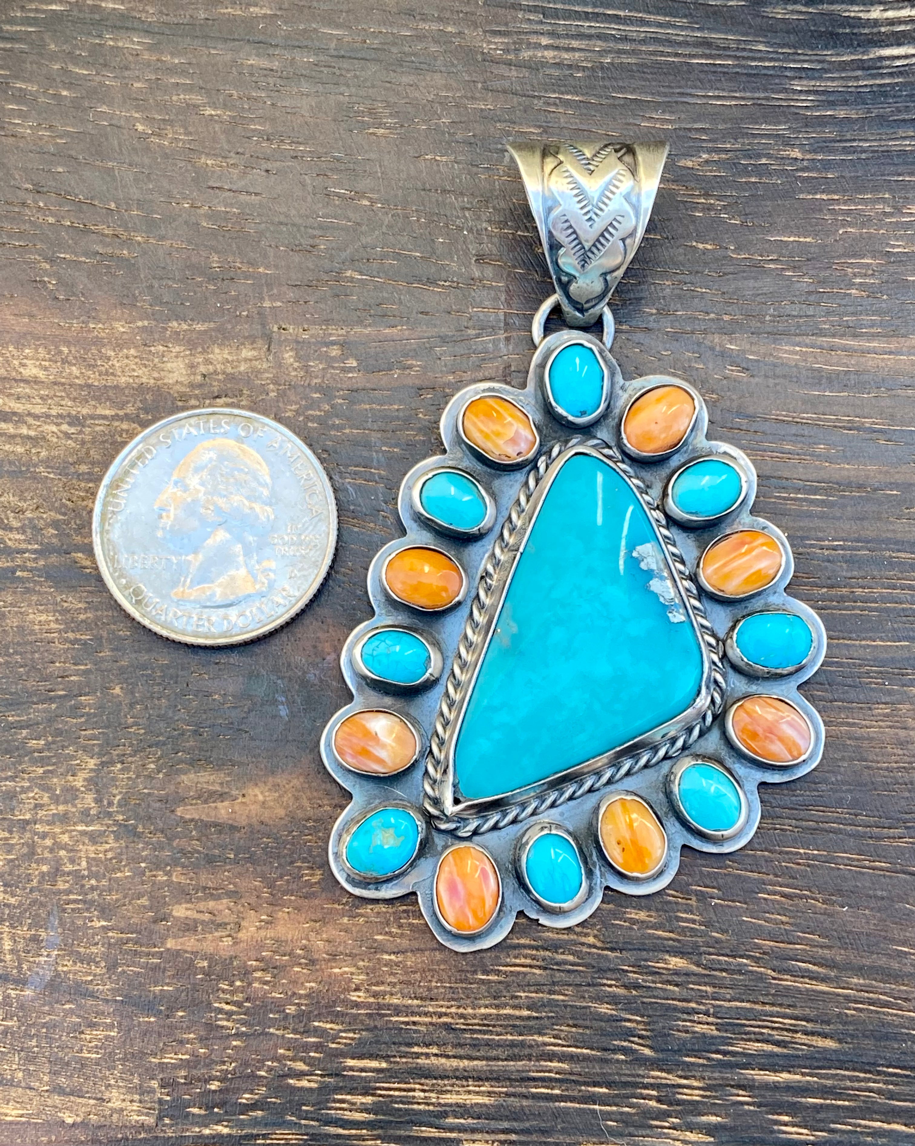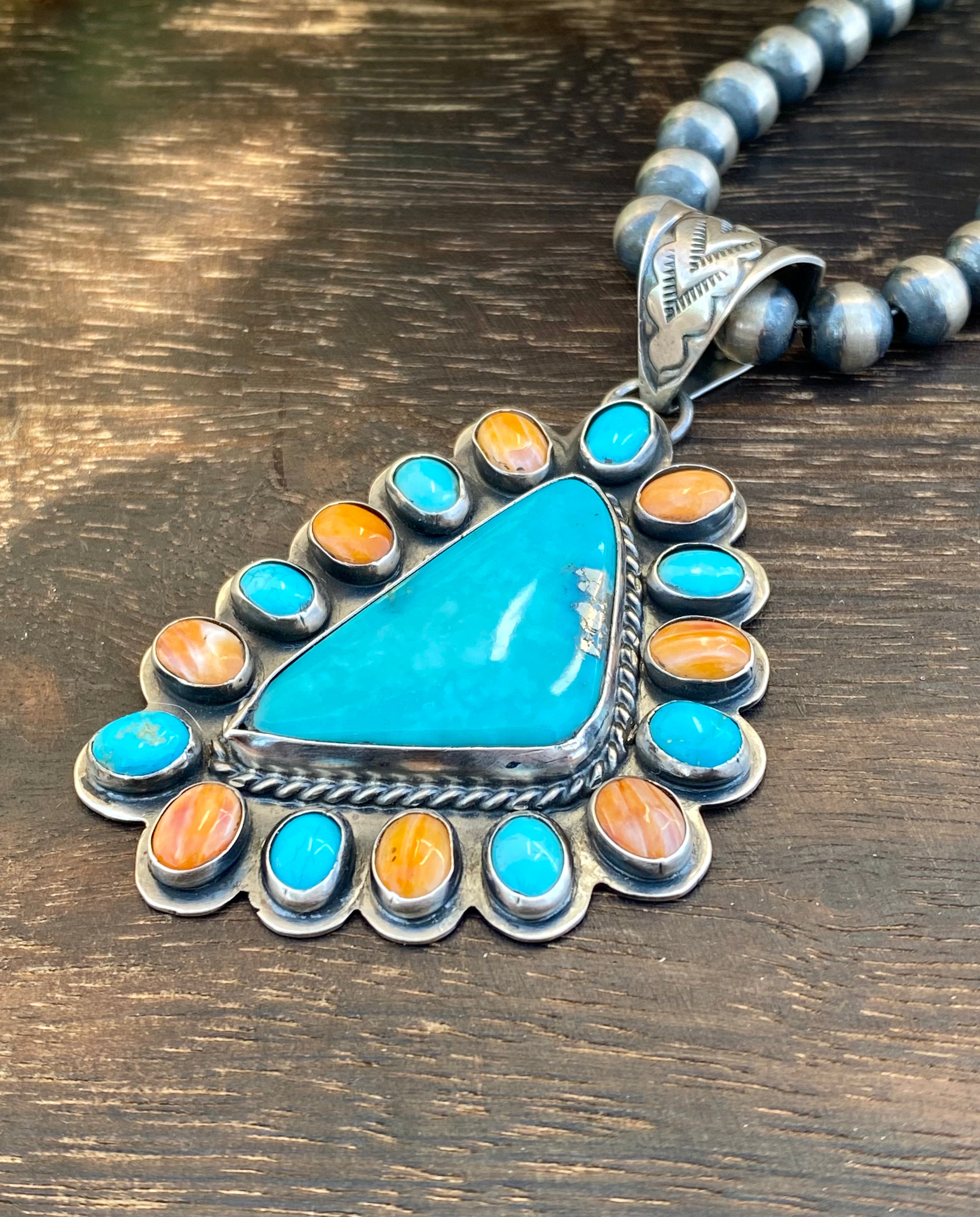 Tony Yazzie Multi Stone & Sterling Silver Cluster Pendant