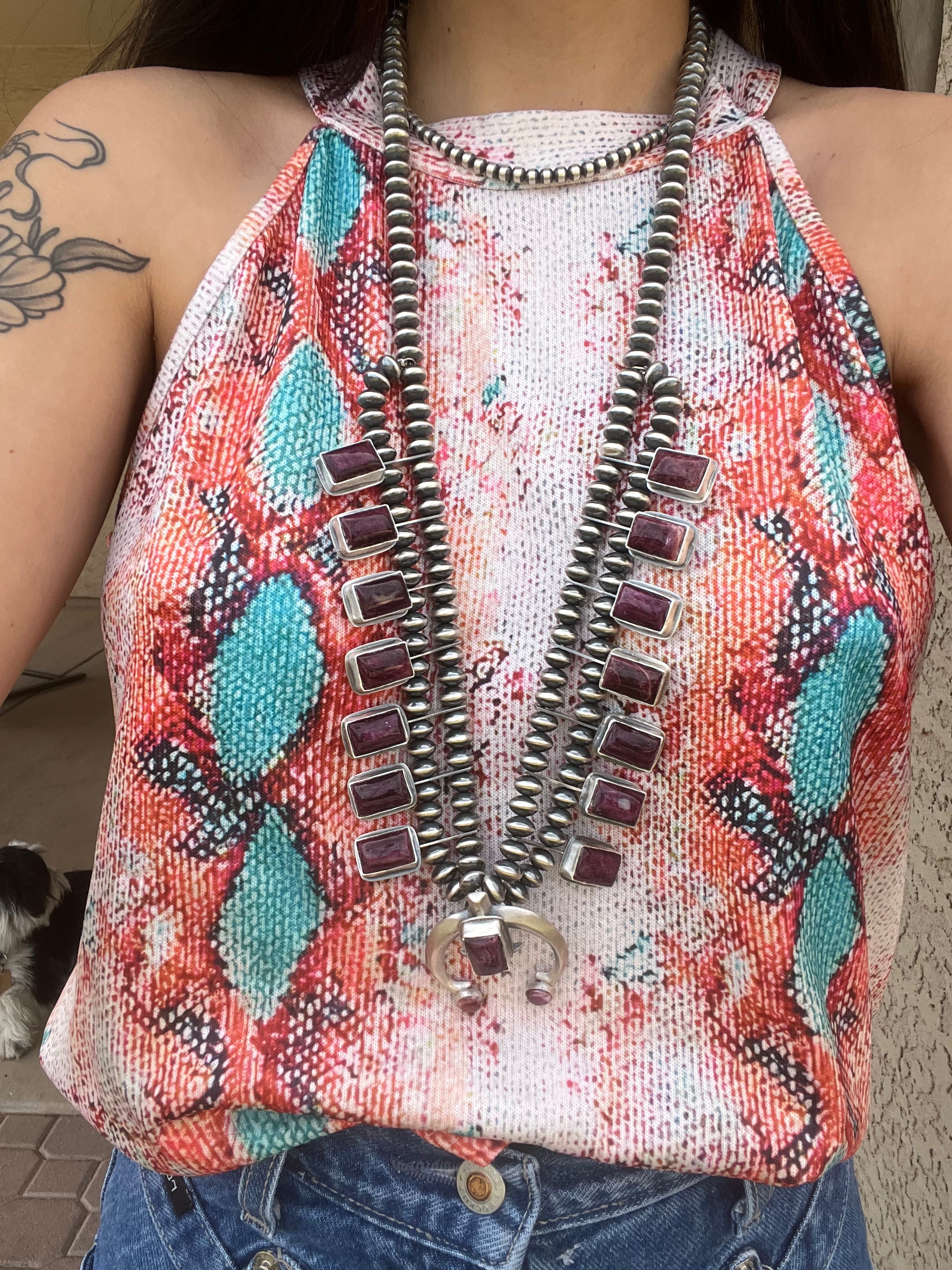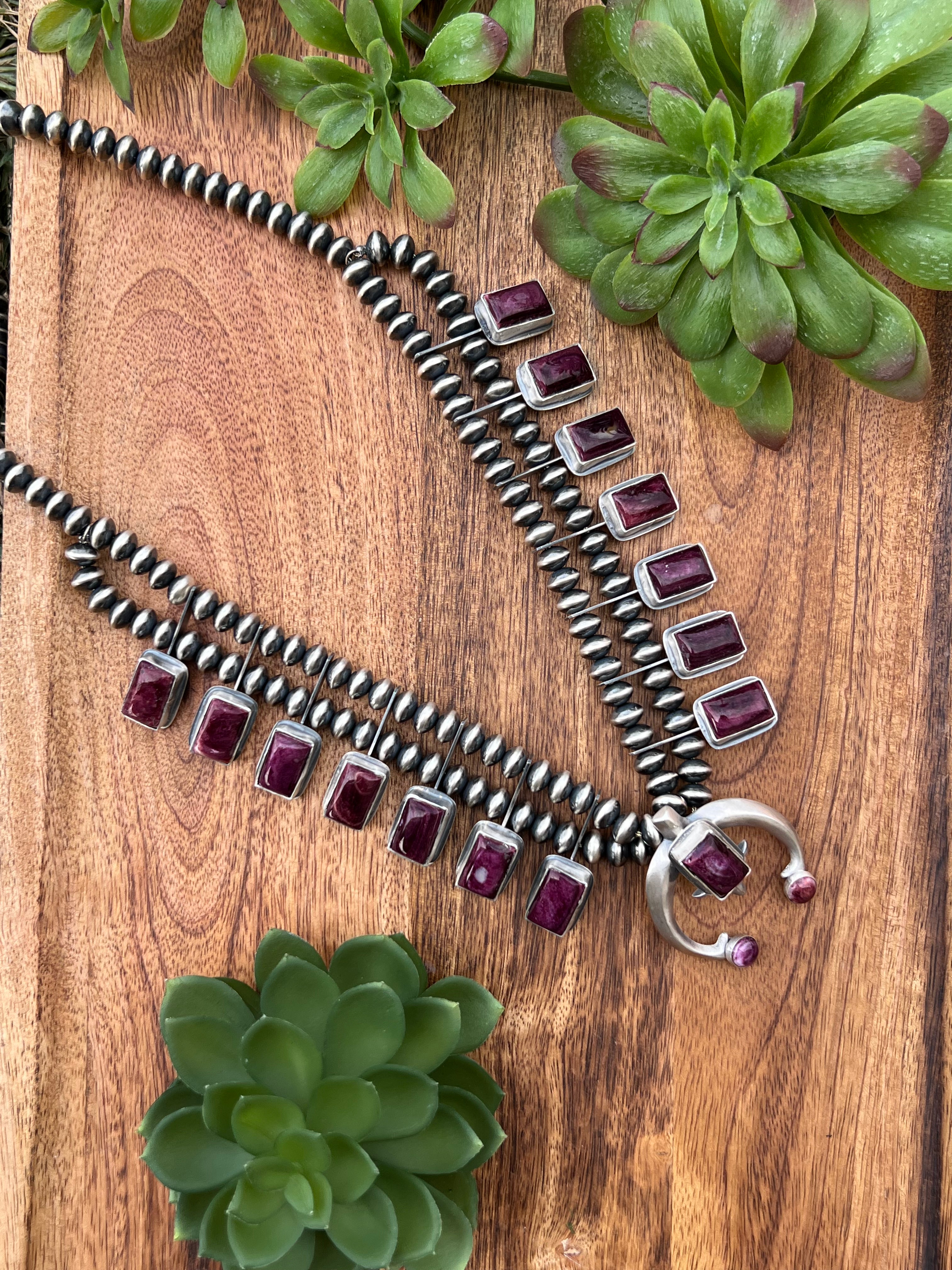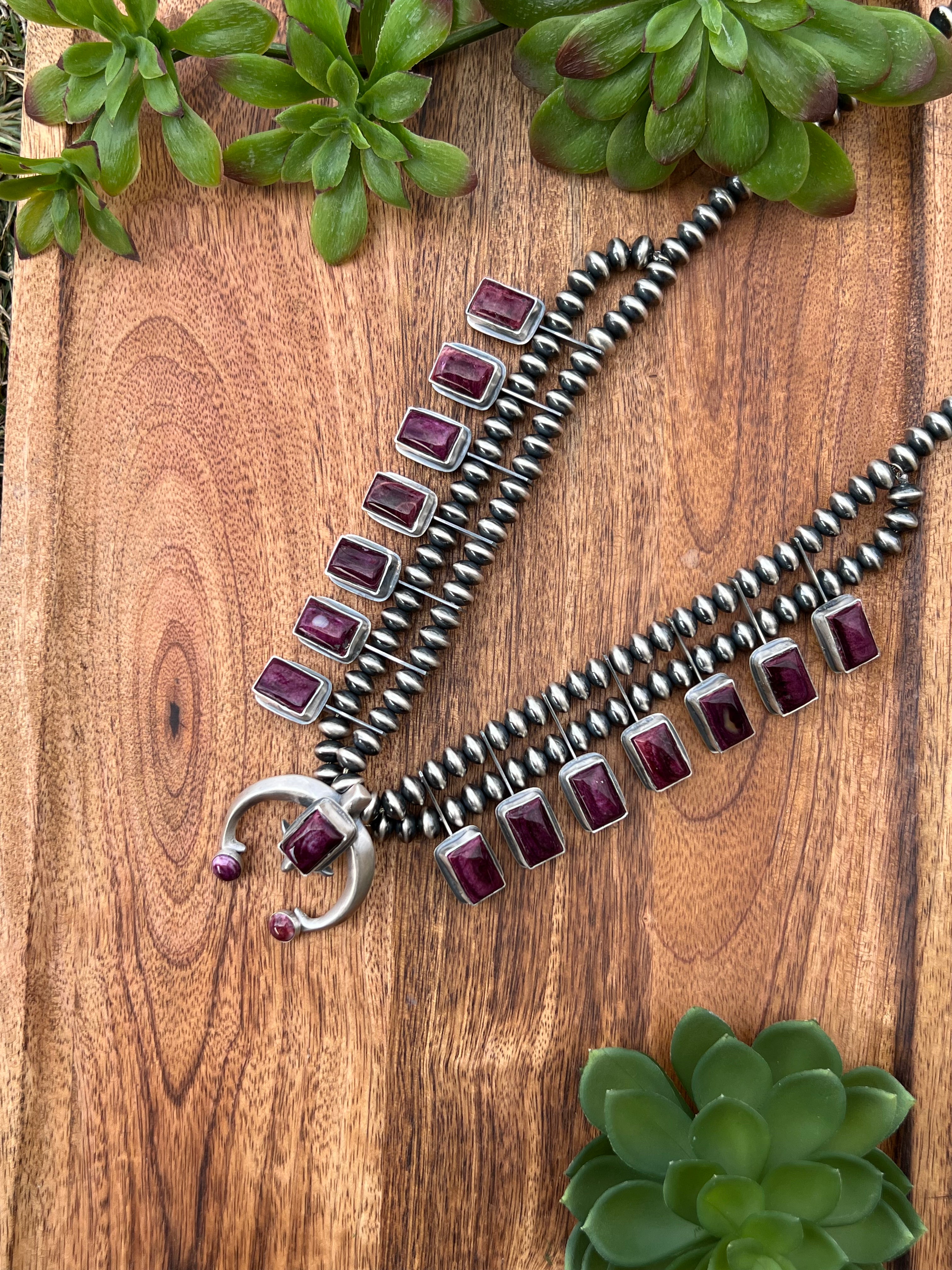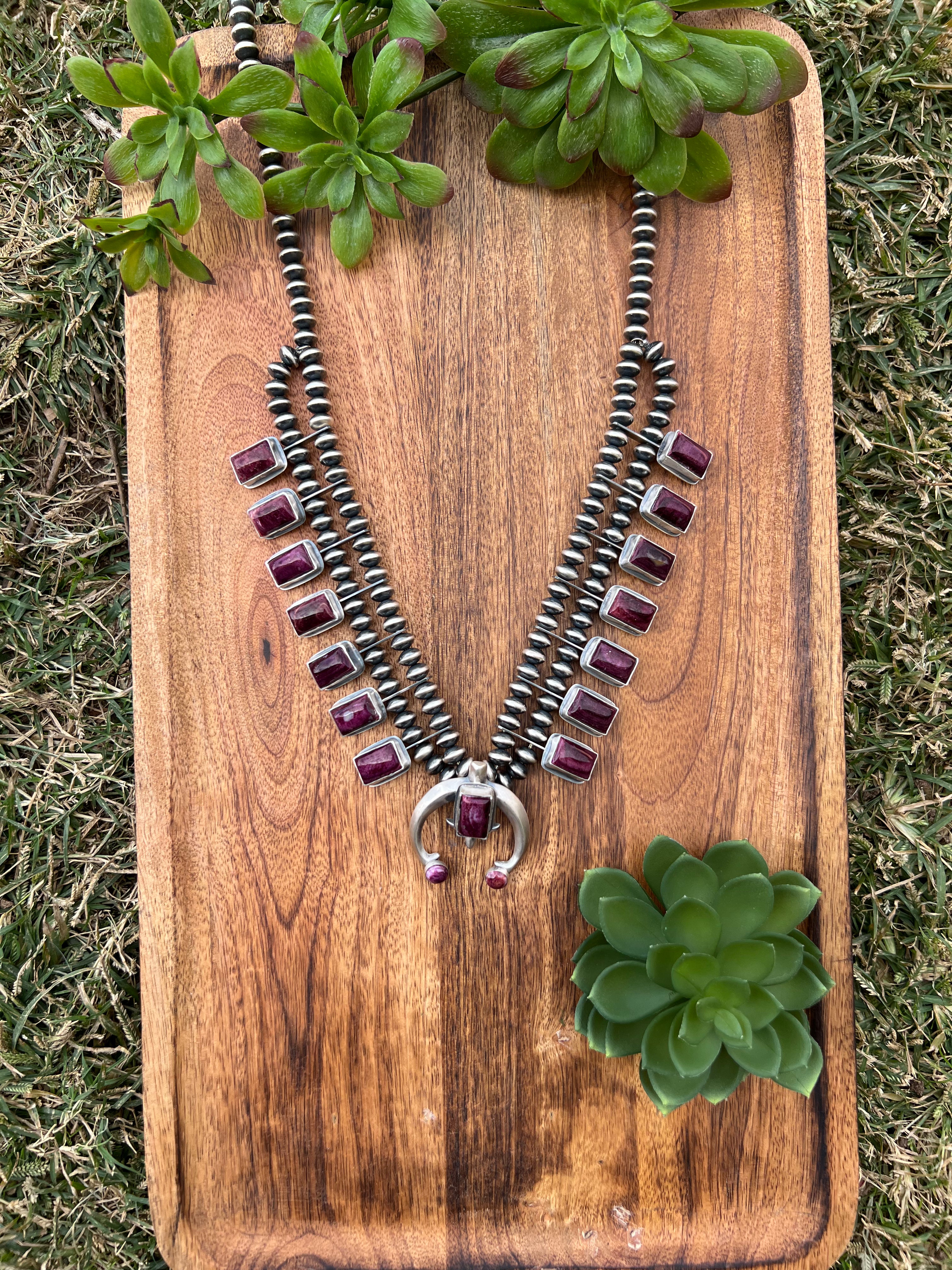 Tony Yazzie Purple Spiny Oyster & Sterling Silver Squash Blossom Necklace