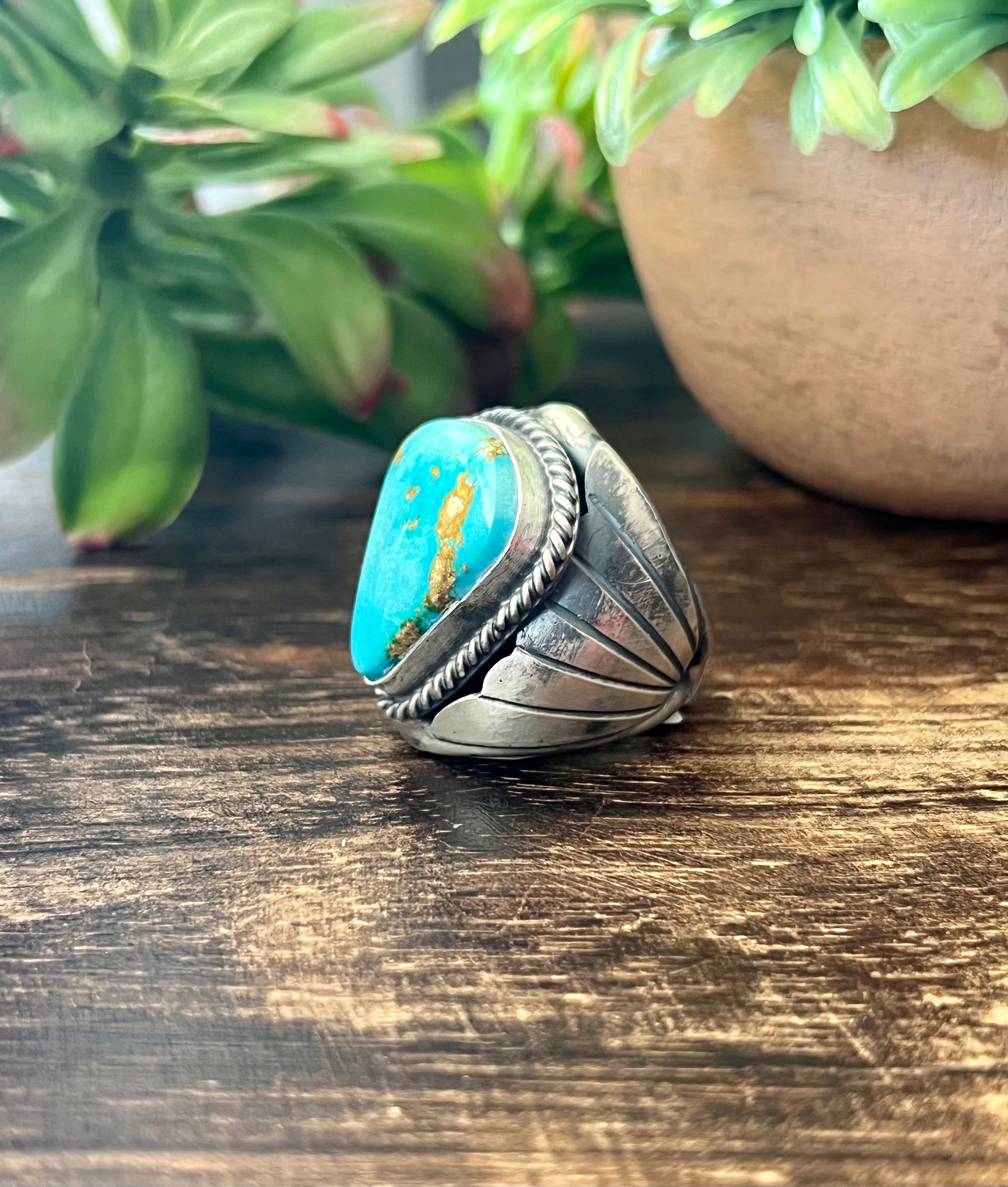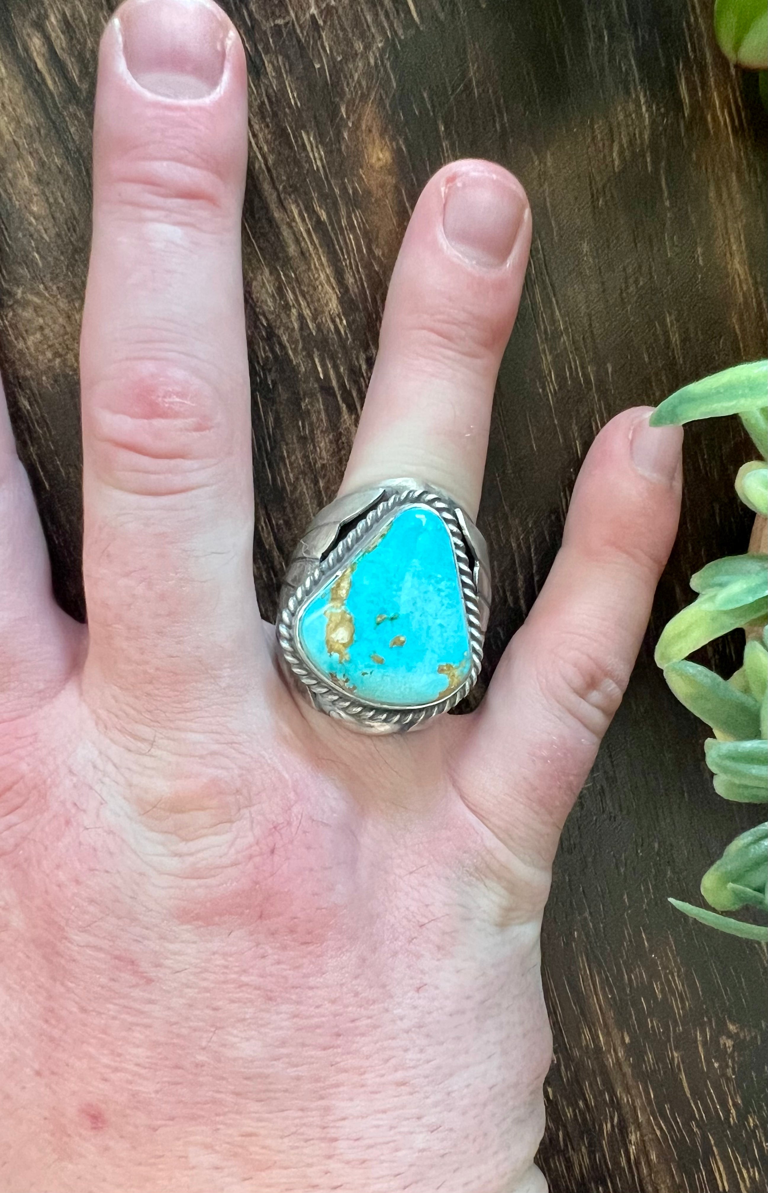 Tony Yazzie Sonoran Mountain Turquoise & Sterling Silver Ring Size 10.5