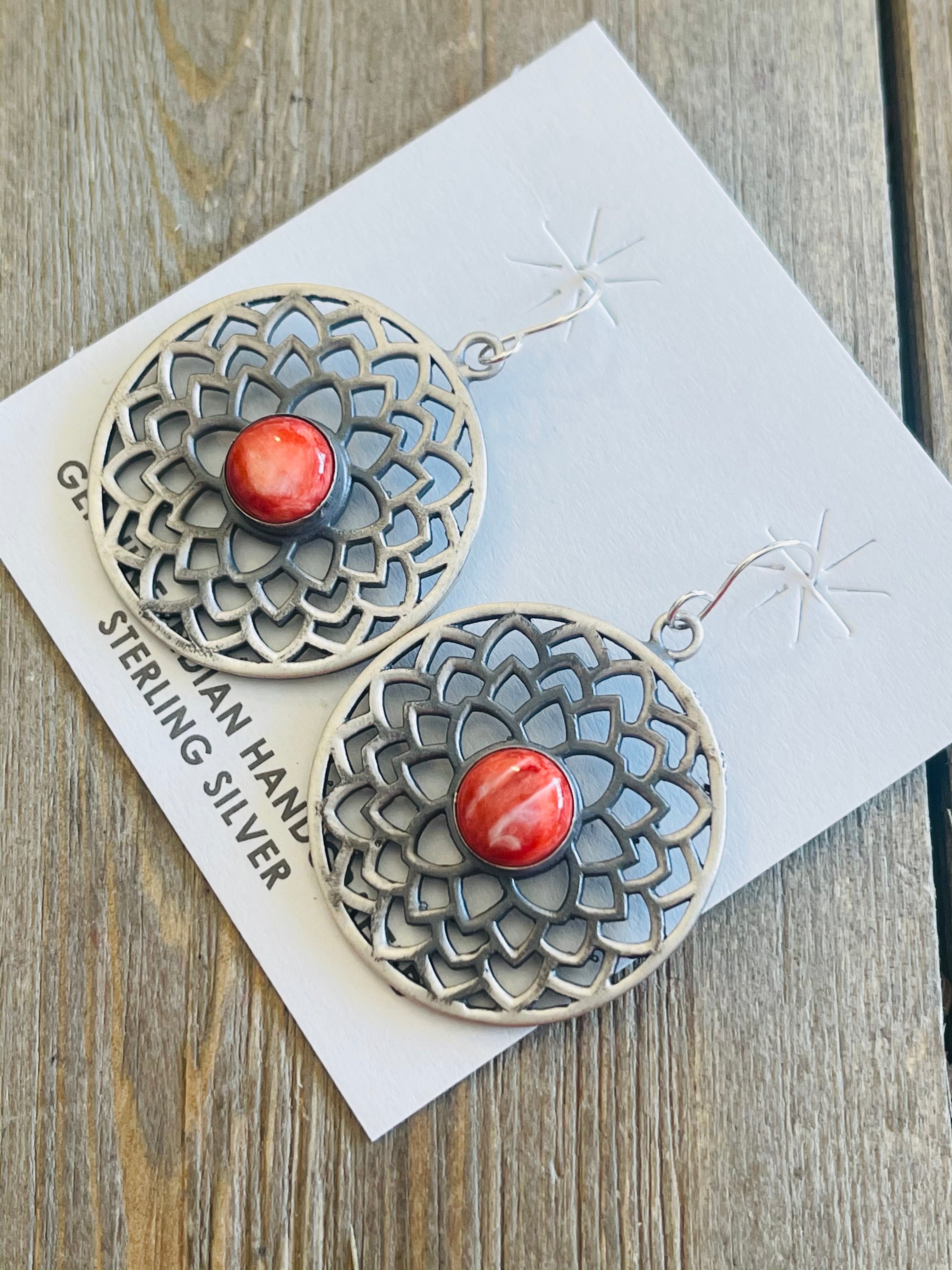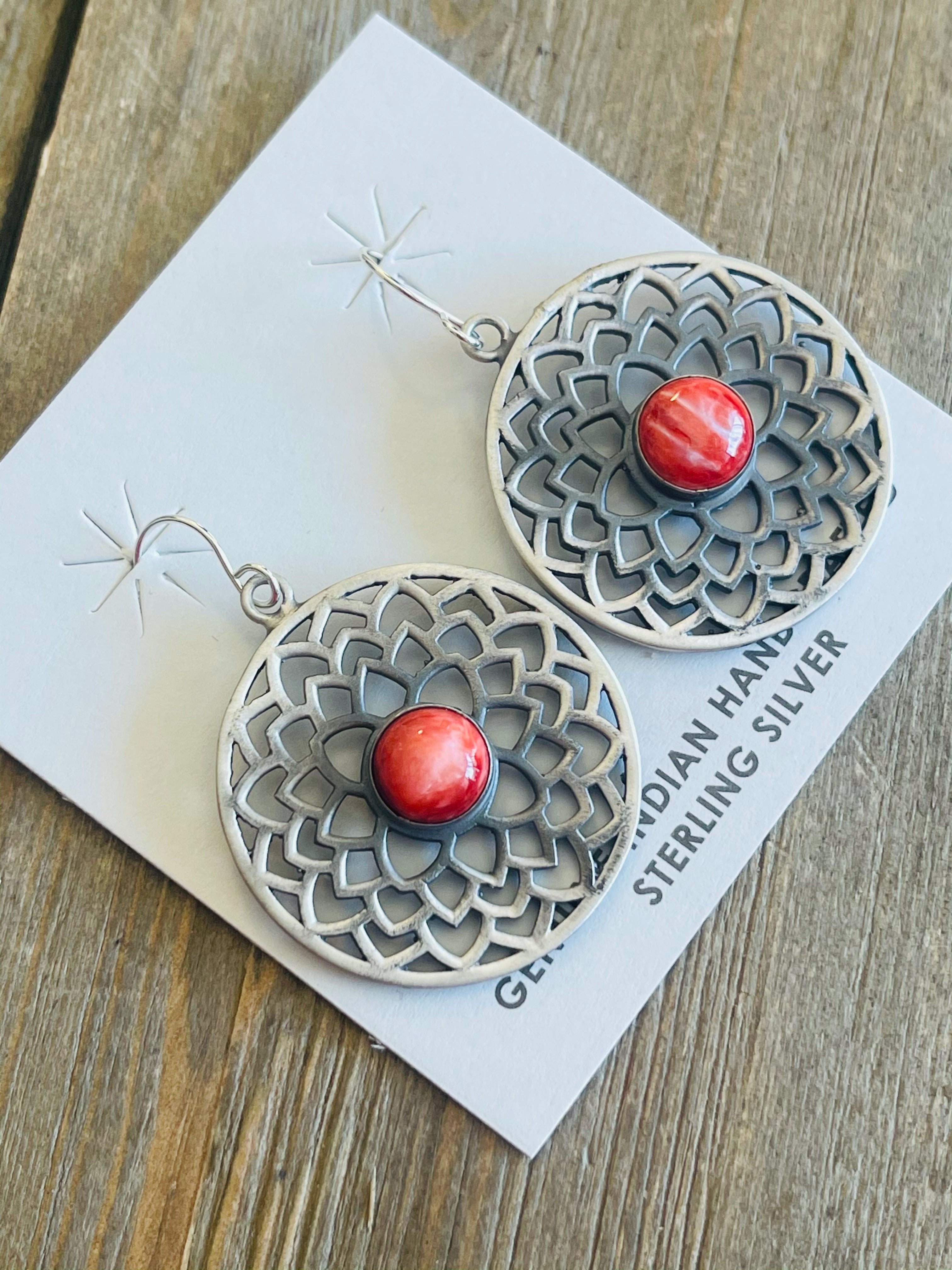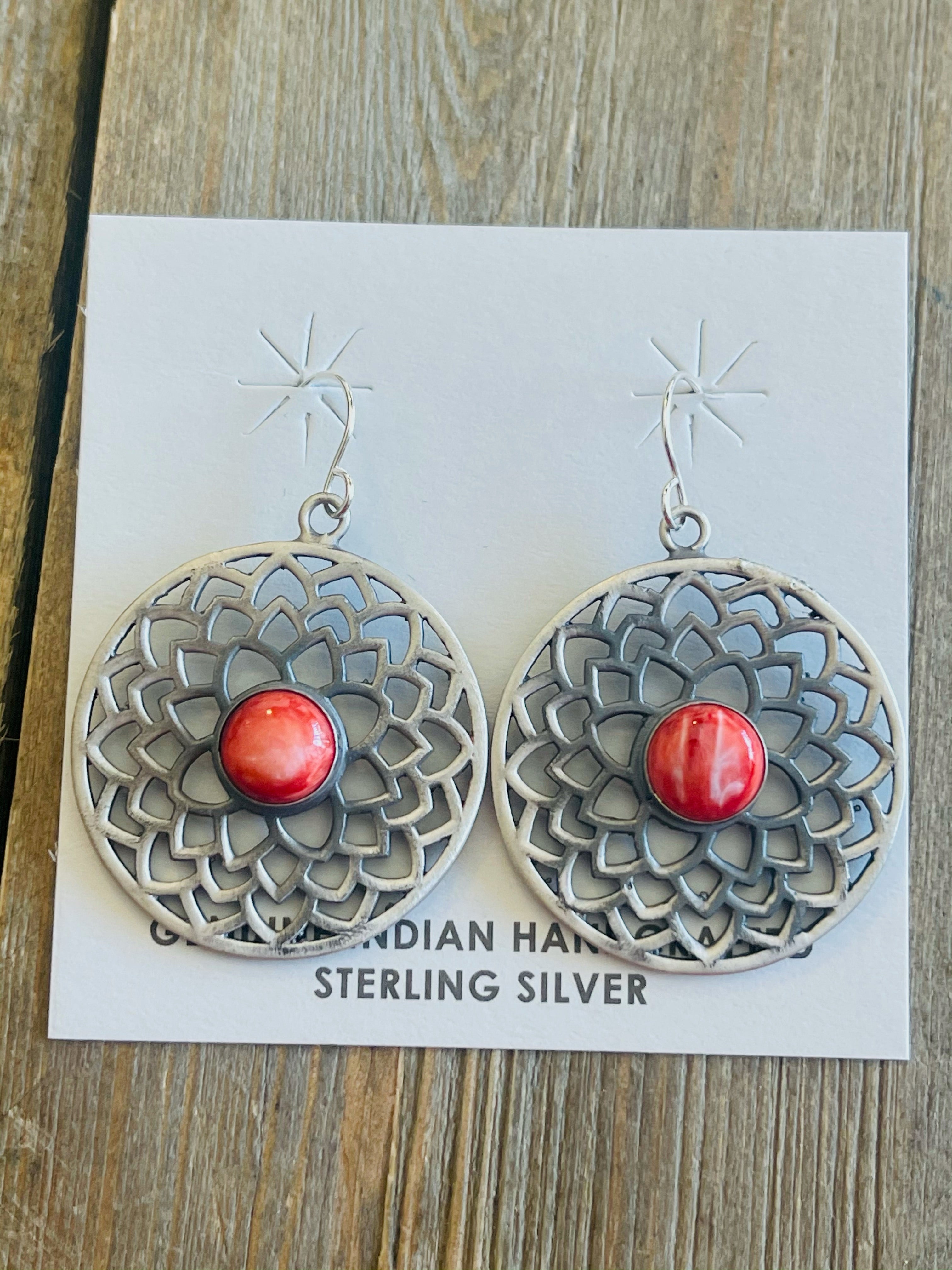 Tony Yazzie Spiny Oyster & Sterling Silver Dangles