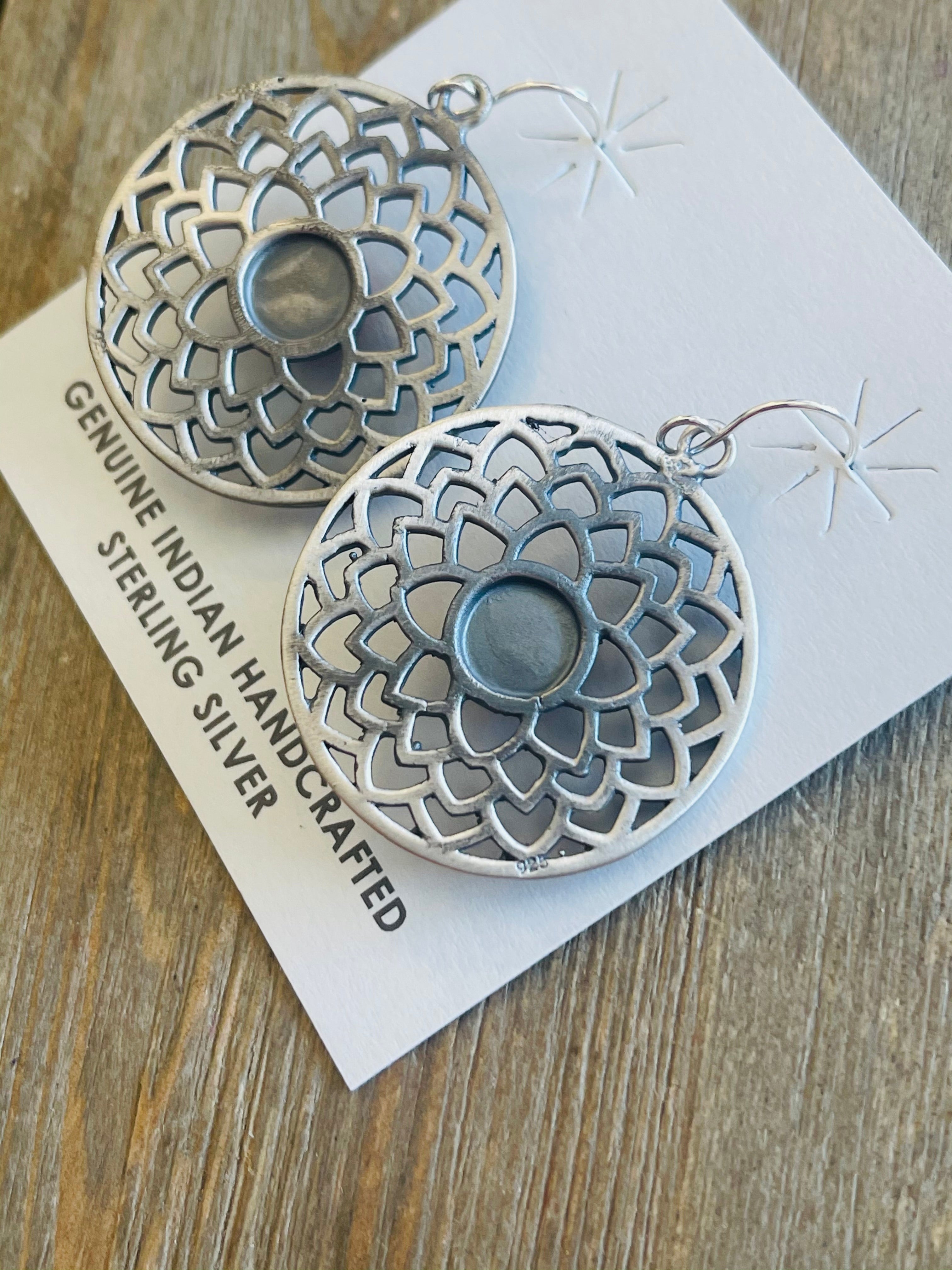 Tony Yazzie Spiny Oyster & Sterling Silver Dangles. It measures 1 3/4 inches long and 1 inch wide. Stamped sterling silver.