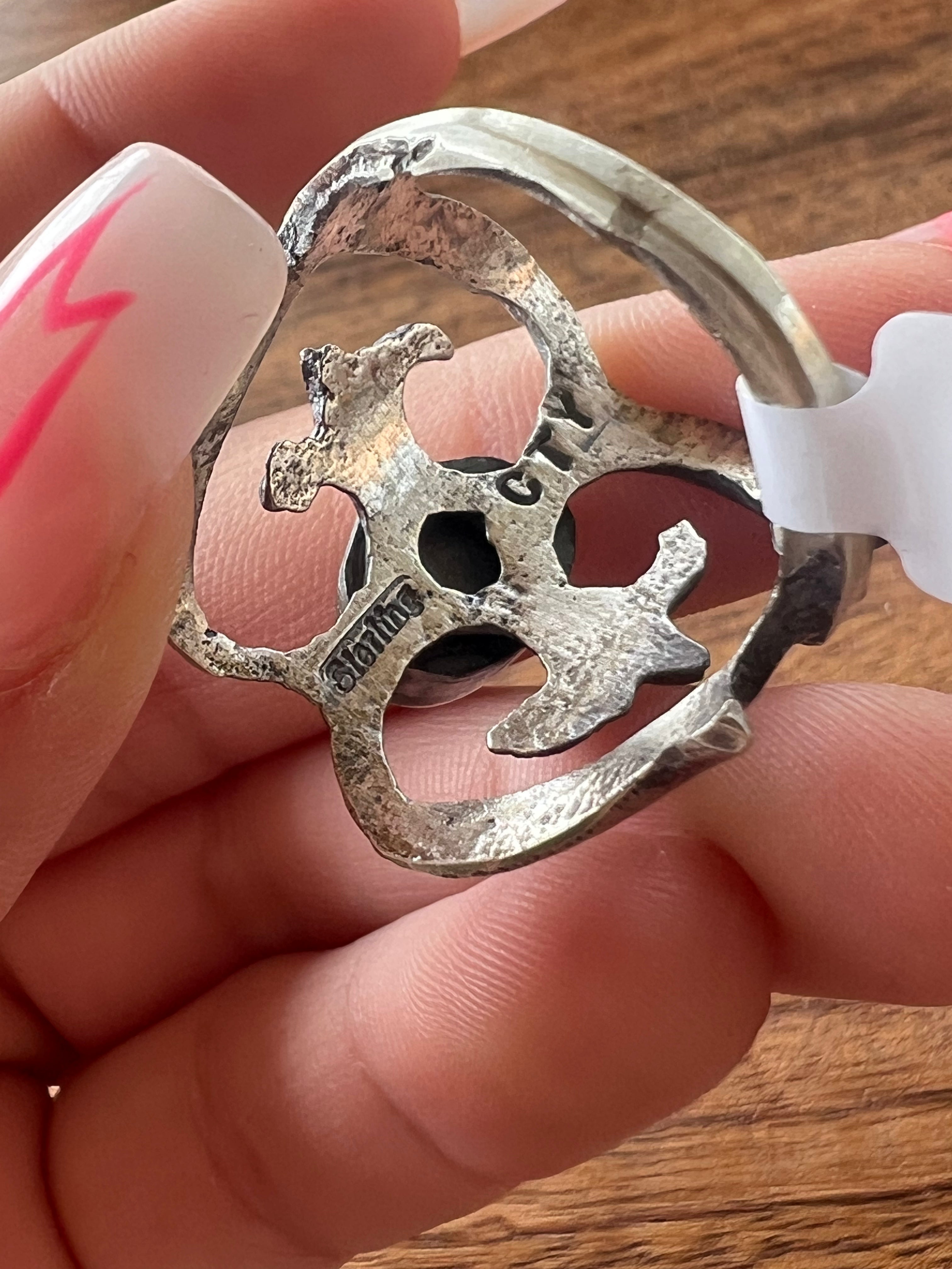 Tonya Yazzie Kingman Turquoise & Sterling Silver Ring Size 11. It measures 1 inch long and 1 inch wide. Signed by the artist and stamped sterling silver.