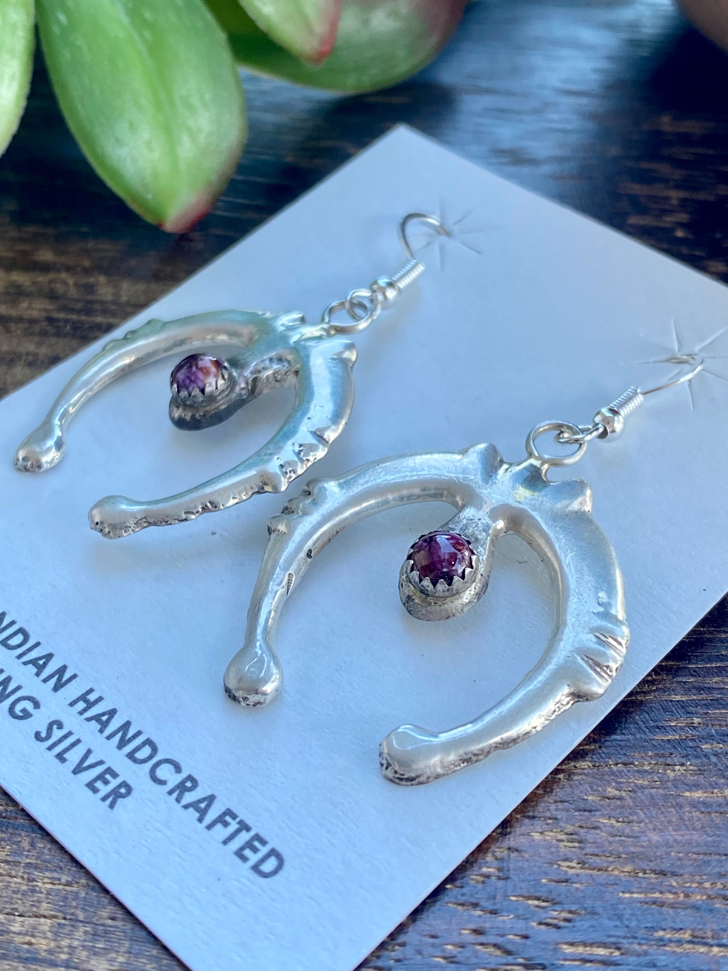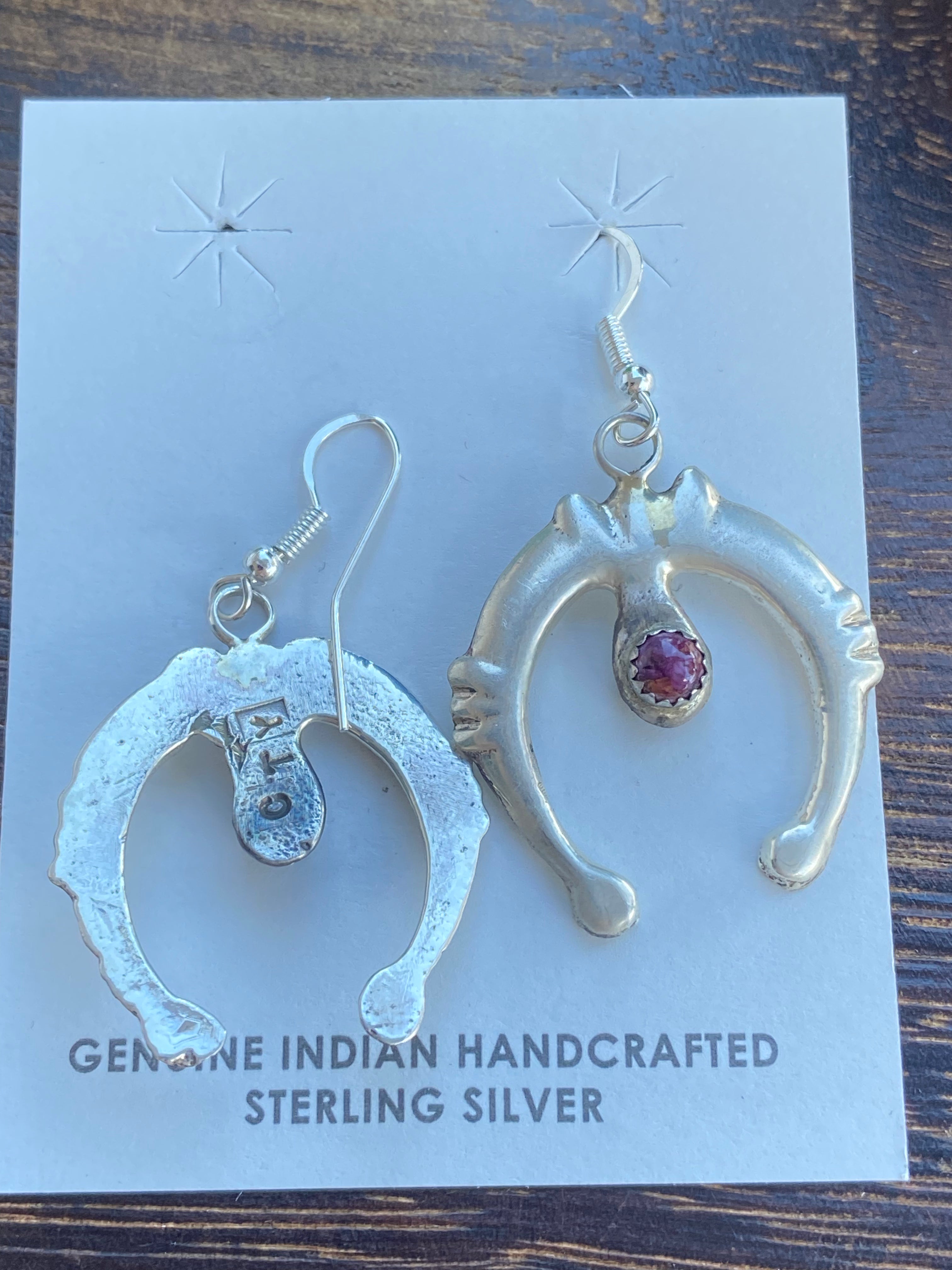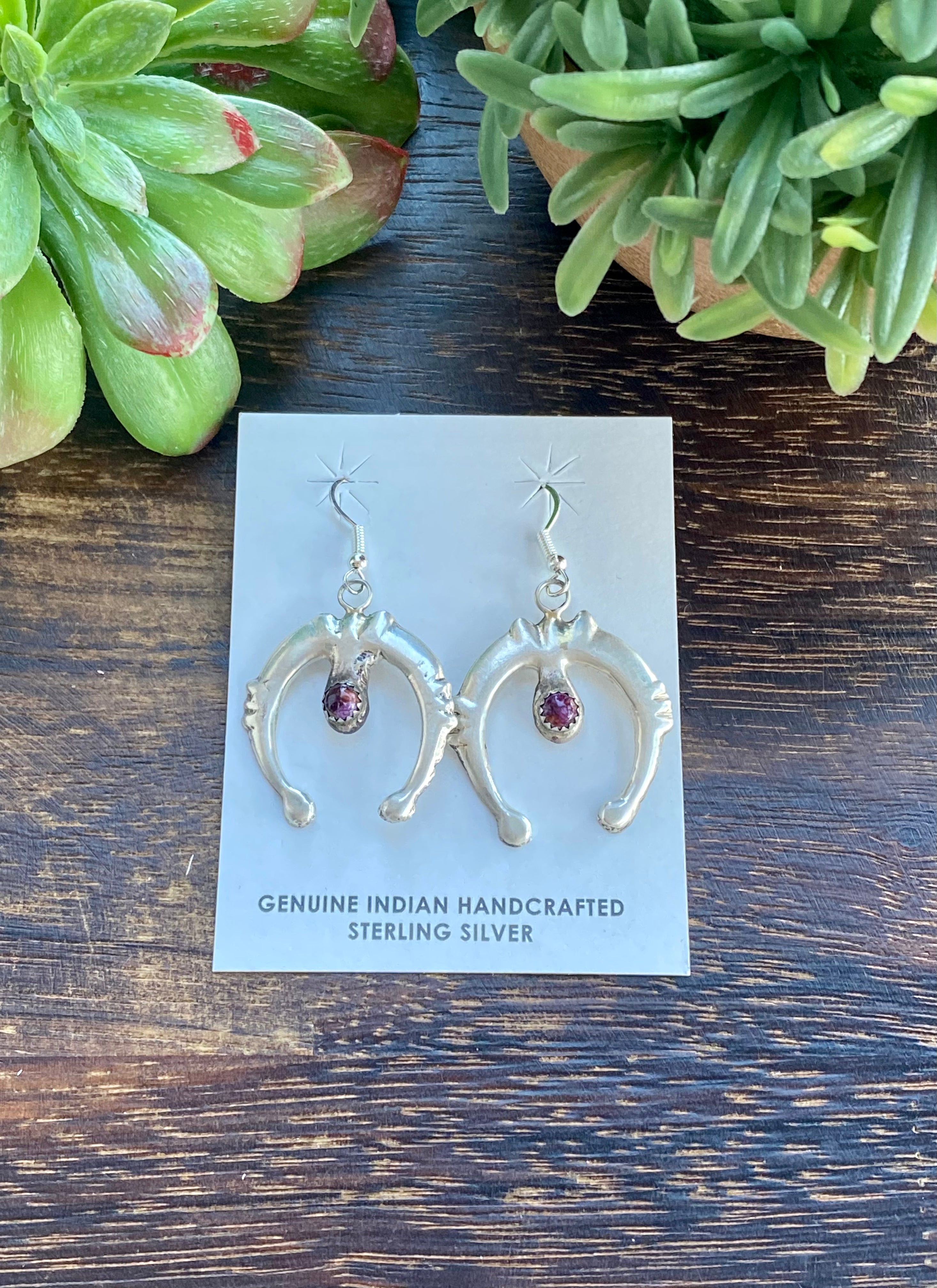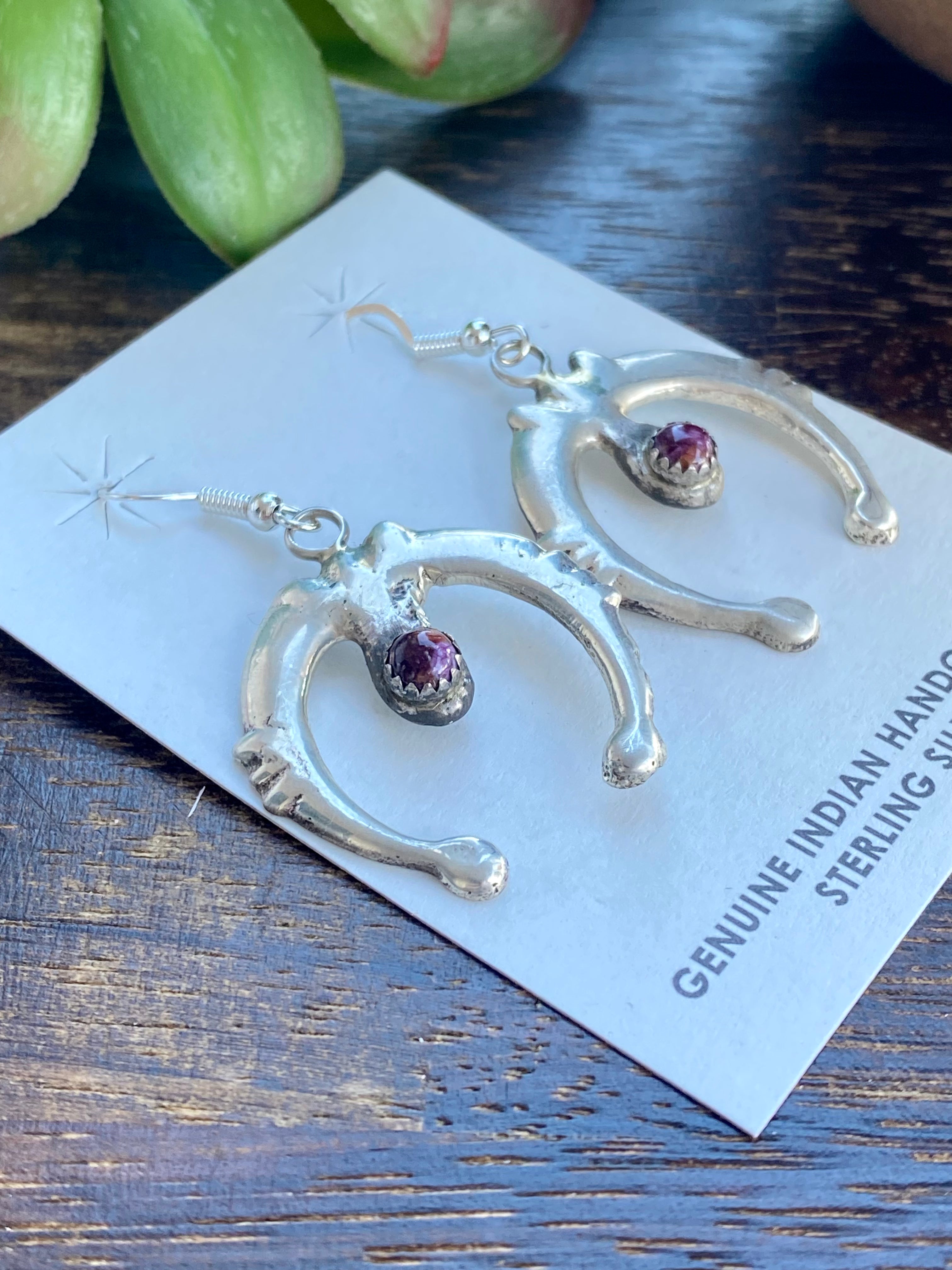Tonya Yazzie Purple Spiny Oys & Sterling Silver Naja Dangle Earrings