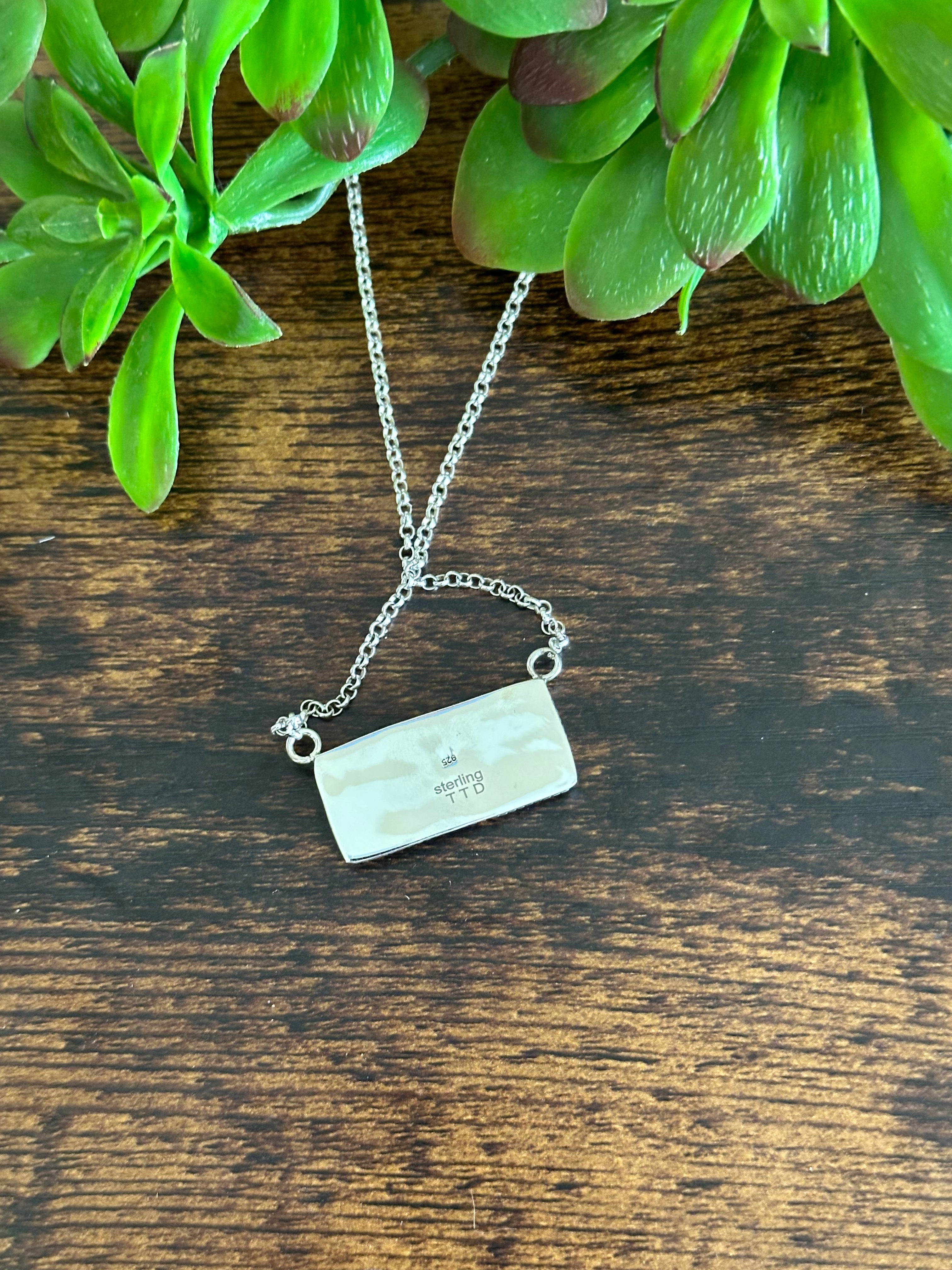 Beautiful necklace. Southwest Made Wild Horse & Sterling Silver Necklace. It measures 18 1/2 inches long with hang while the chain by itself measures 17 inches long. Signed by the artist and stamped sterling silver.