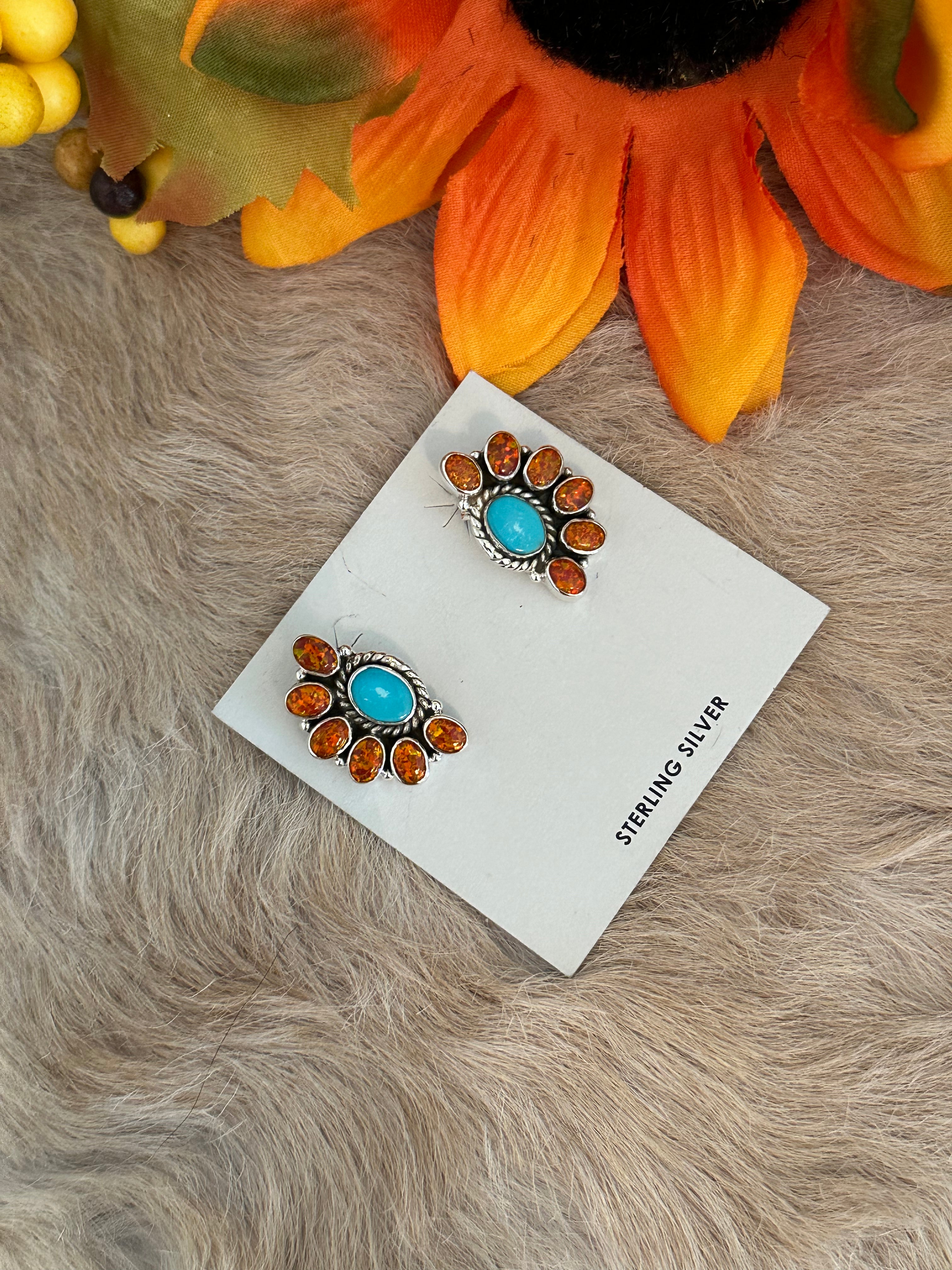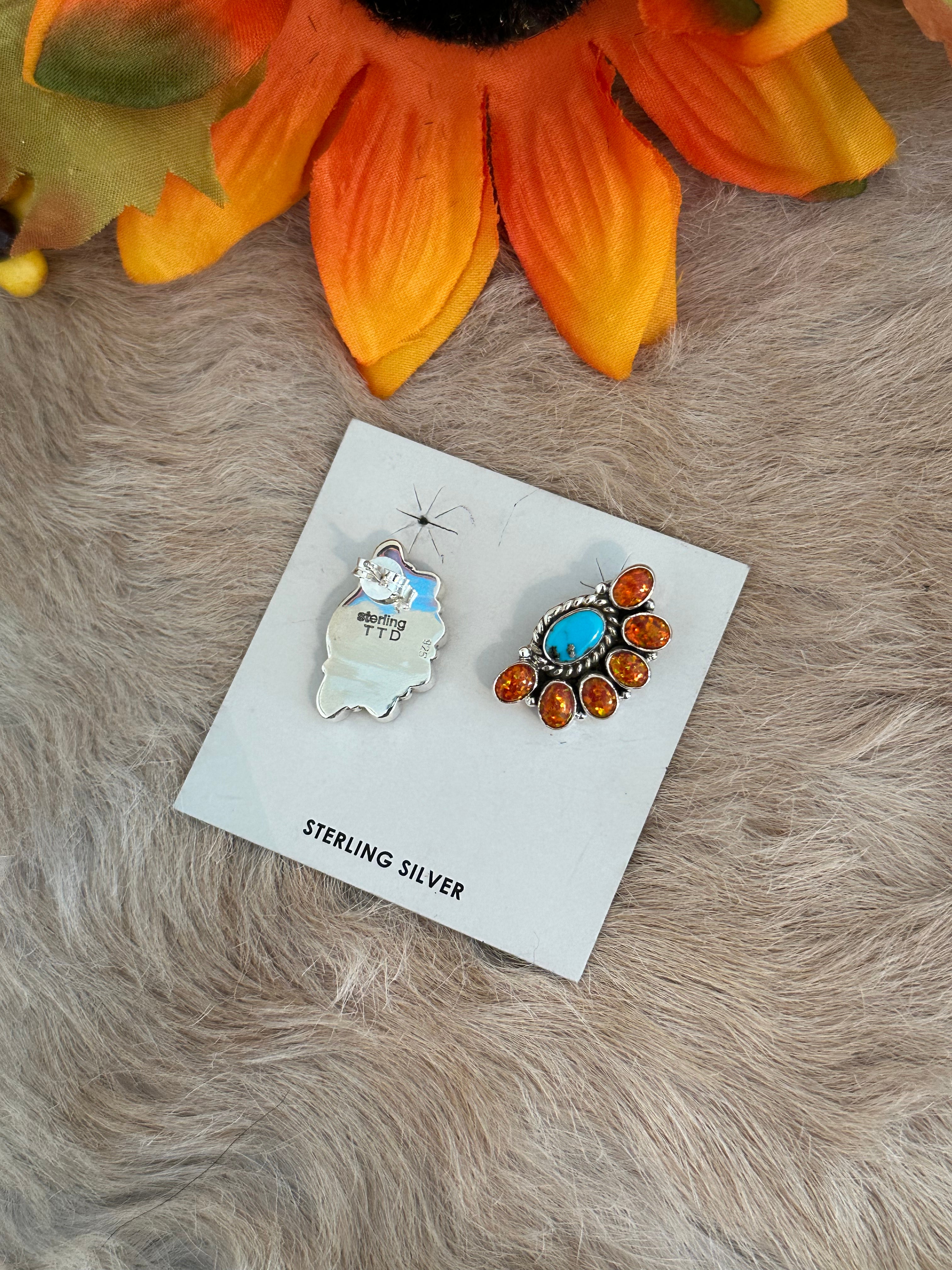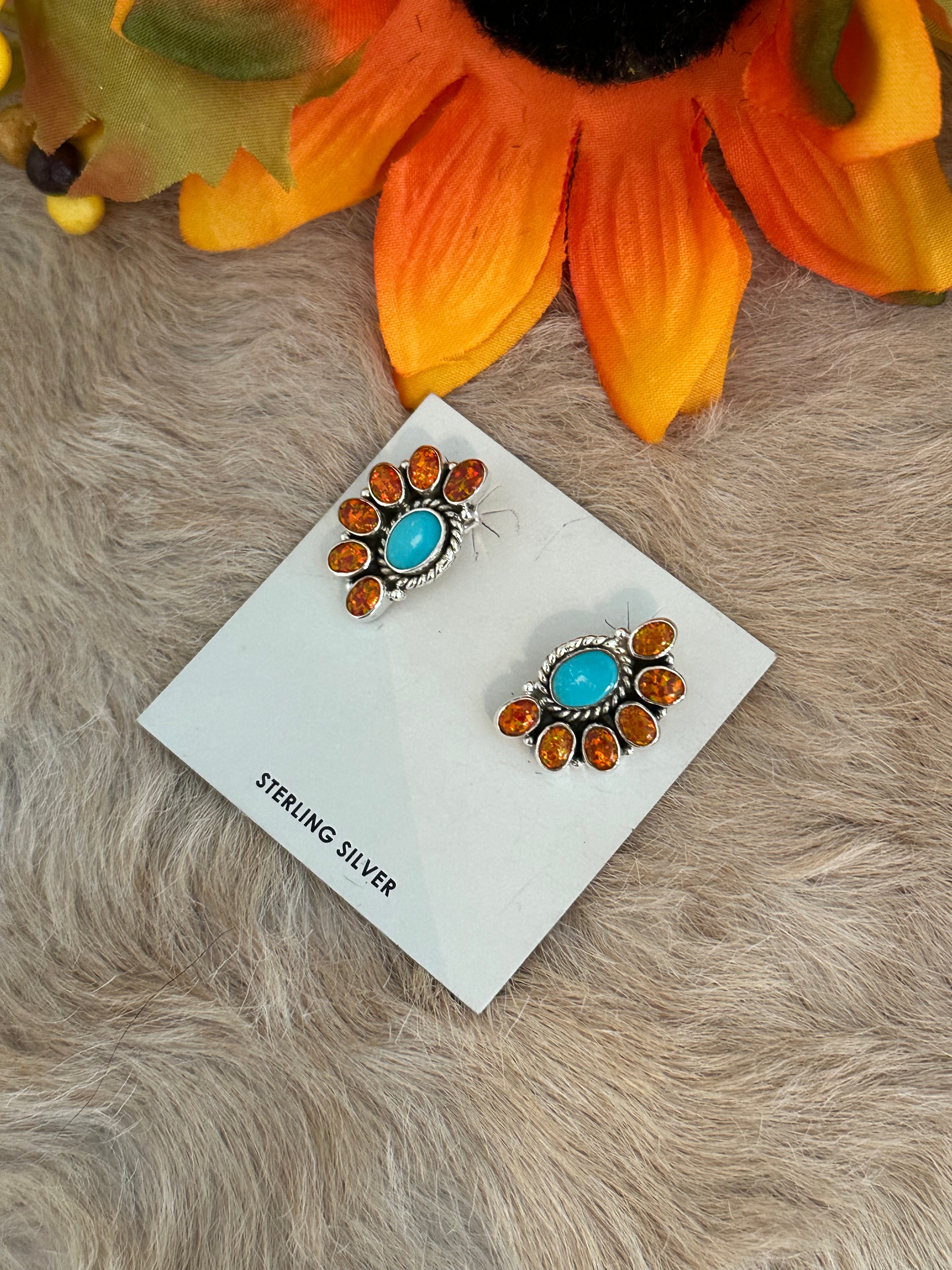 Southwest Handmade Multi Stone & Sterling Silver Post Earrings