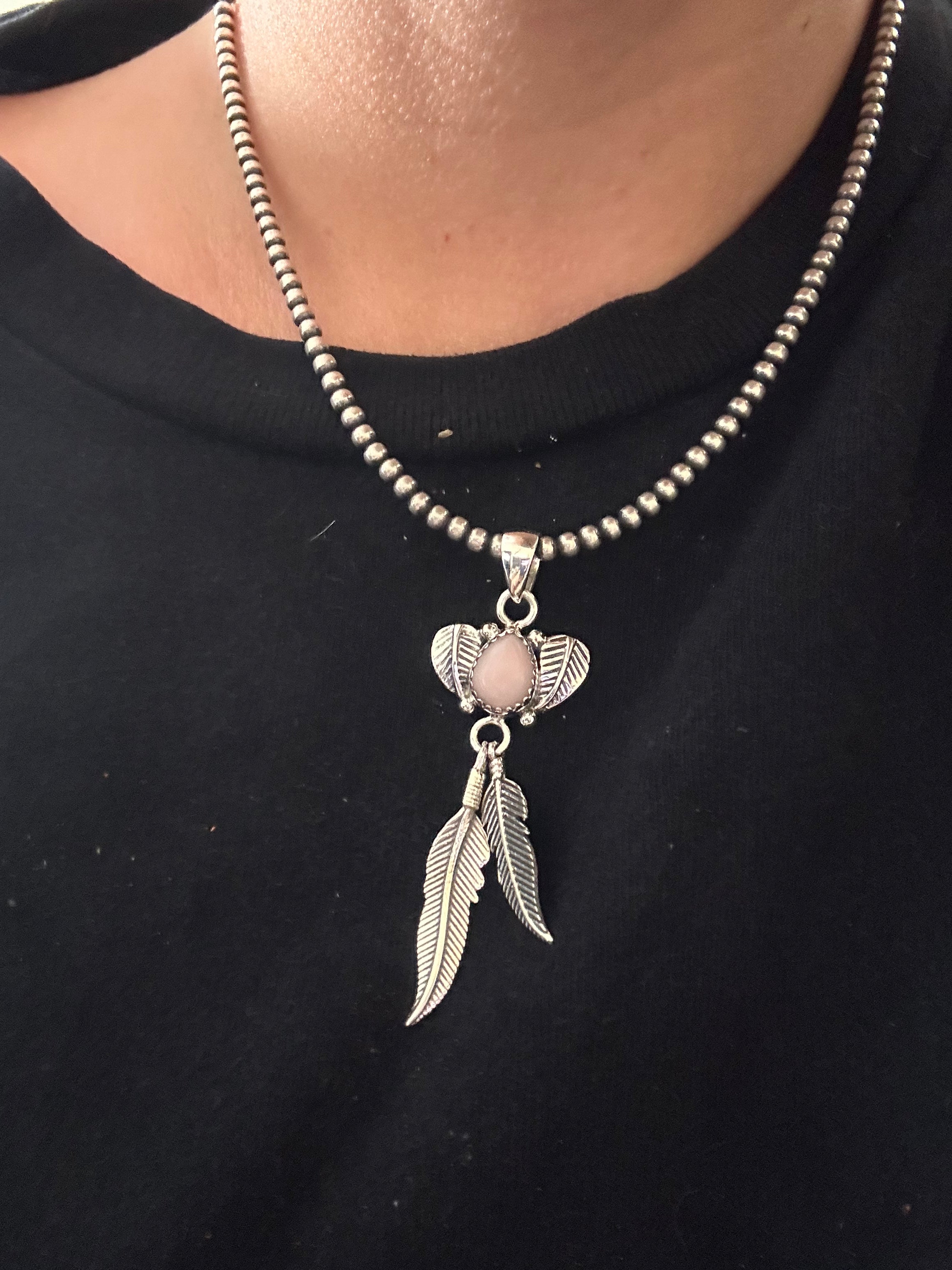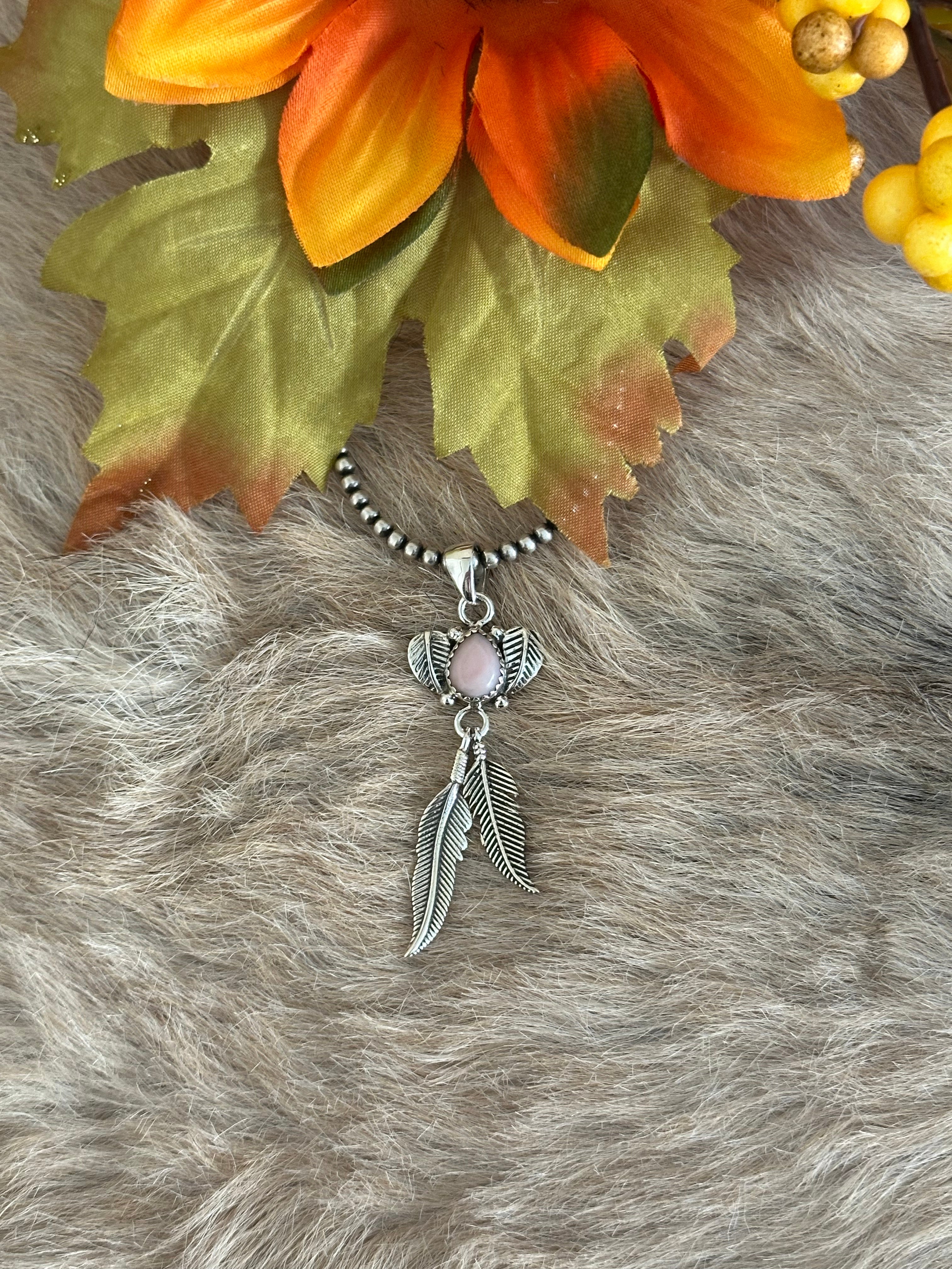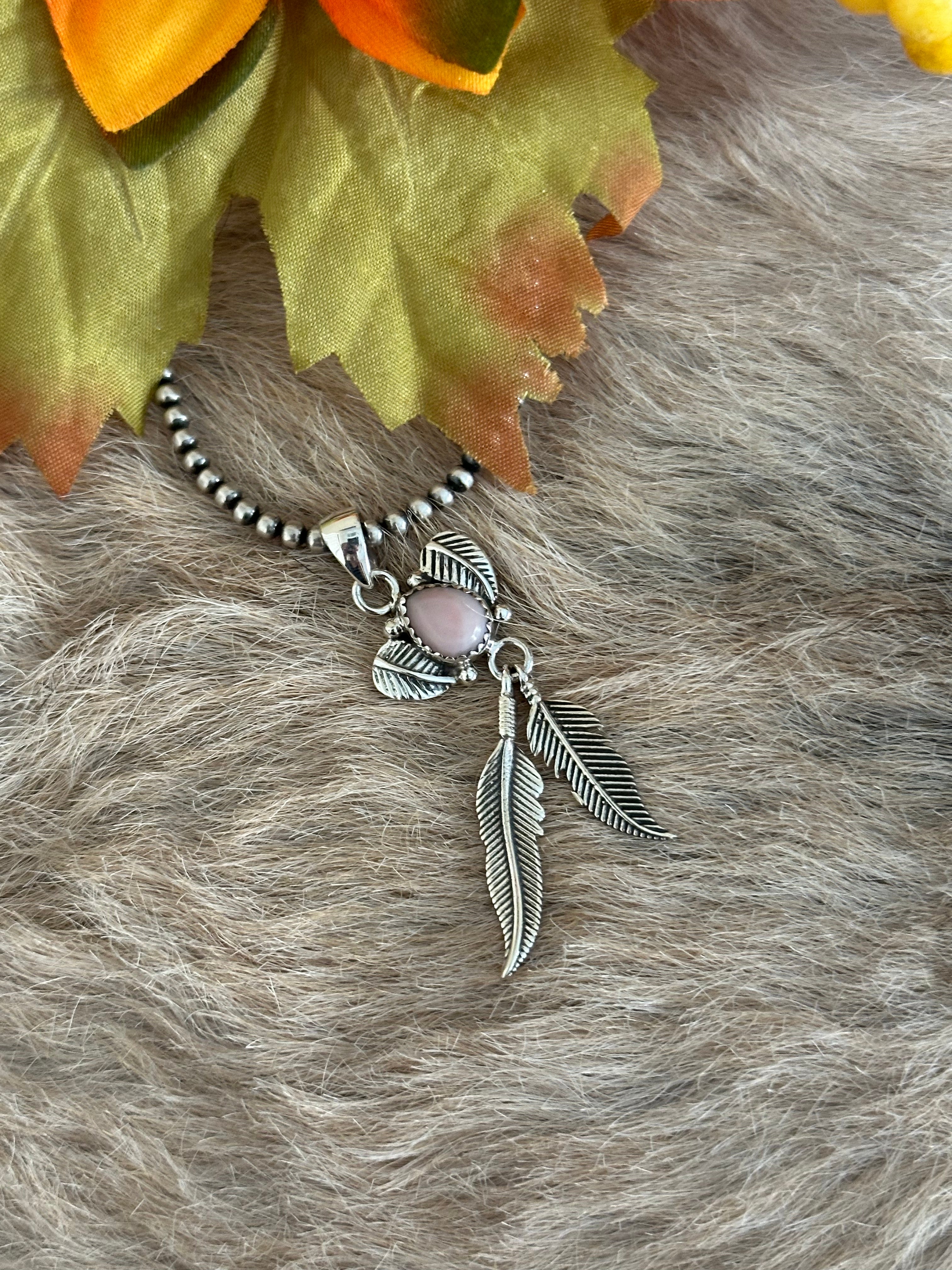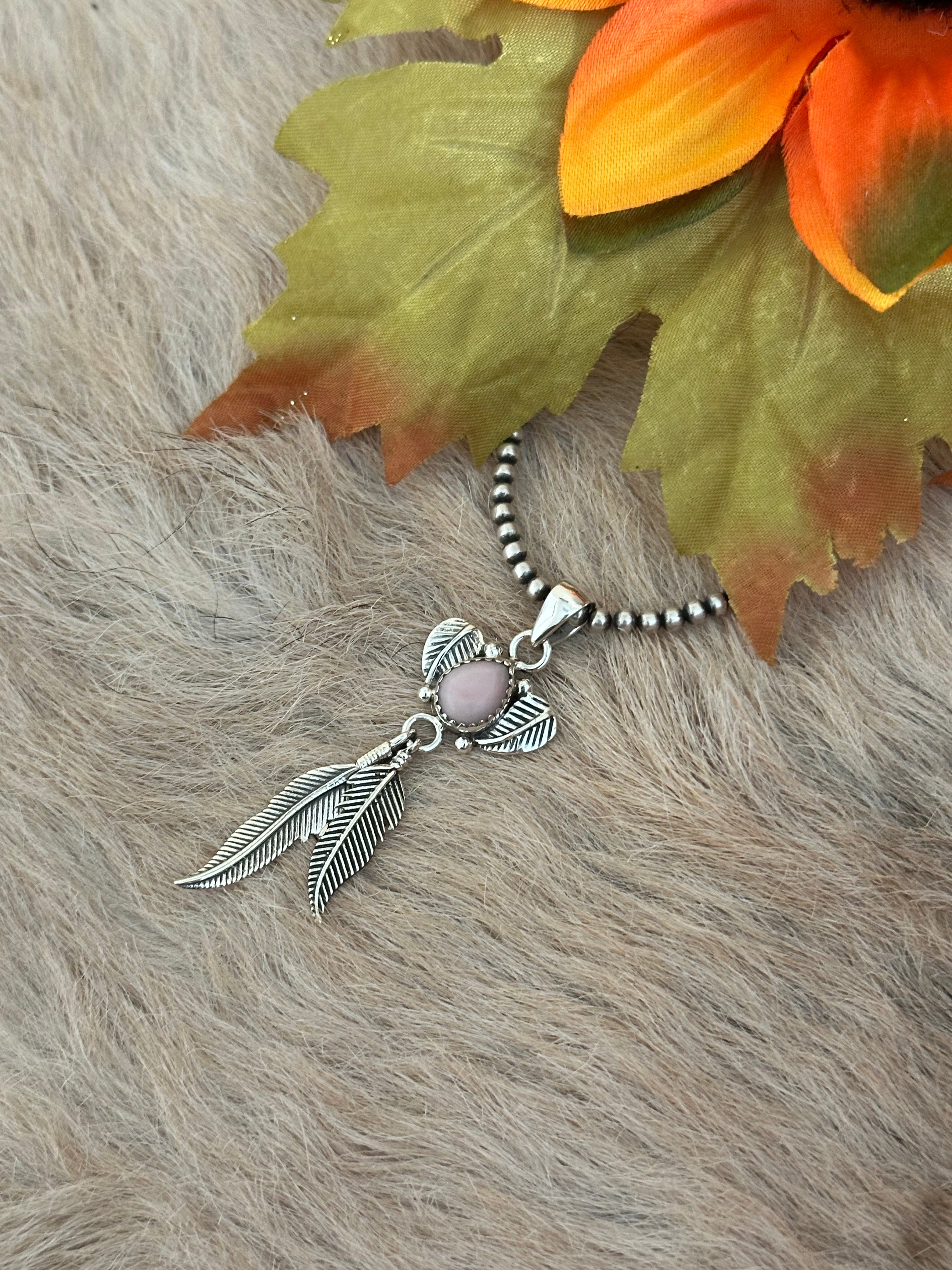 Southwest Handmade Pink Conch & Sterling Silver Feather Pendants