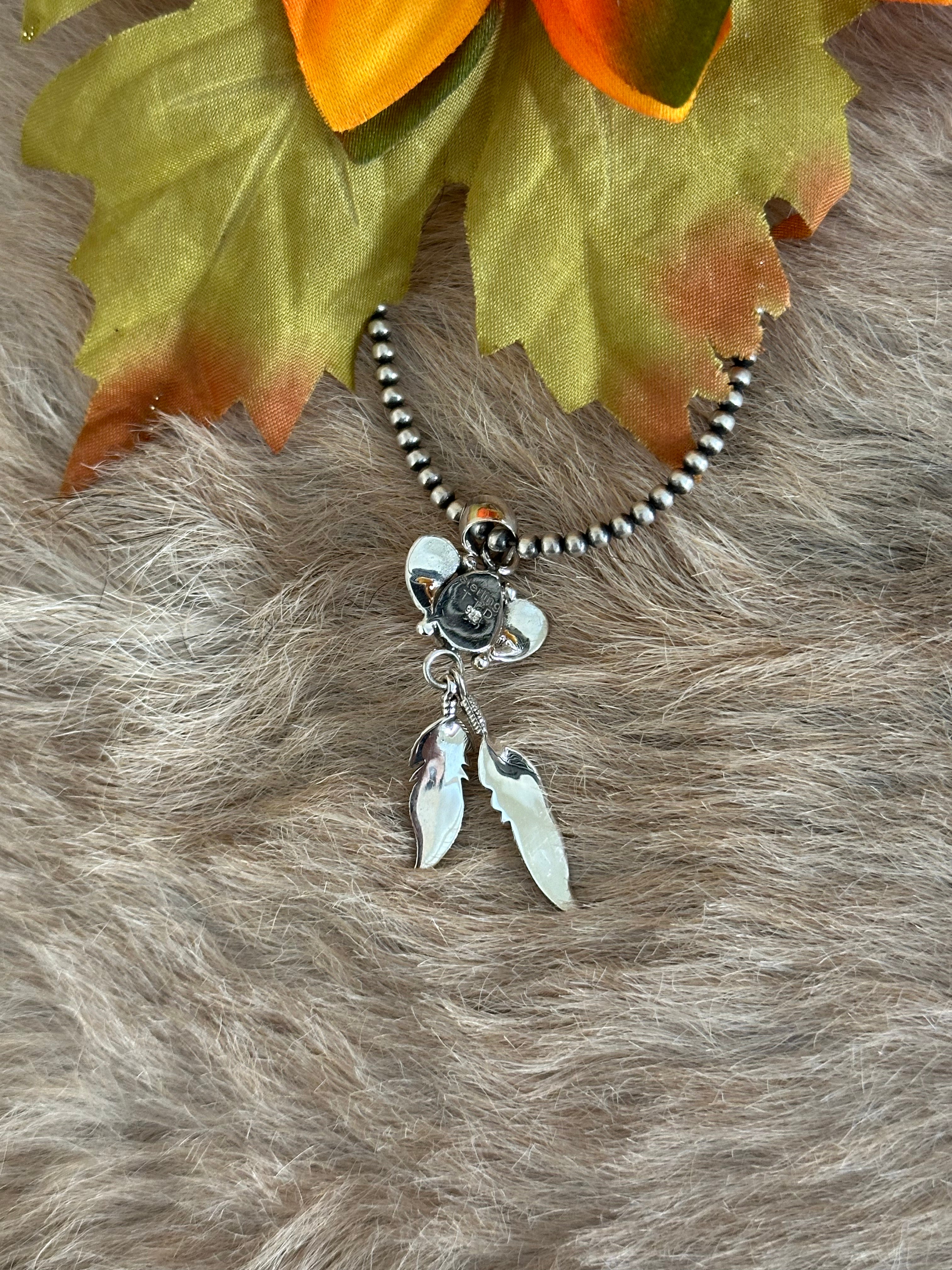Beautiful craftsmanship. Southwest Handmade Pink Conch & Sterling Silver Feather Pendants. It measures 2 3/8 inches long and 3/4 of an inch wide. Pendant Only. Signed by the artist and stamped sterling silver. Stones will differ due to natural stones.
