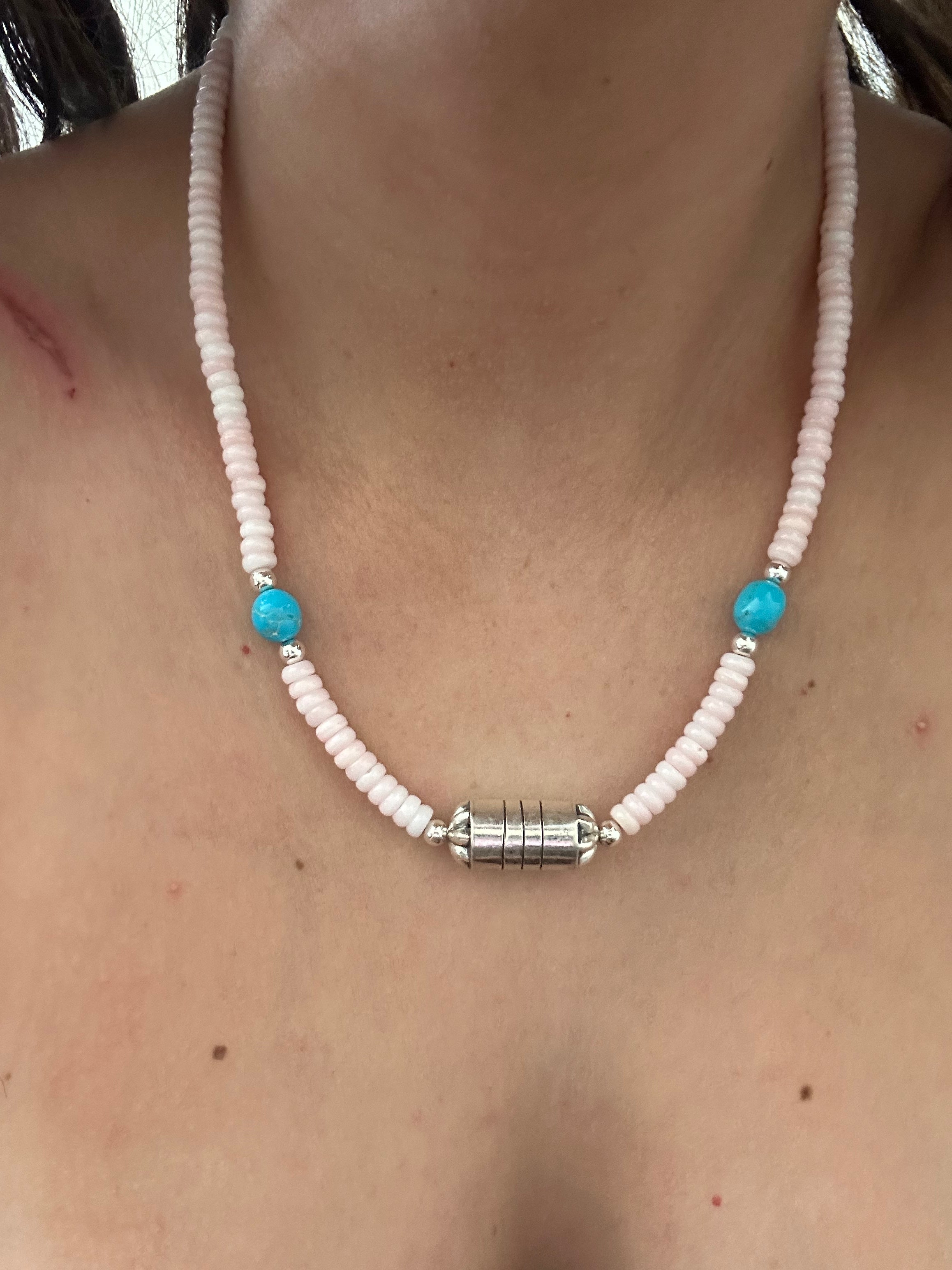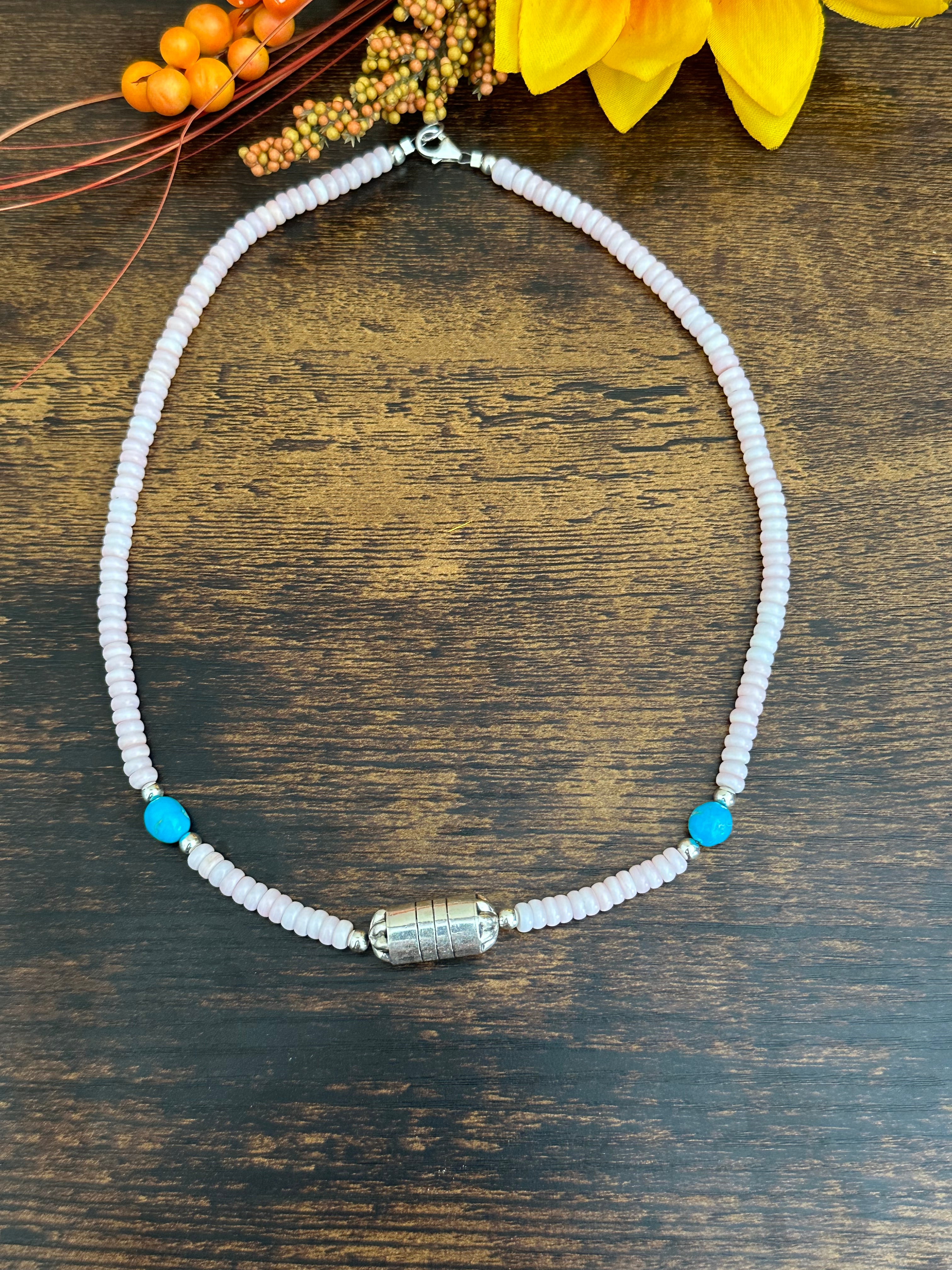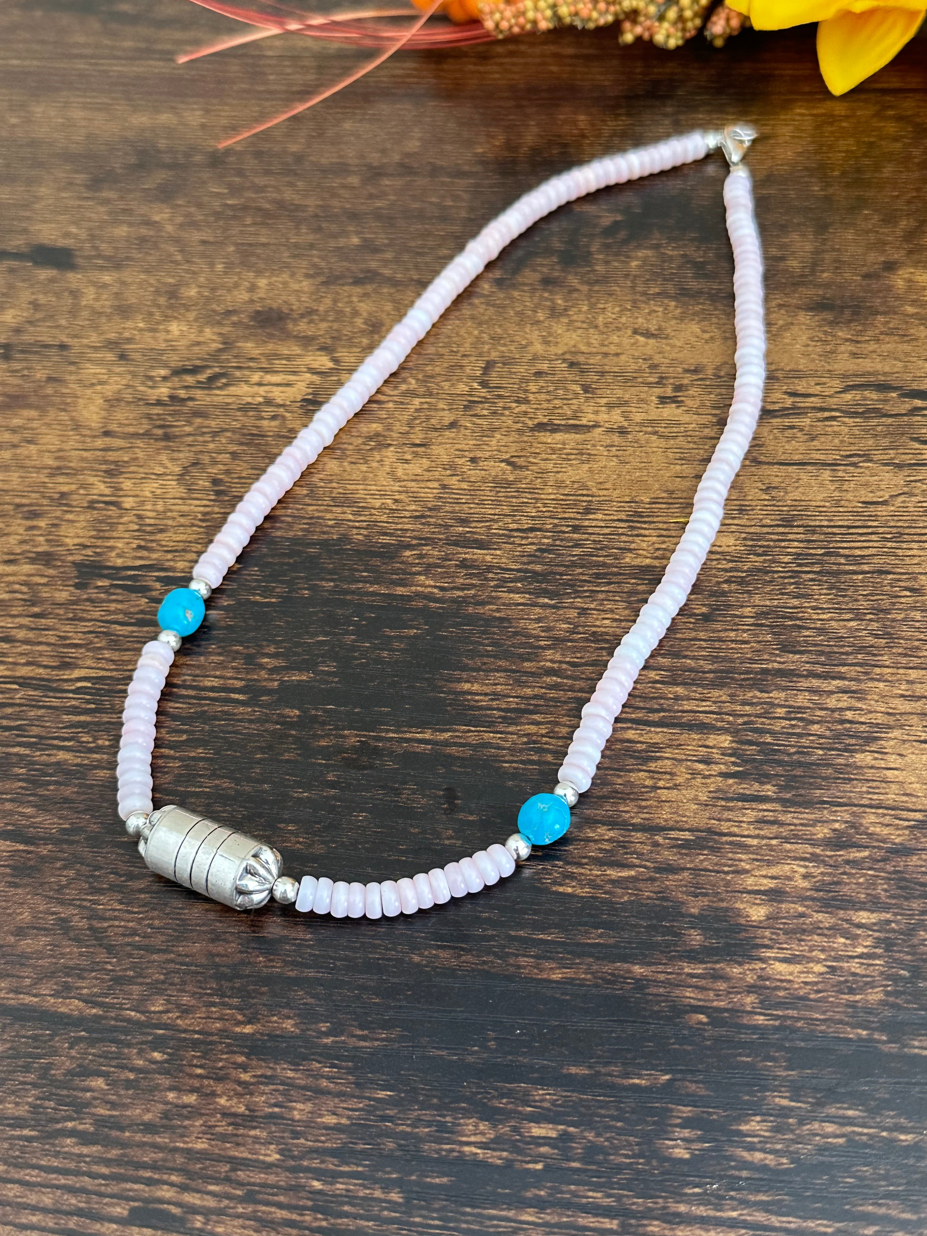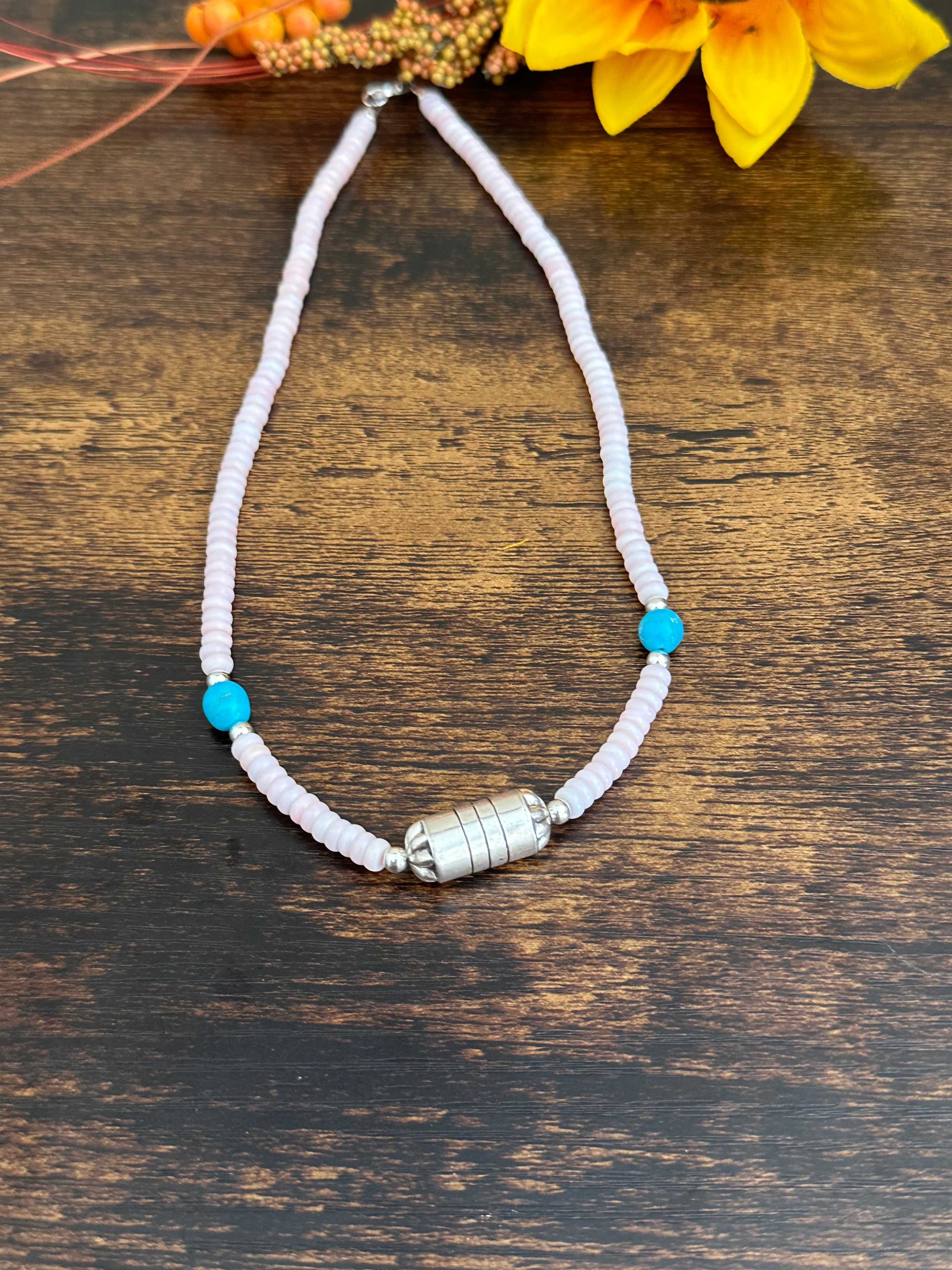 Navajo Strung Multi Stone & Sterling Silver Beaded Necklace. It measures 17 inches long.
