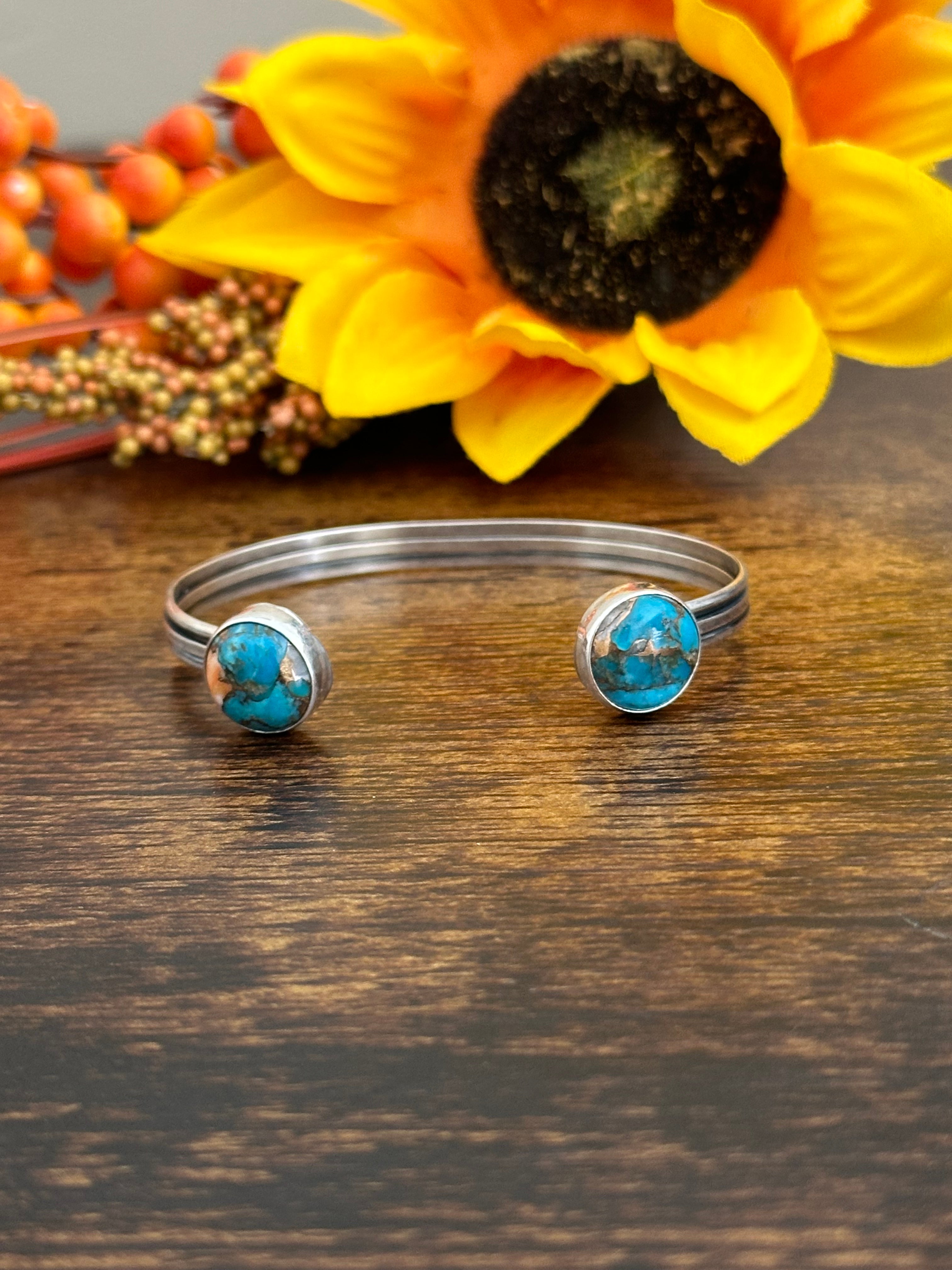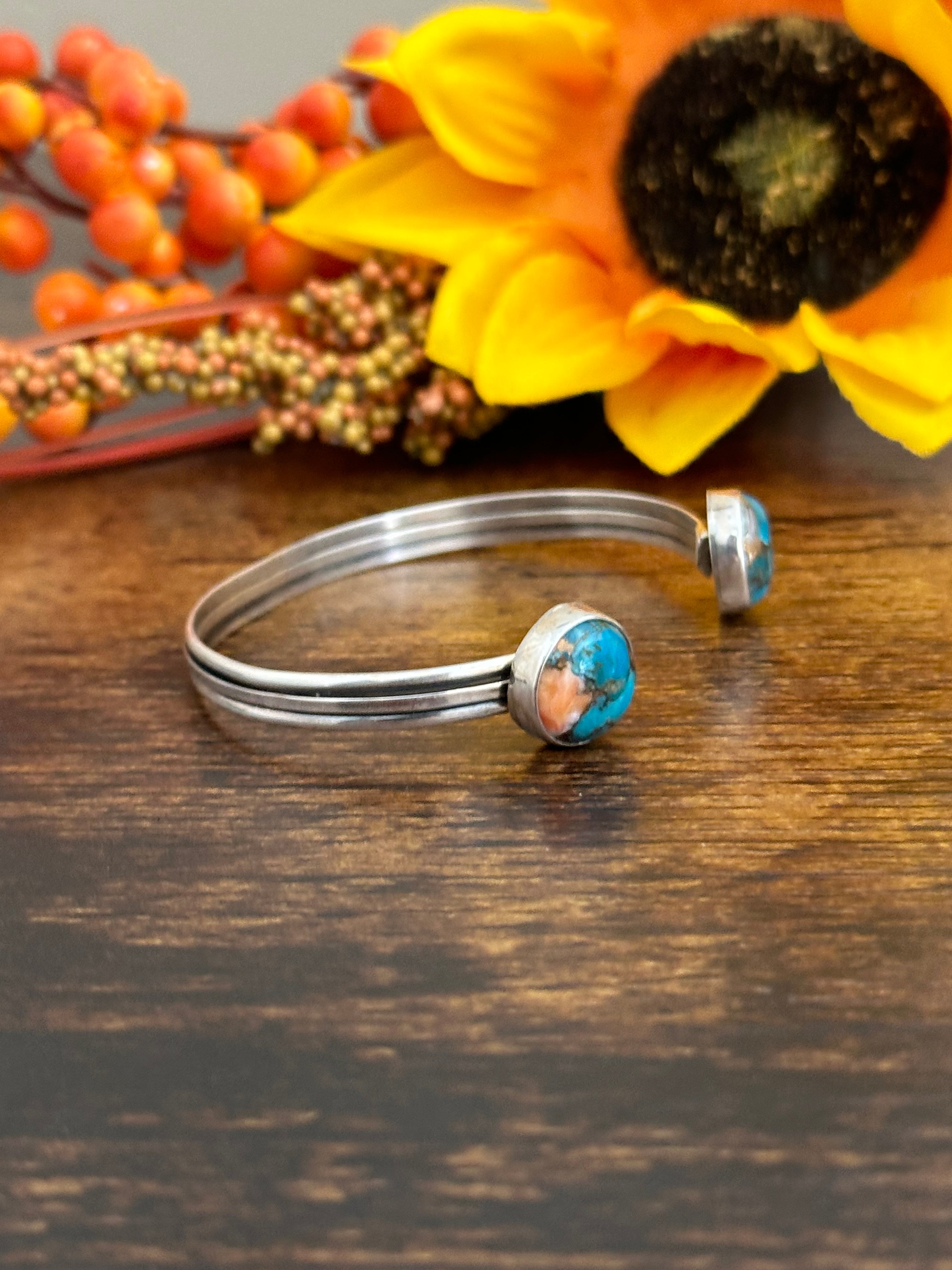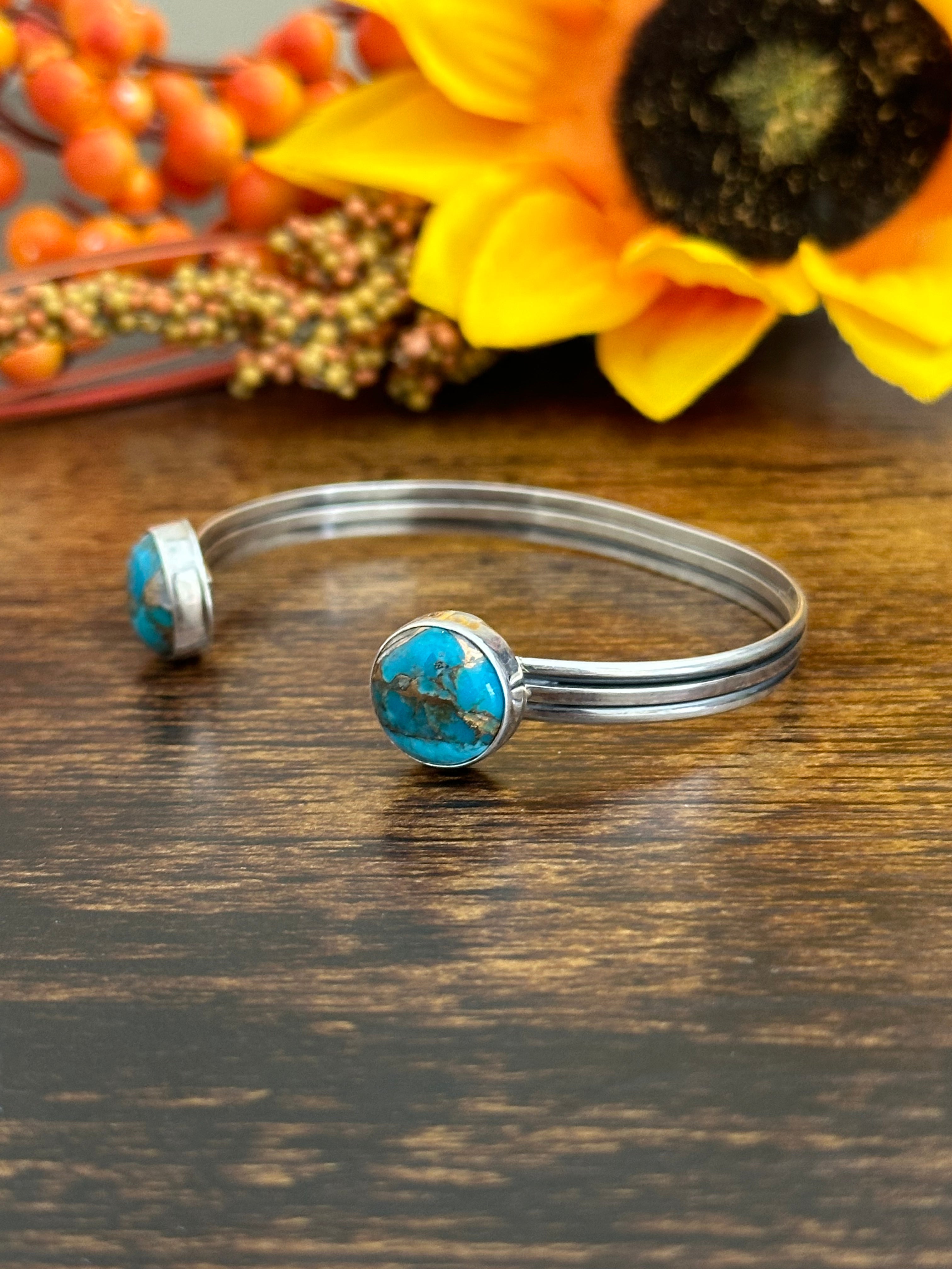 Navajo Made Mohave Turquoise & Sterling Silver Cuff Bracelet