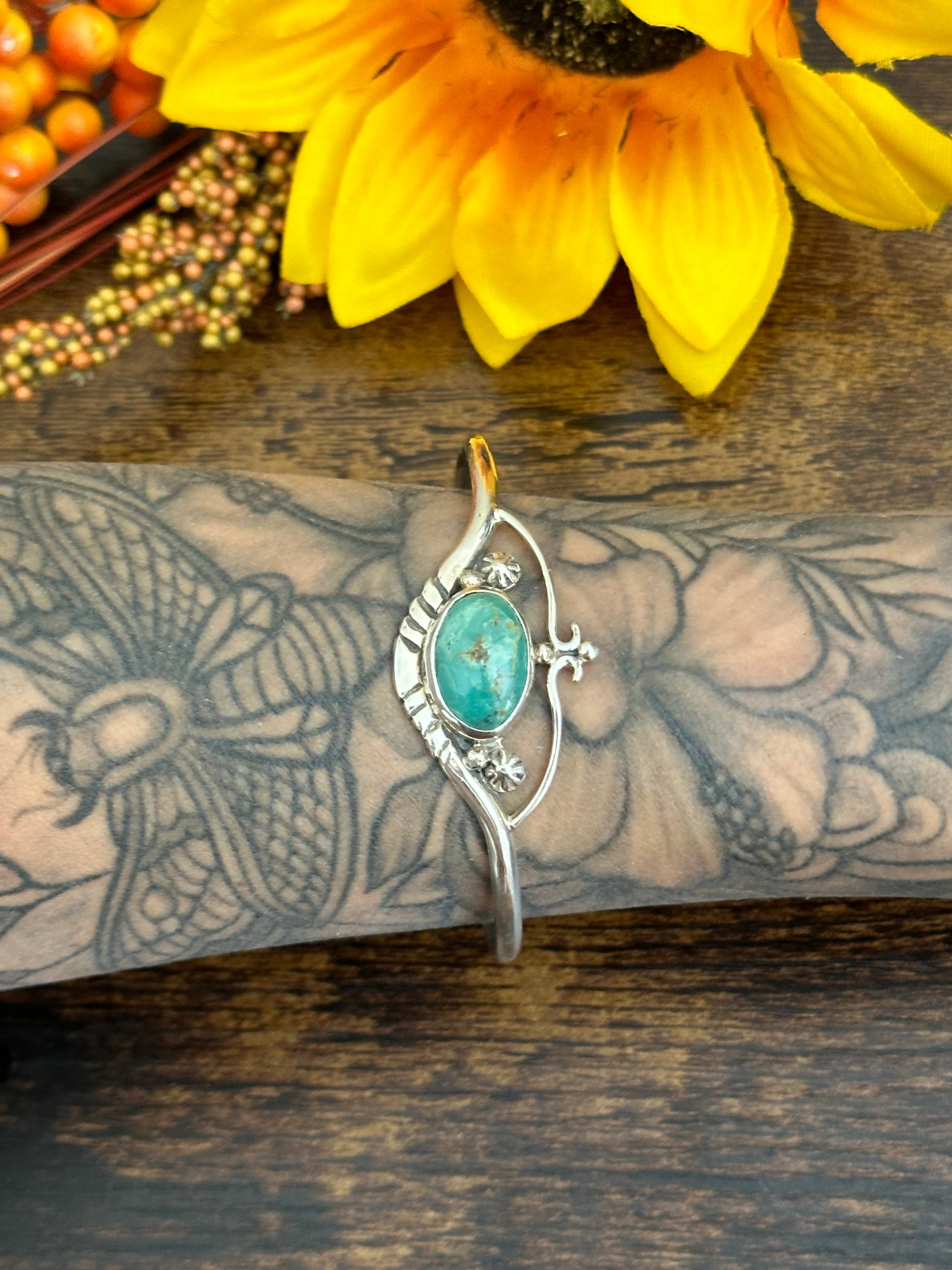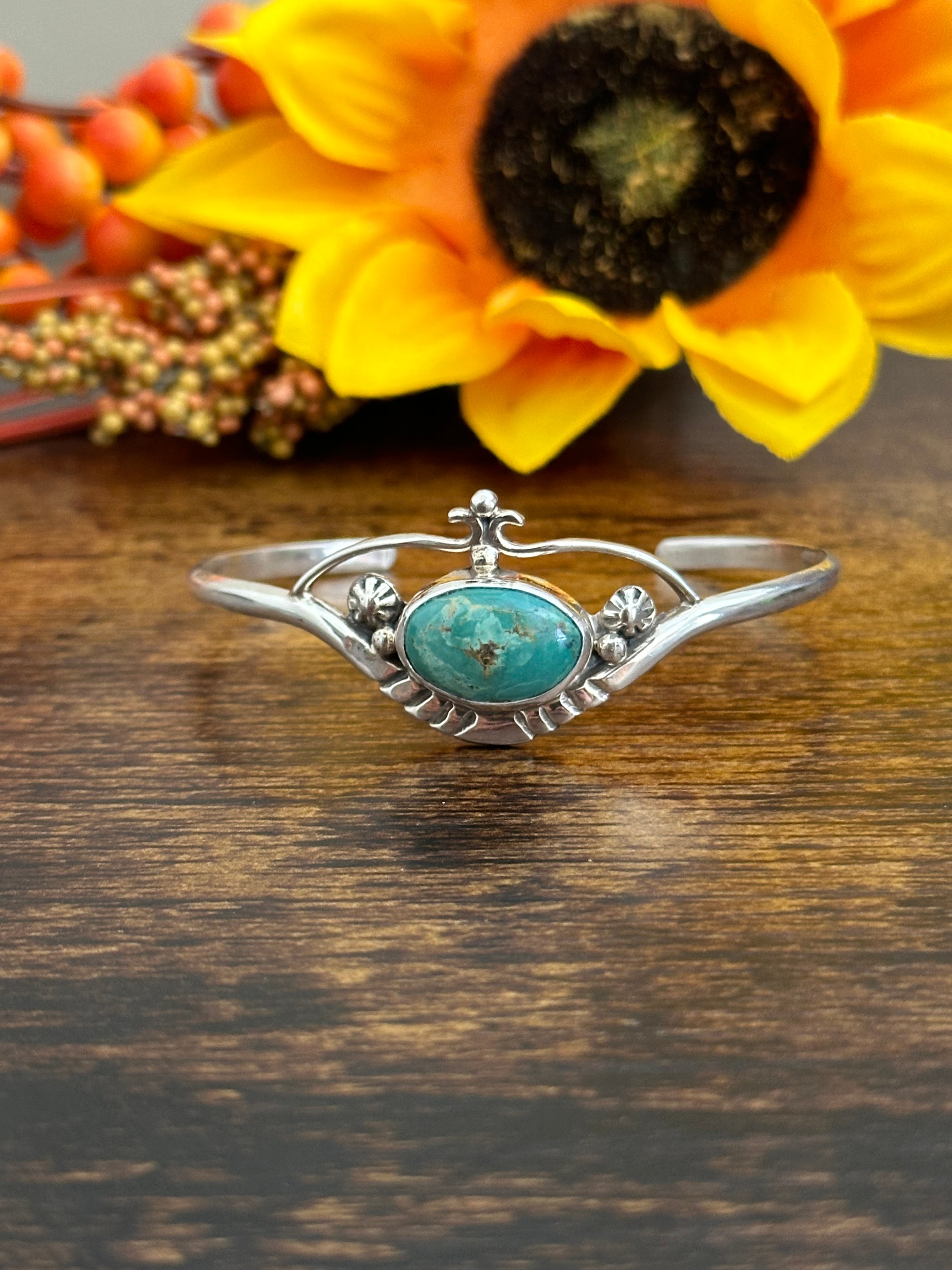Navajo Made Kingman Turquoise & Sterling Silver Cuff Bracelet