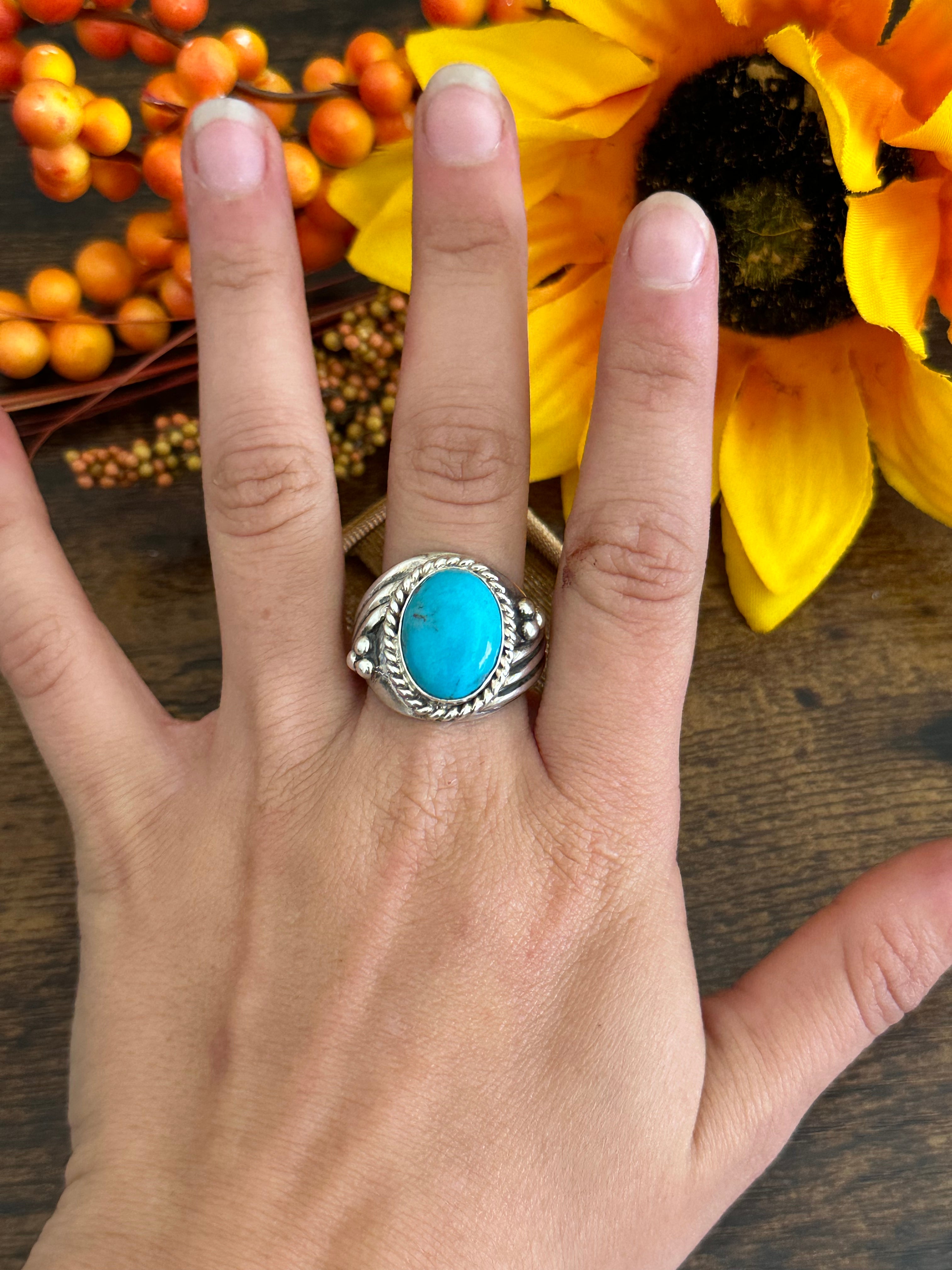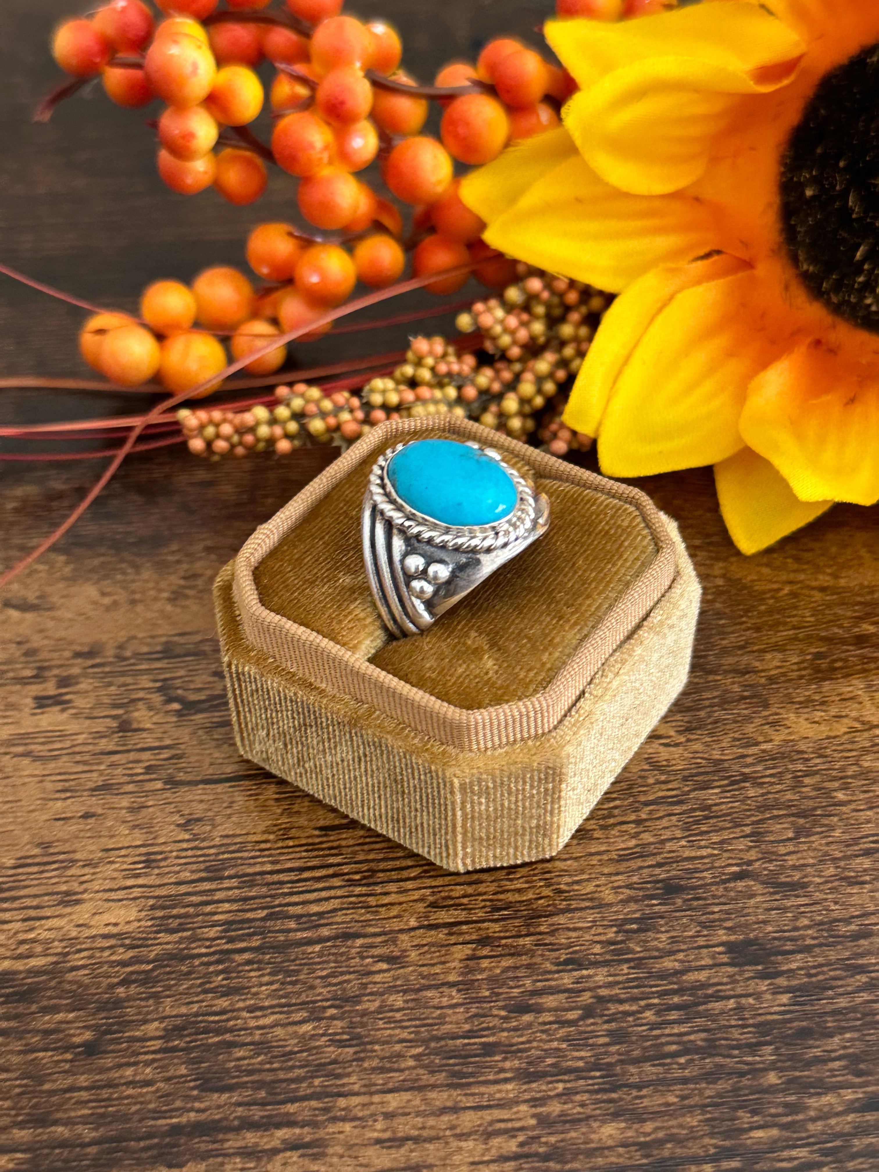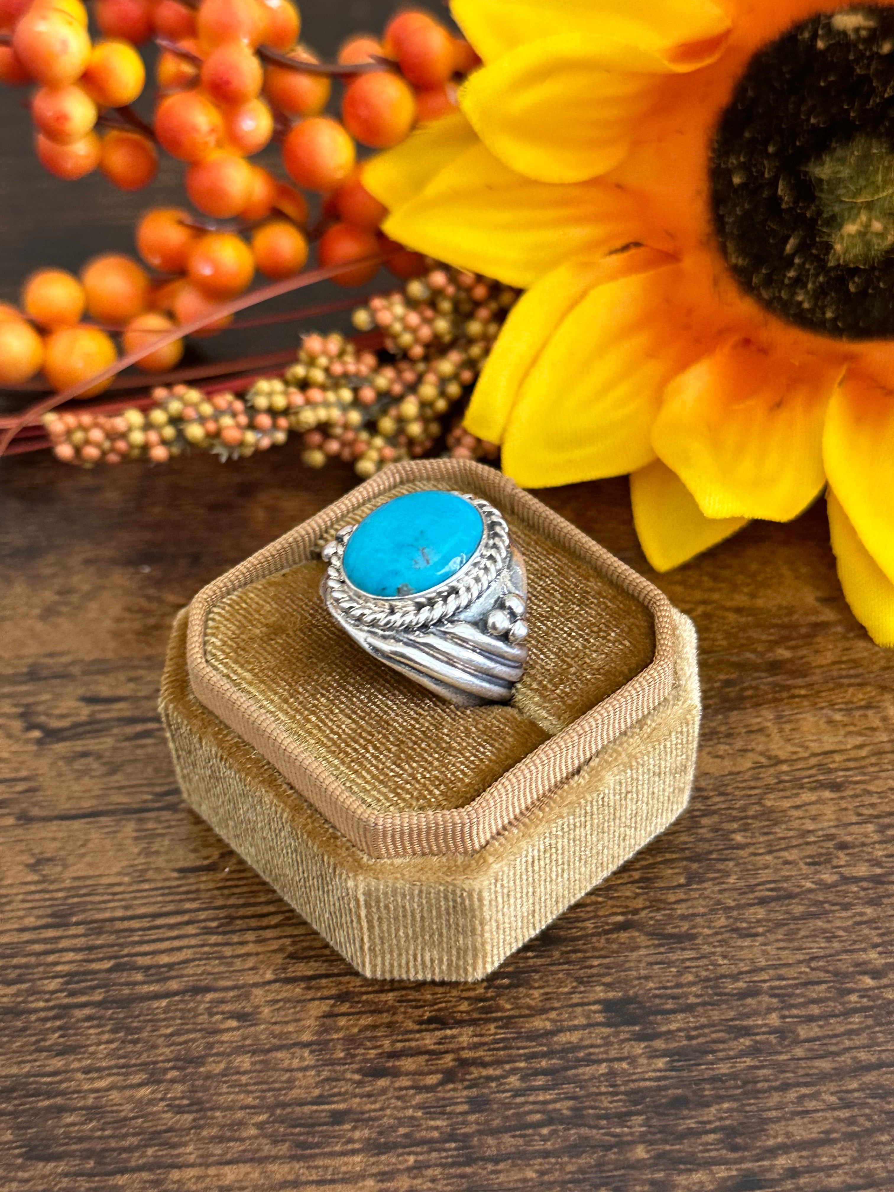 Navajo Made Kingman Turquoise & Sterling Silver Ring Size 9.5