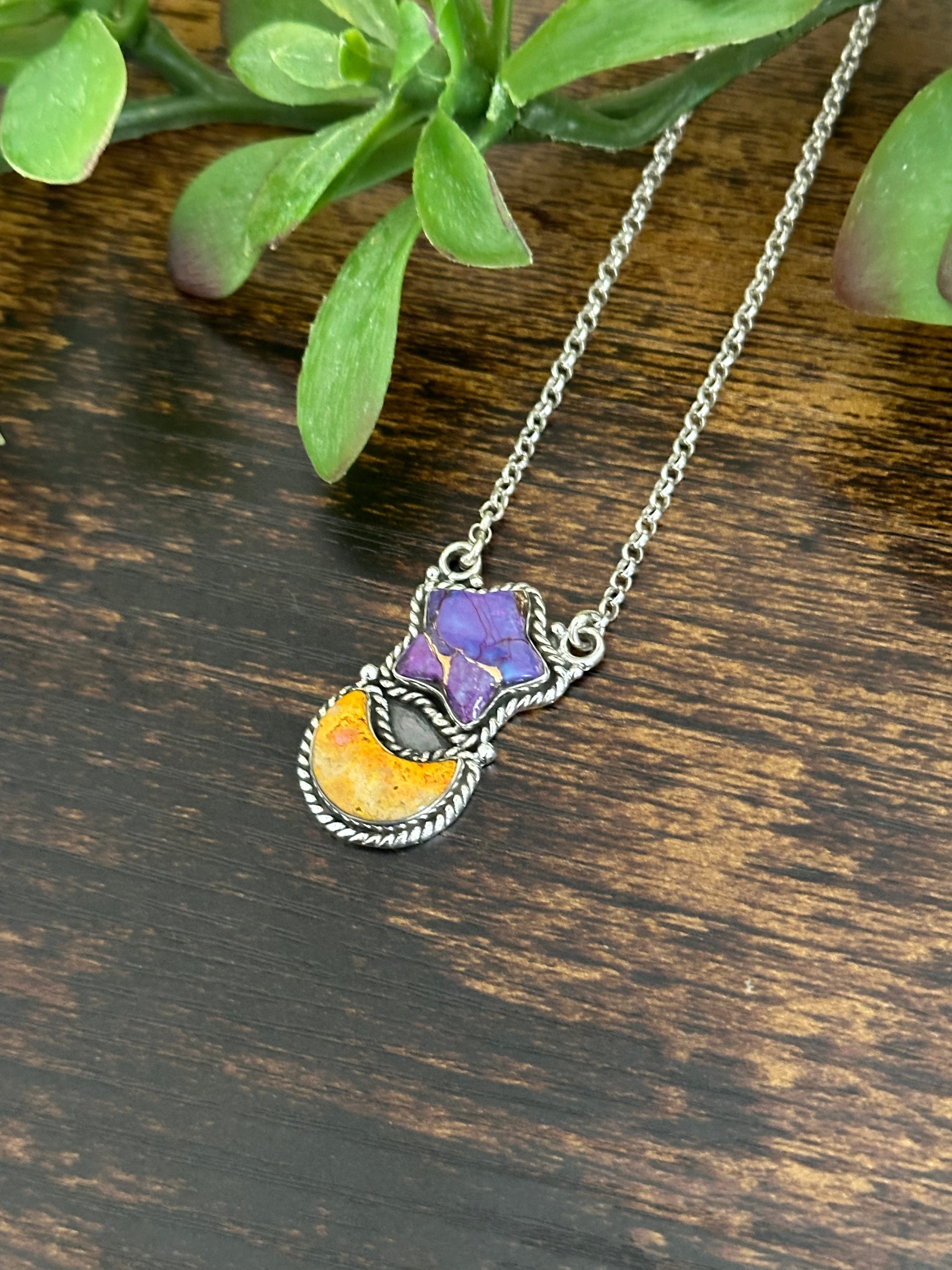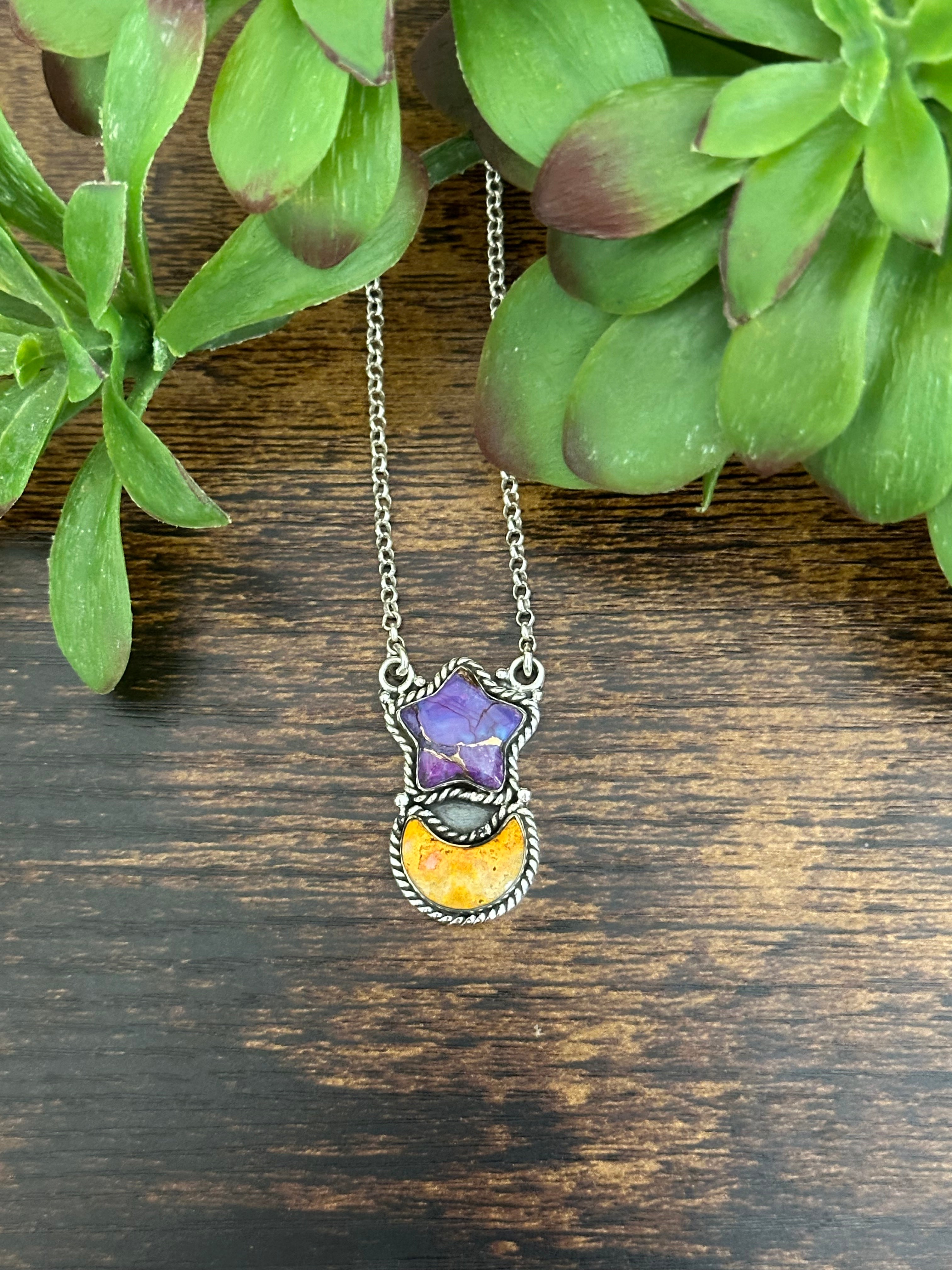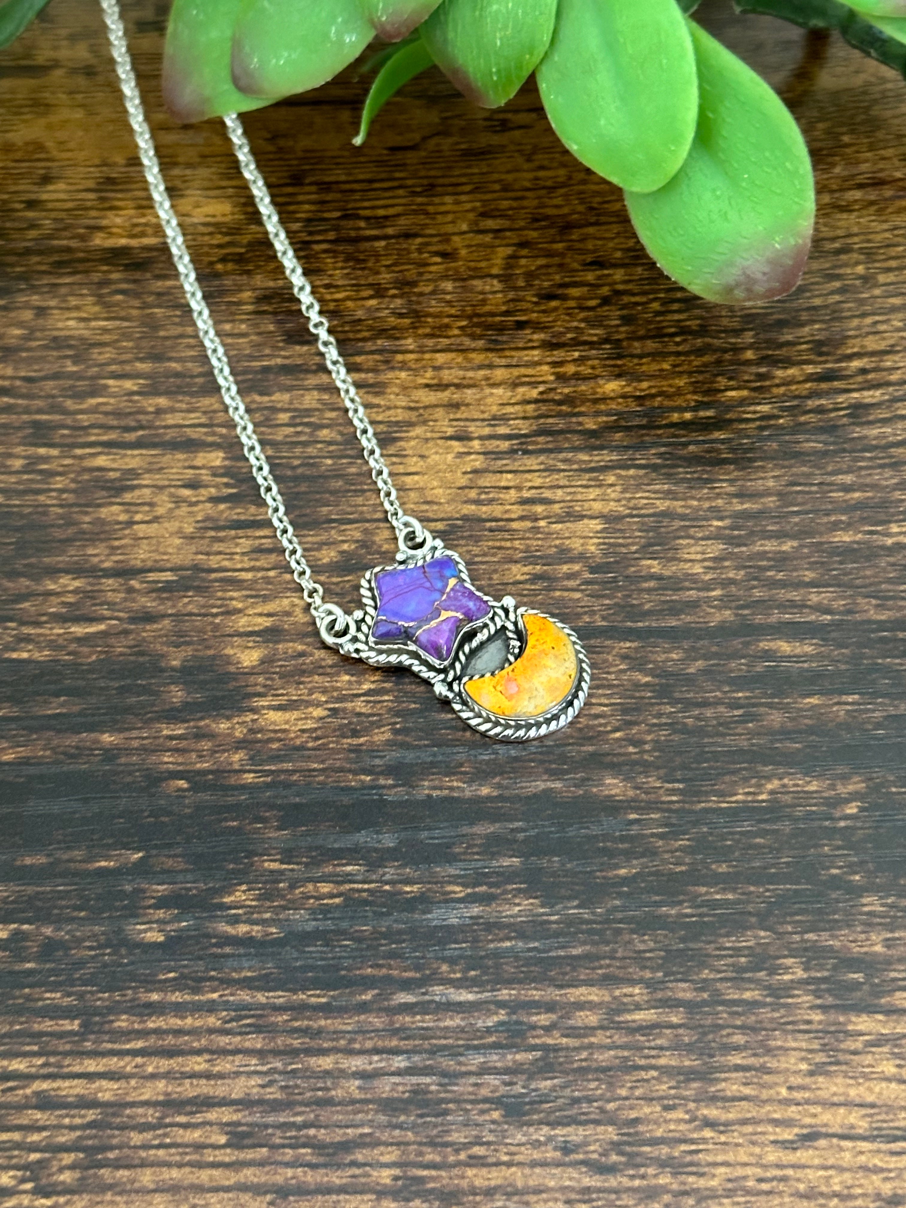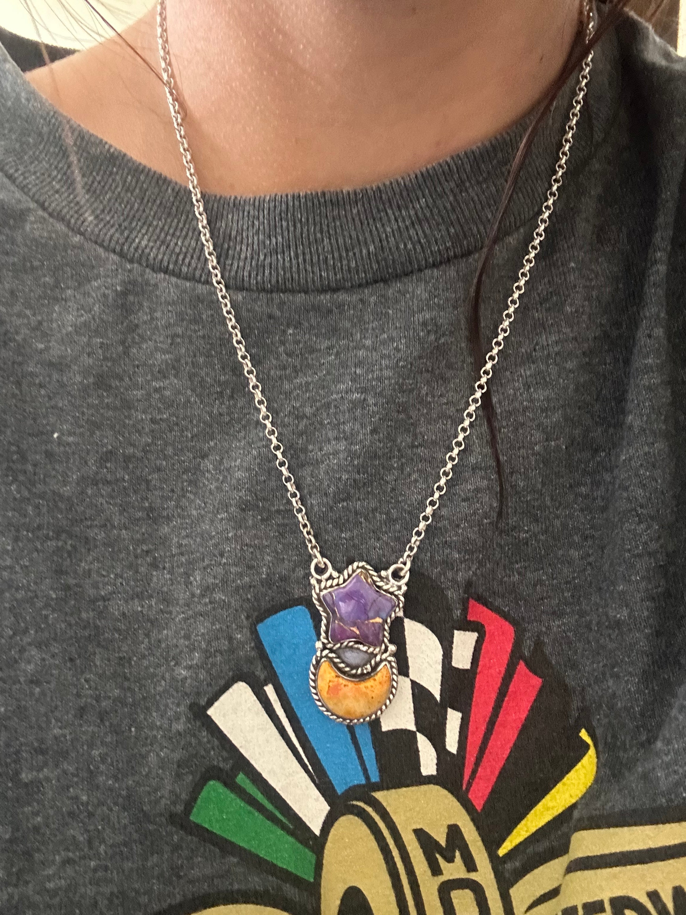 Southwest Handmade Multi Stone & Sterling Silver Moon Star Necklace