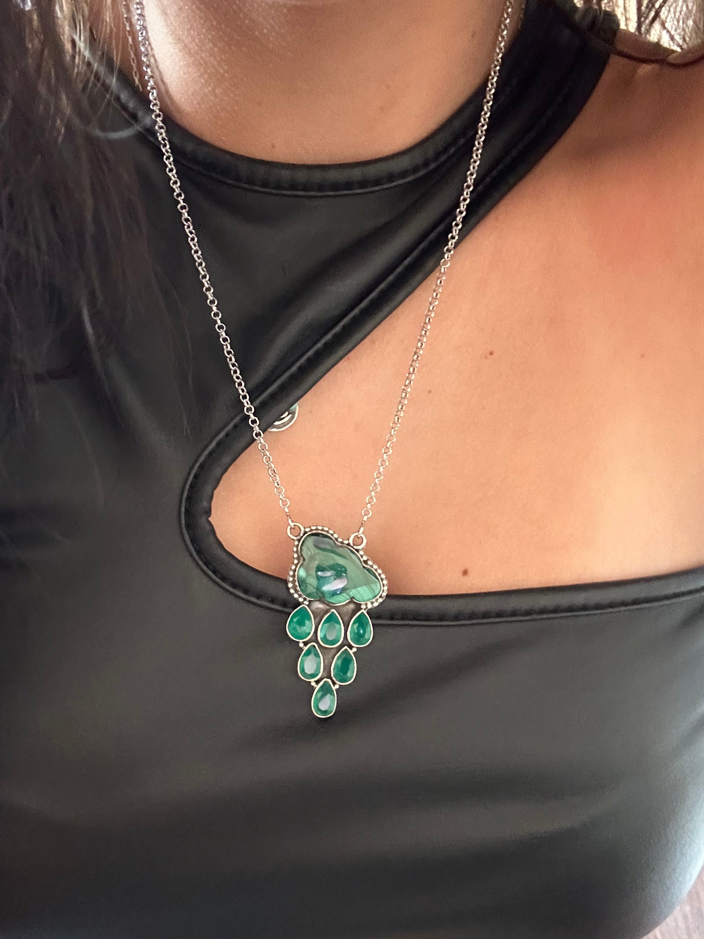 Southwest Handmade Multi Stone & Sterling Silver Rain Cloud Necklace