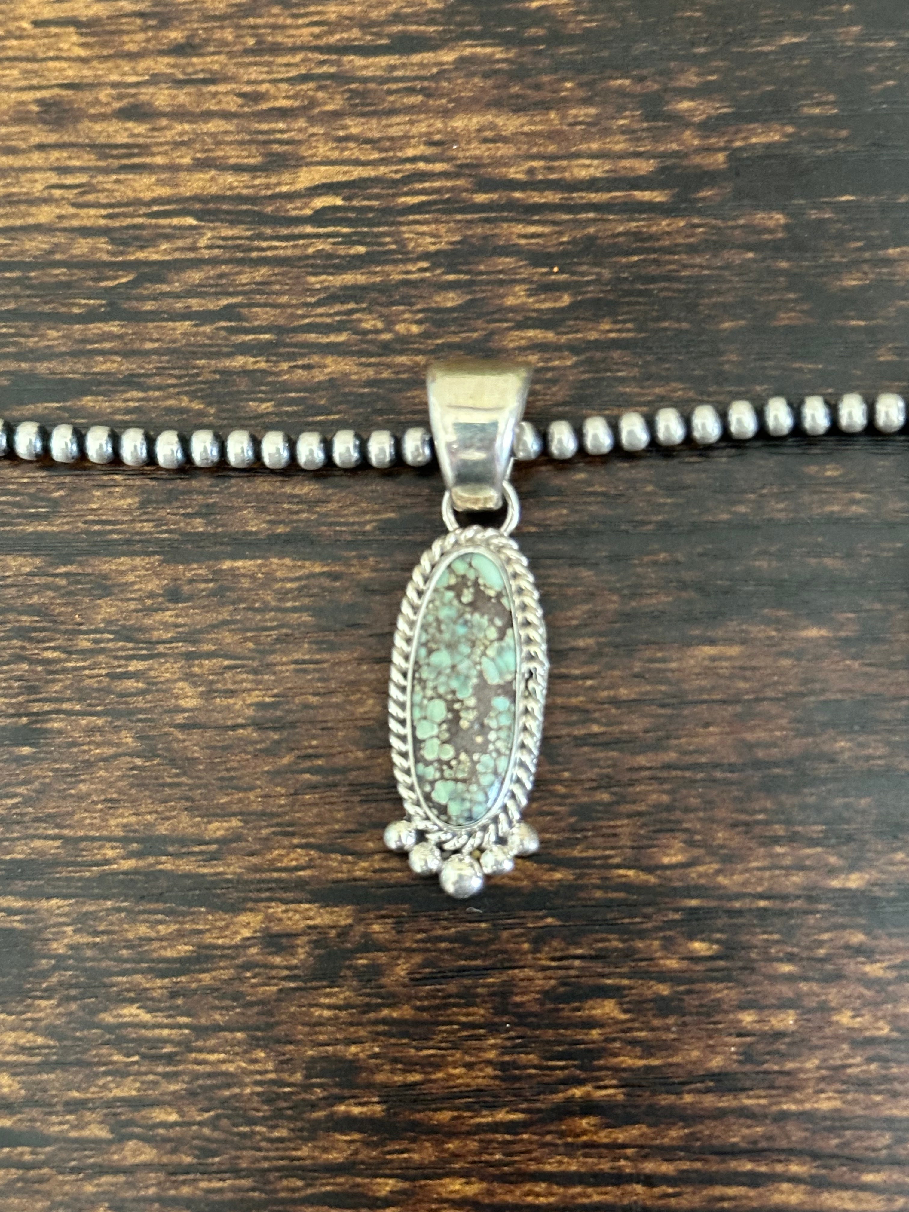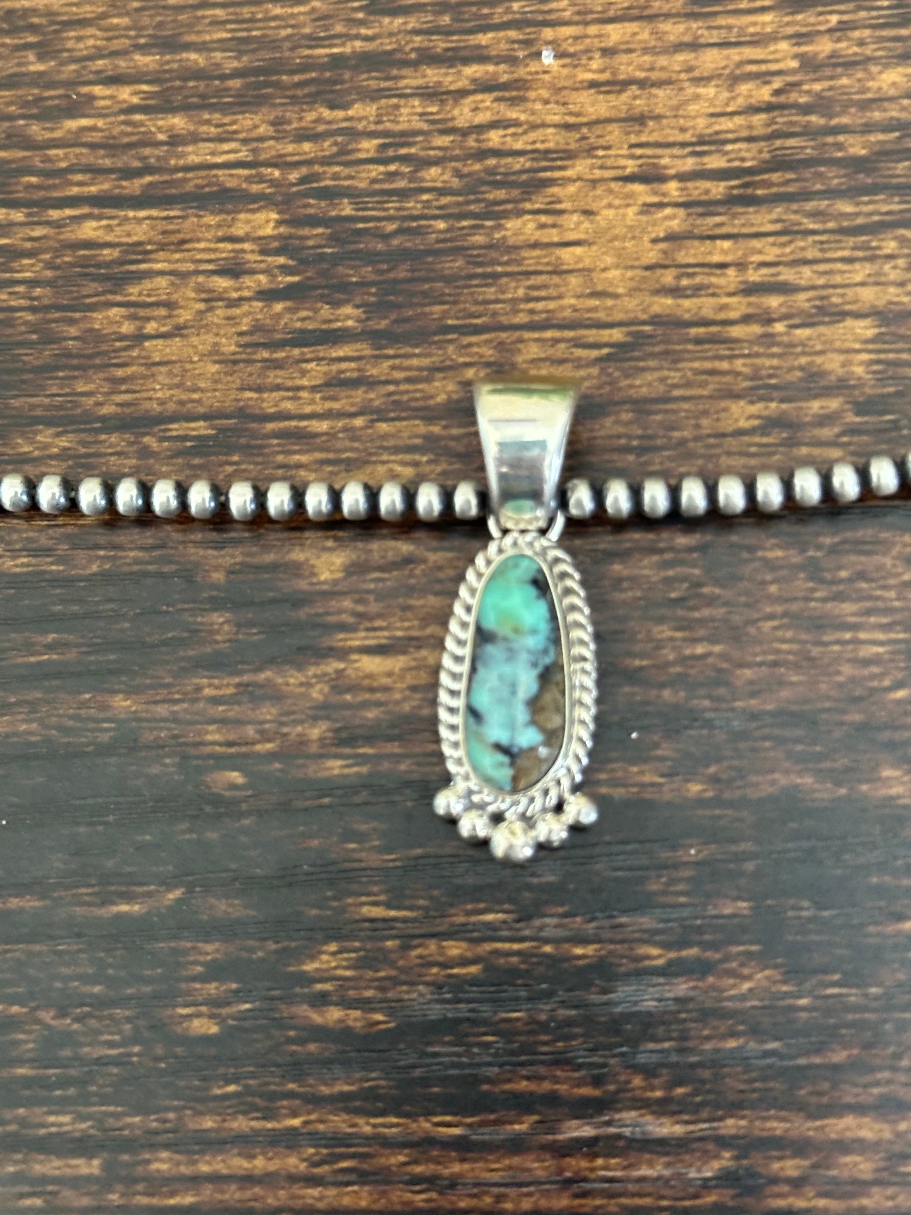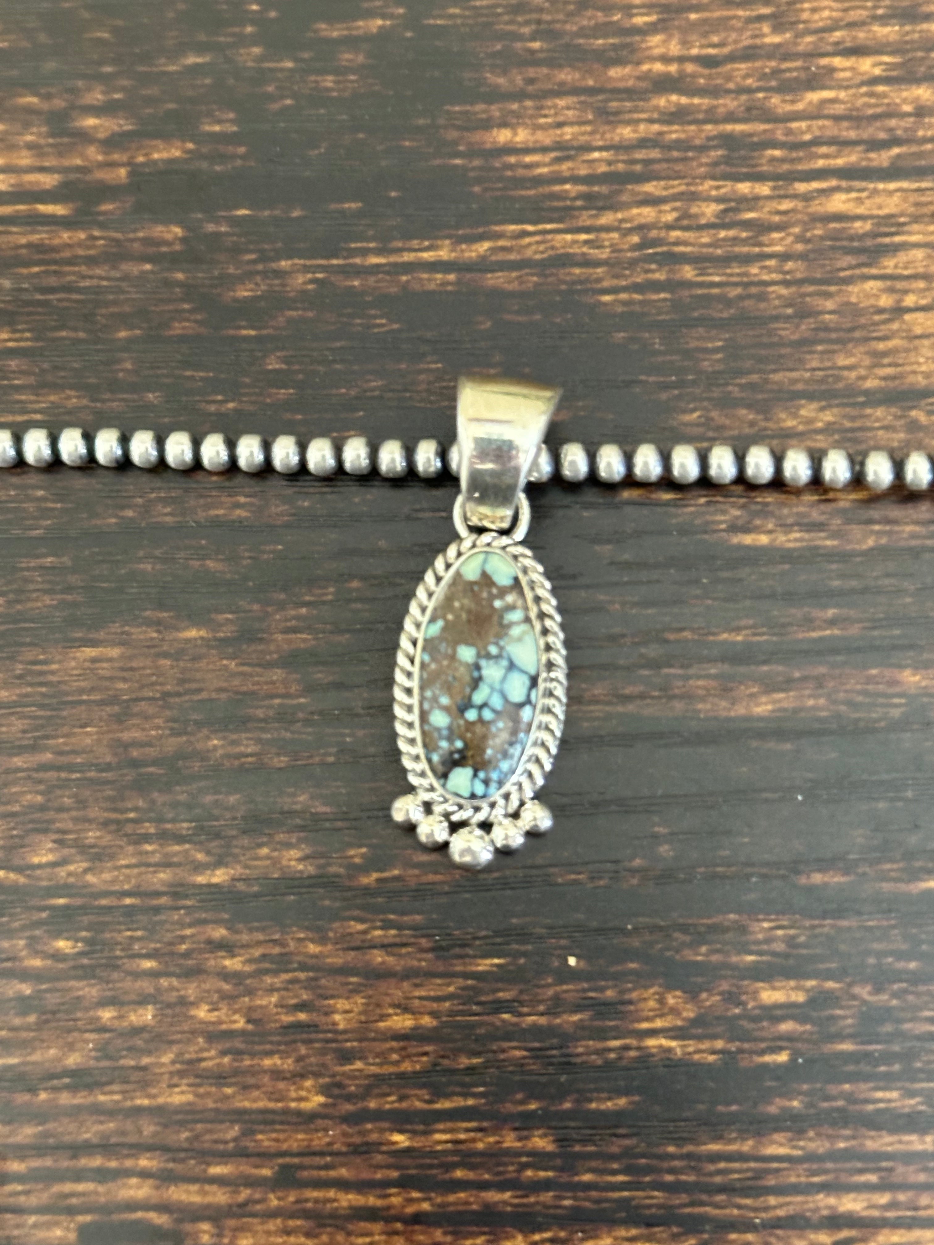 The most stunning pendant, very well made. Navajo Made New Lander Varicsite & Sterling Silver Pendant. It measures 1 5/8 inches long and just under 1/2 of an inch wide. Pendant Only. Signed by the artist and stamped sterling silver.