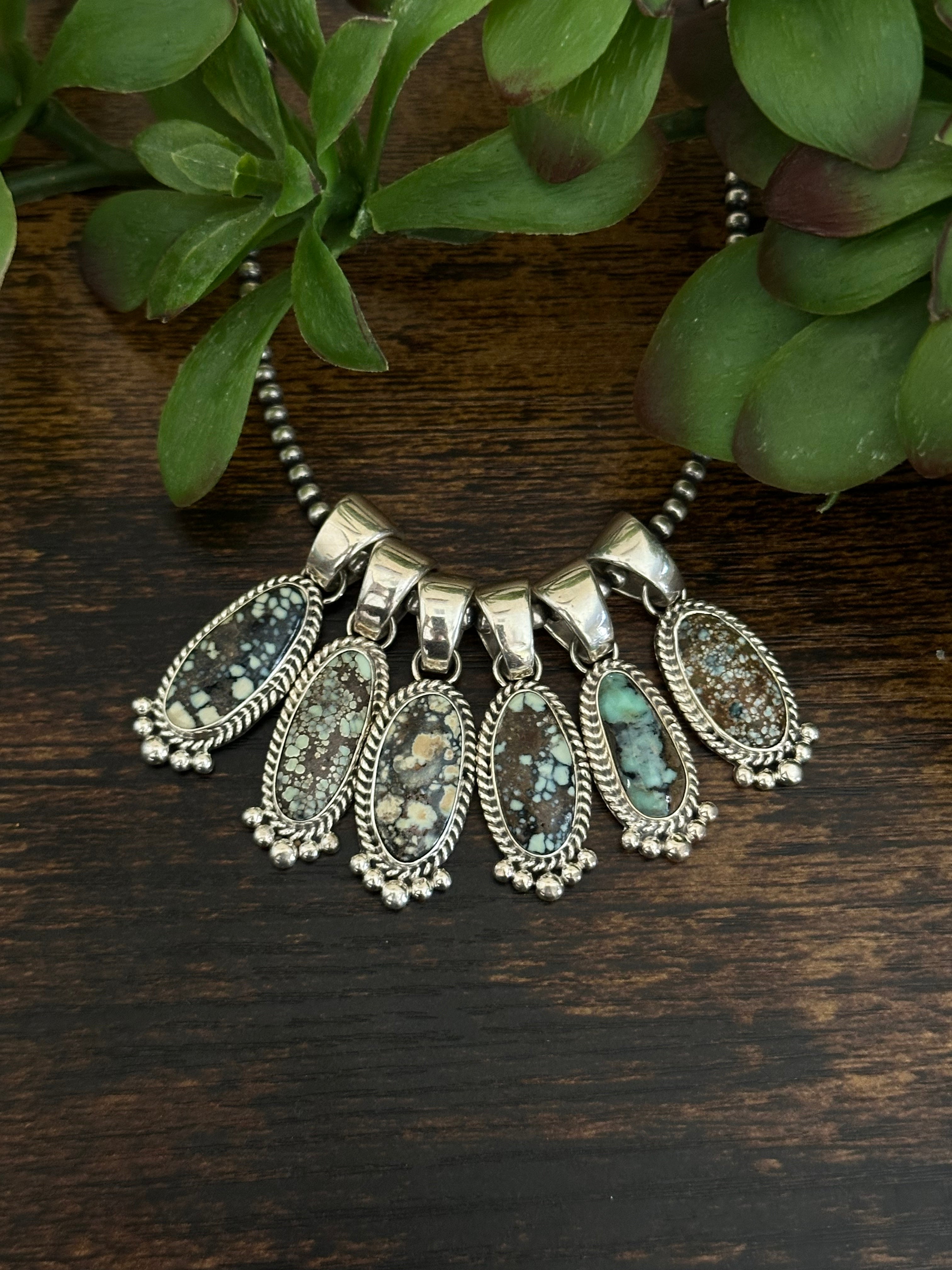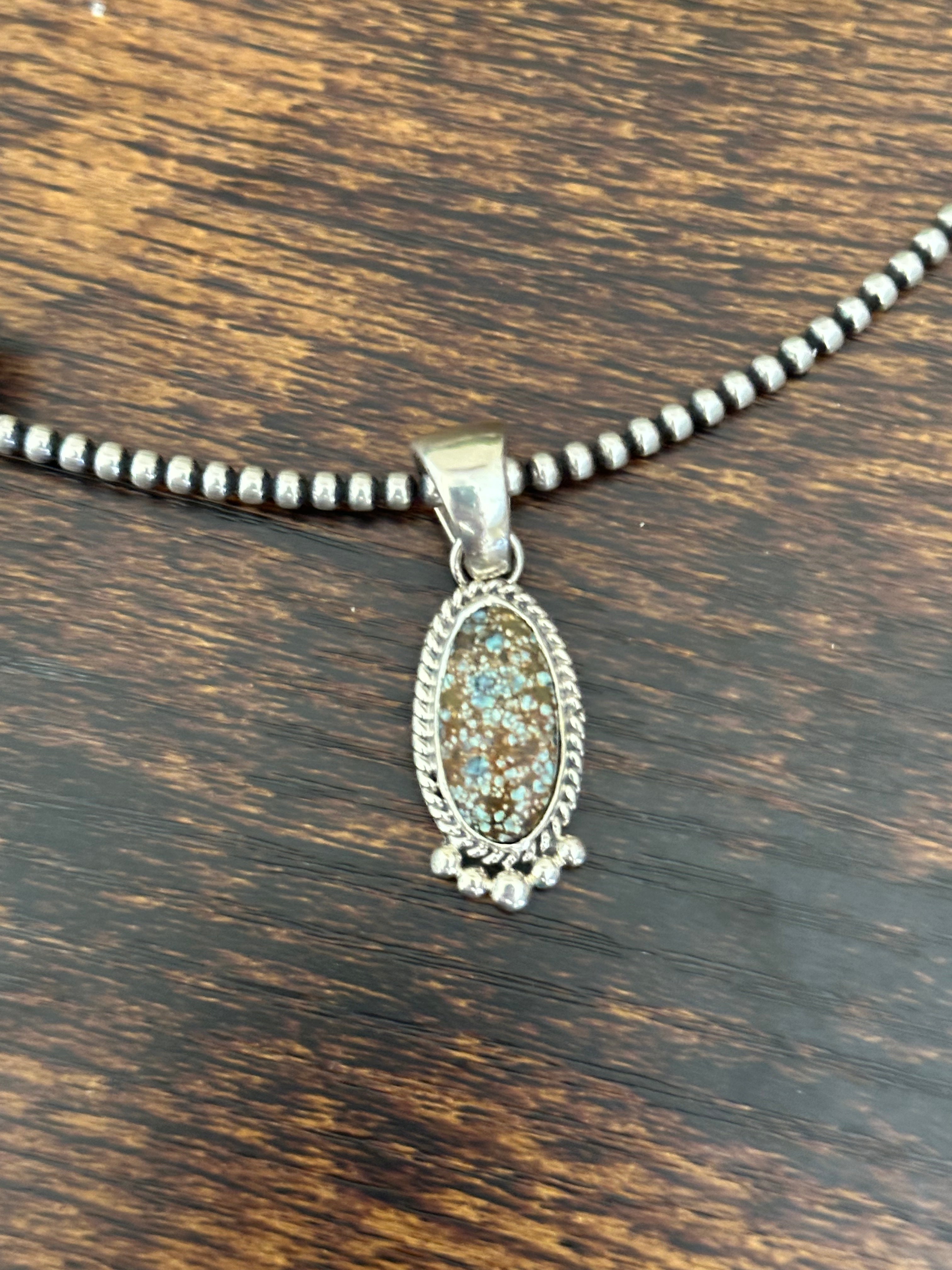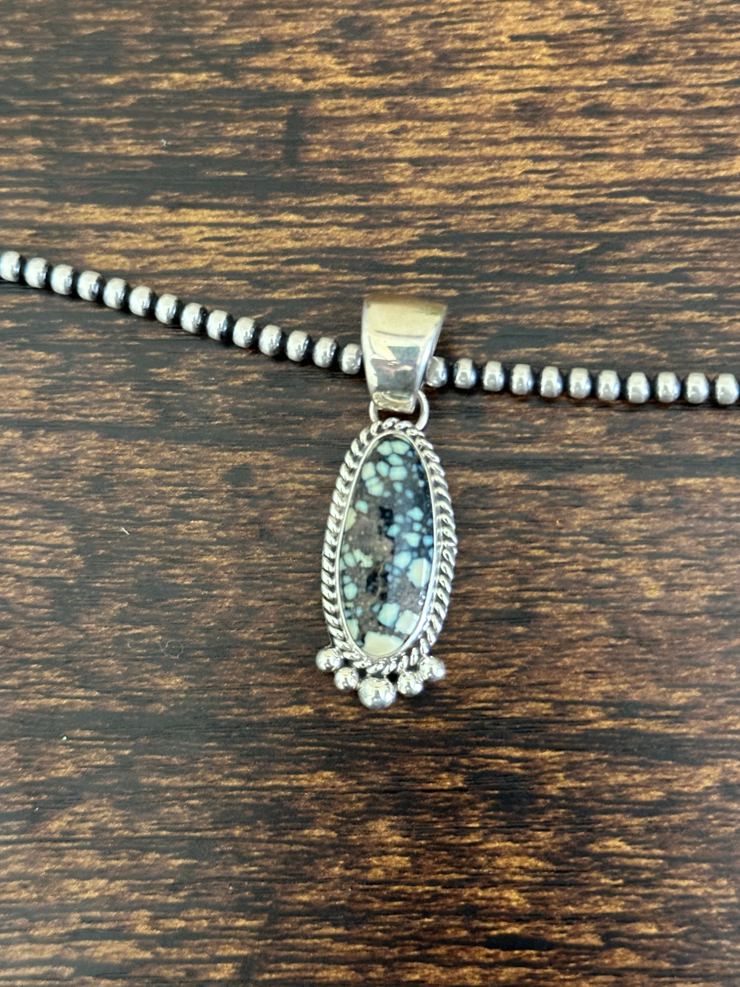 The most stunning pendant, very well made. Navajo Made New Lander Varicsite & Sterling Silver Pendant. It measures 1 5/8 inches long and just under 1/2 of an inch wide. Pendant Only. Signed by the artist and stamped sterling silver.