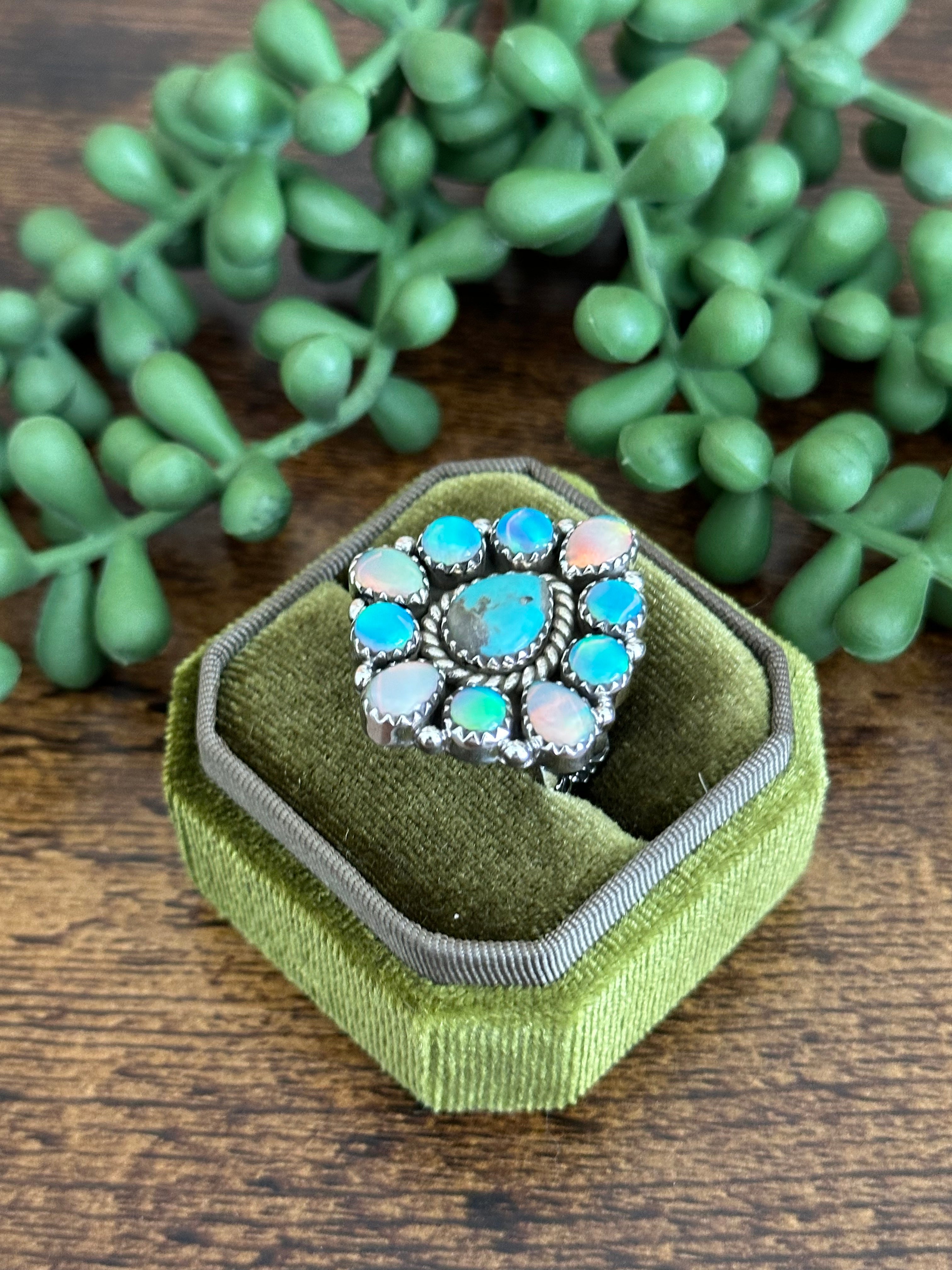 Southwest Handmade Multi Stone & Sterling Silver Adjustable Cluster Ring