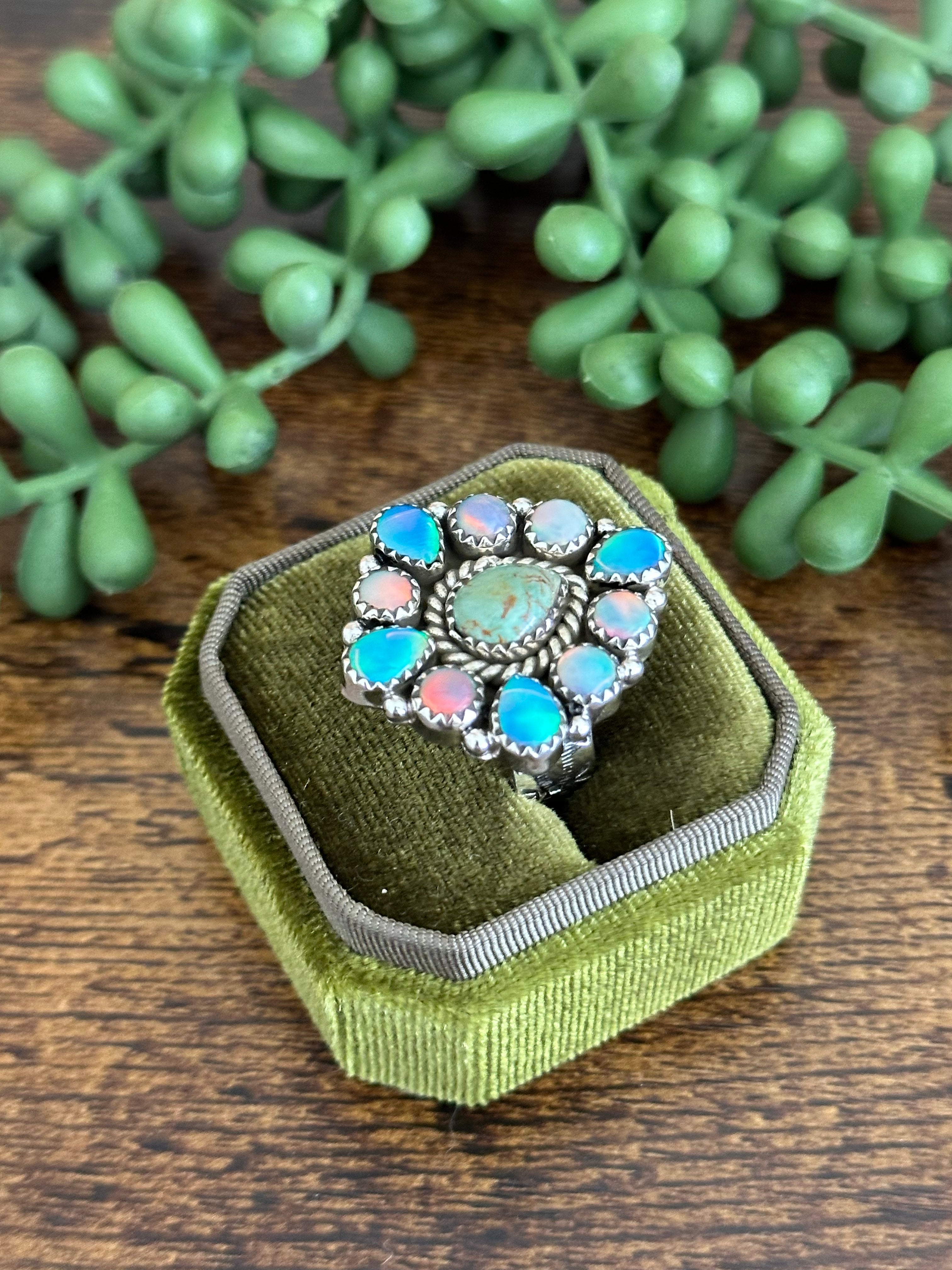 Southwest Handmade Multi Stone & Sterling Silver Adjustable Cluster Ring