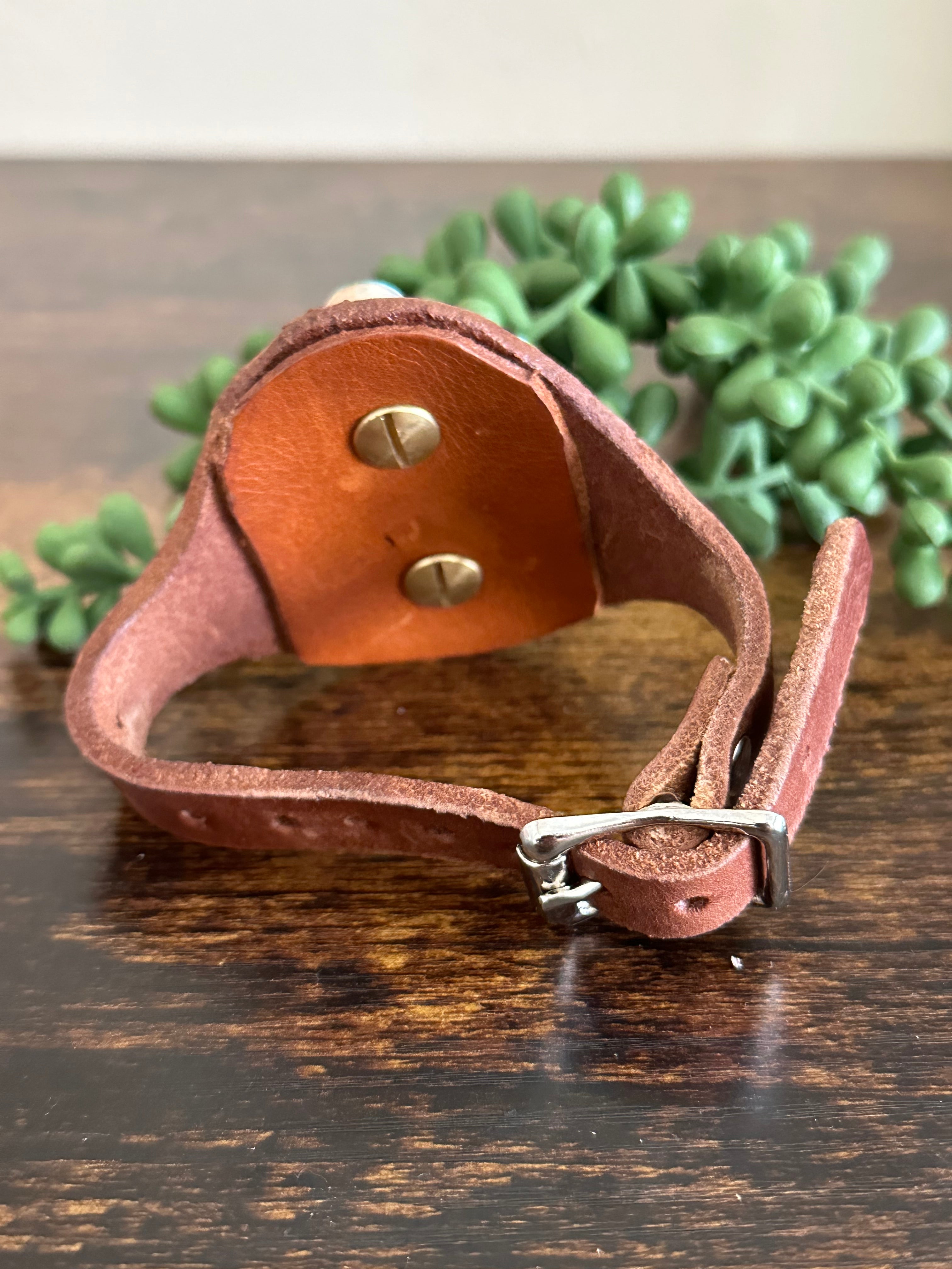 Navajo Made Sonoran Gold Turquoise & Sterling Silver Leather Bracelet