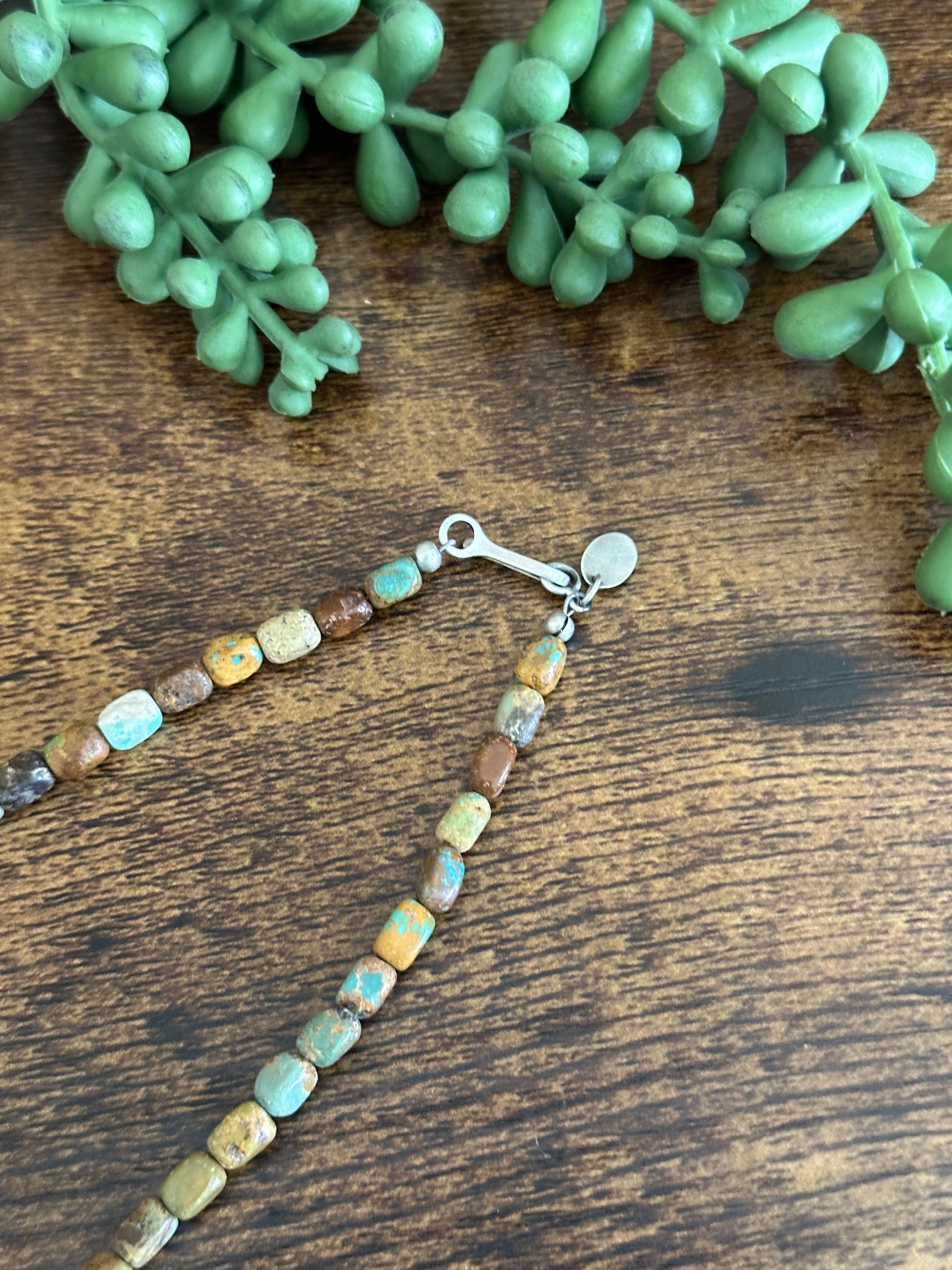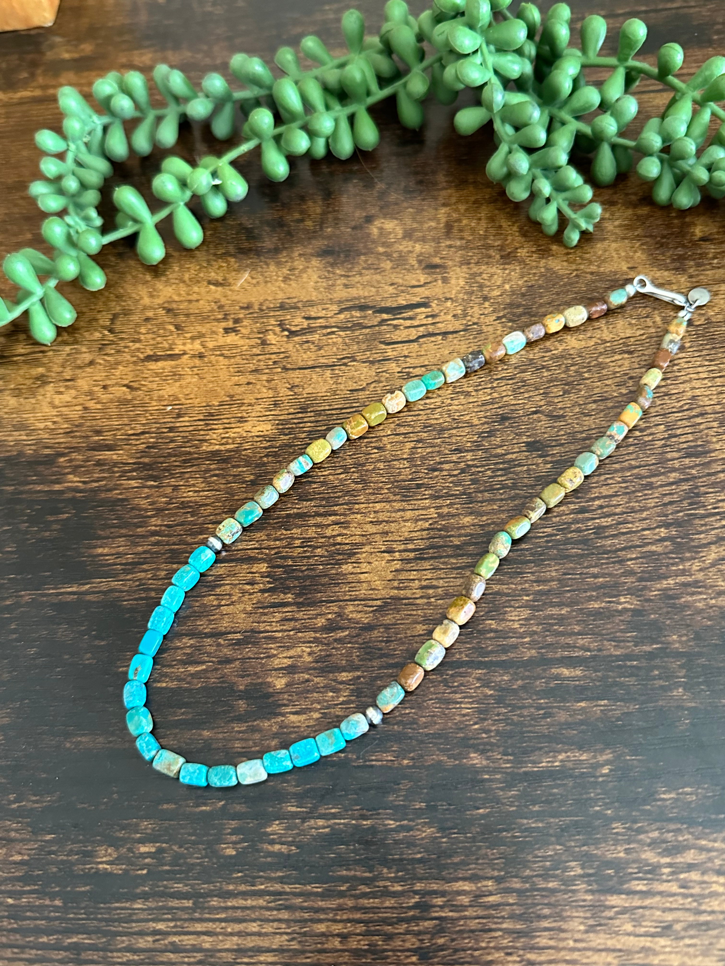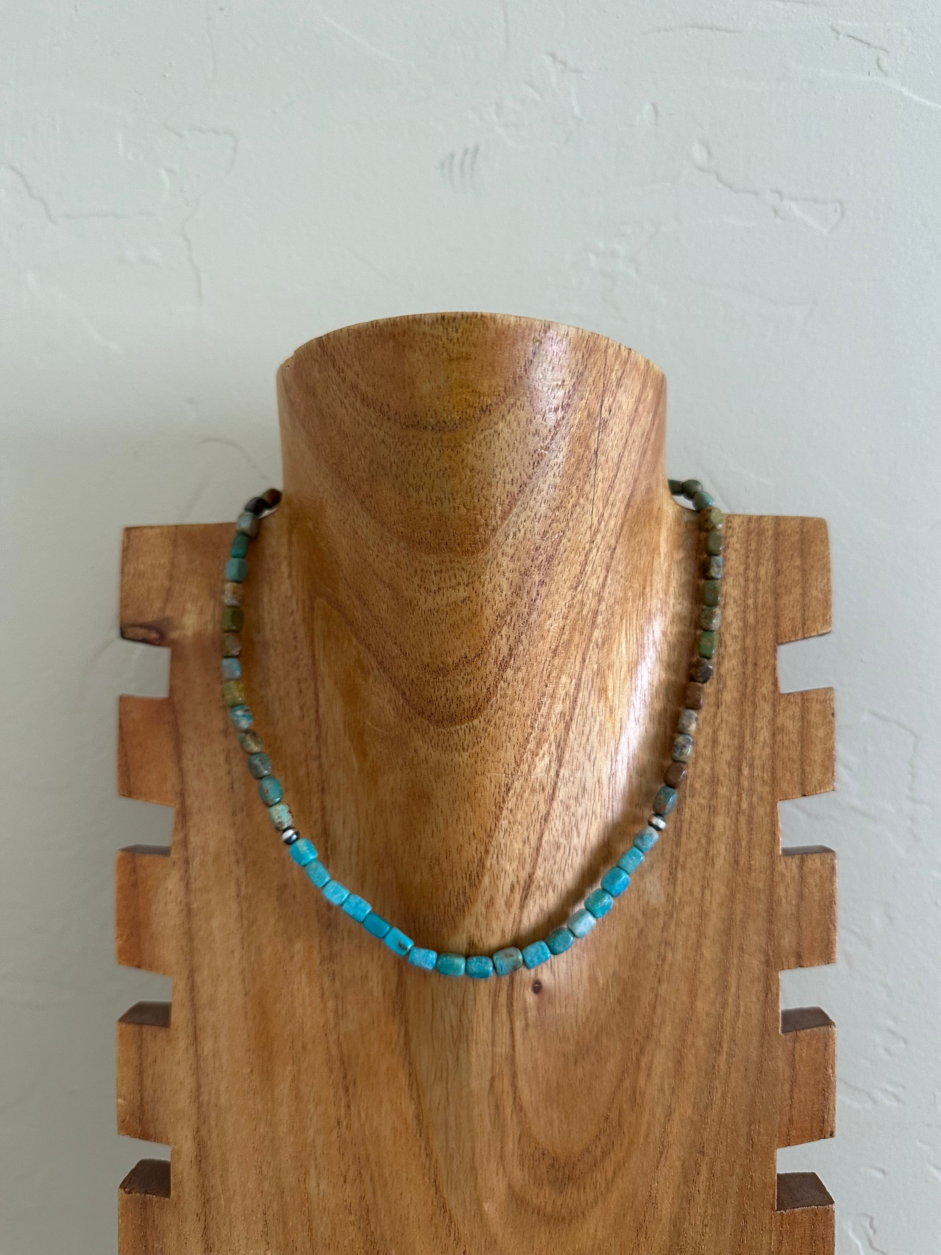 Navajo Strung Royston Turquoise & Sterling Silver Pearls Beaded Necklace