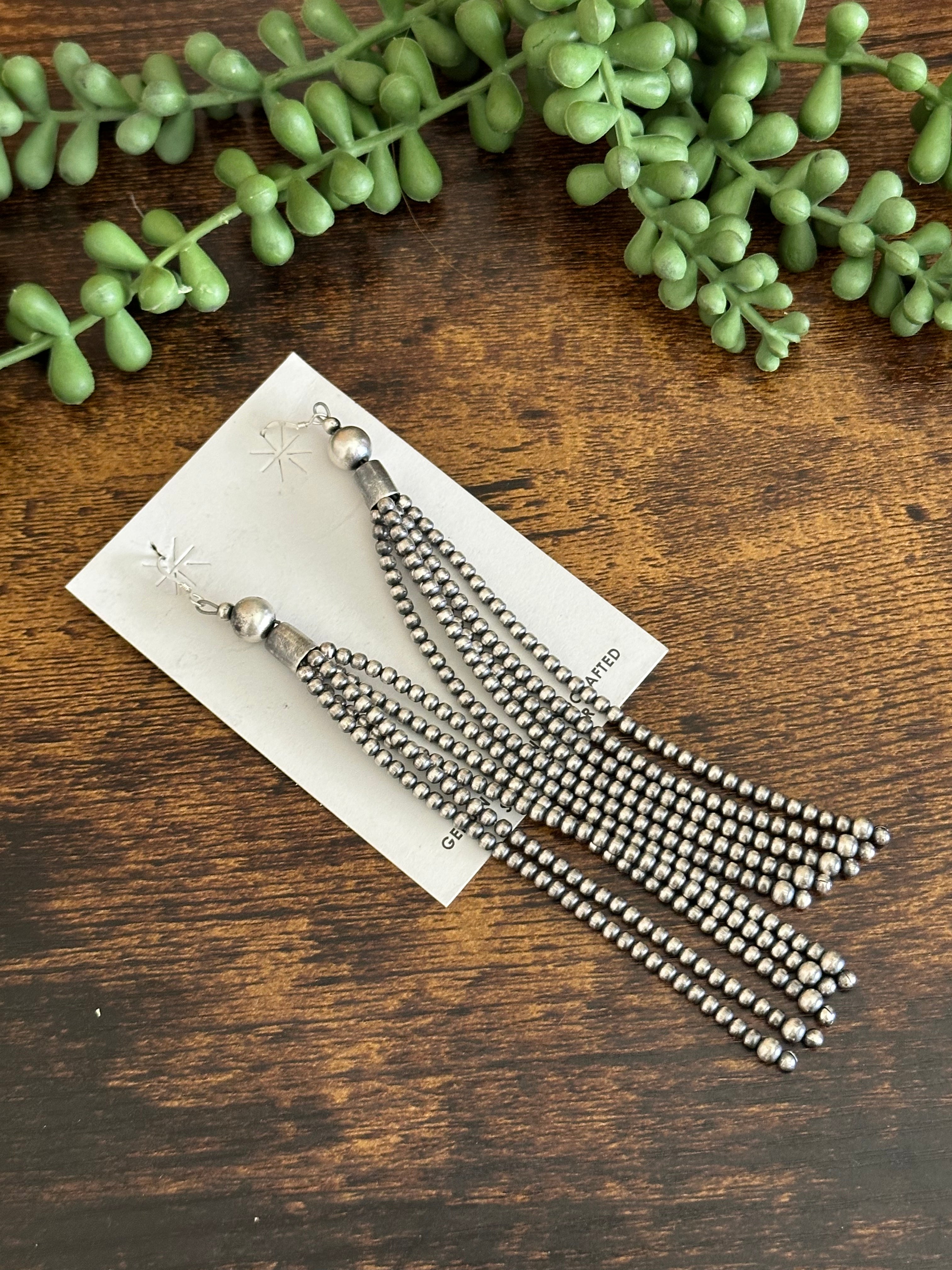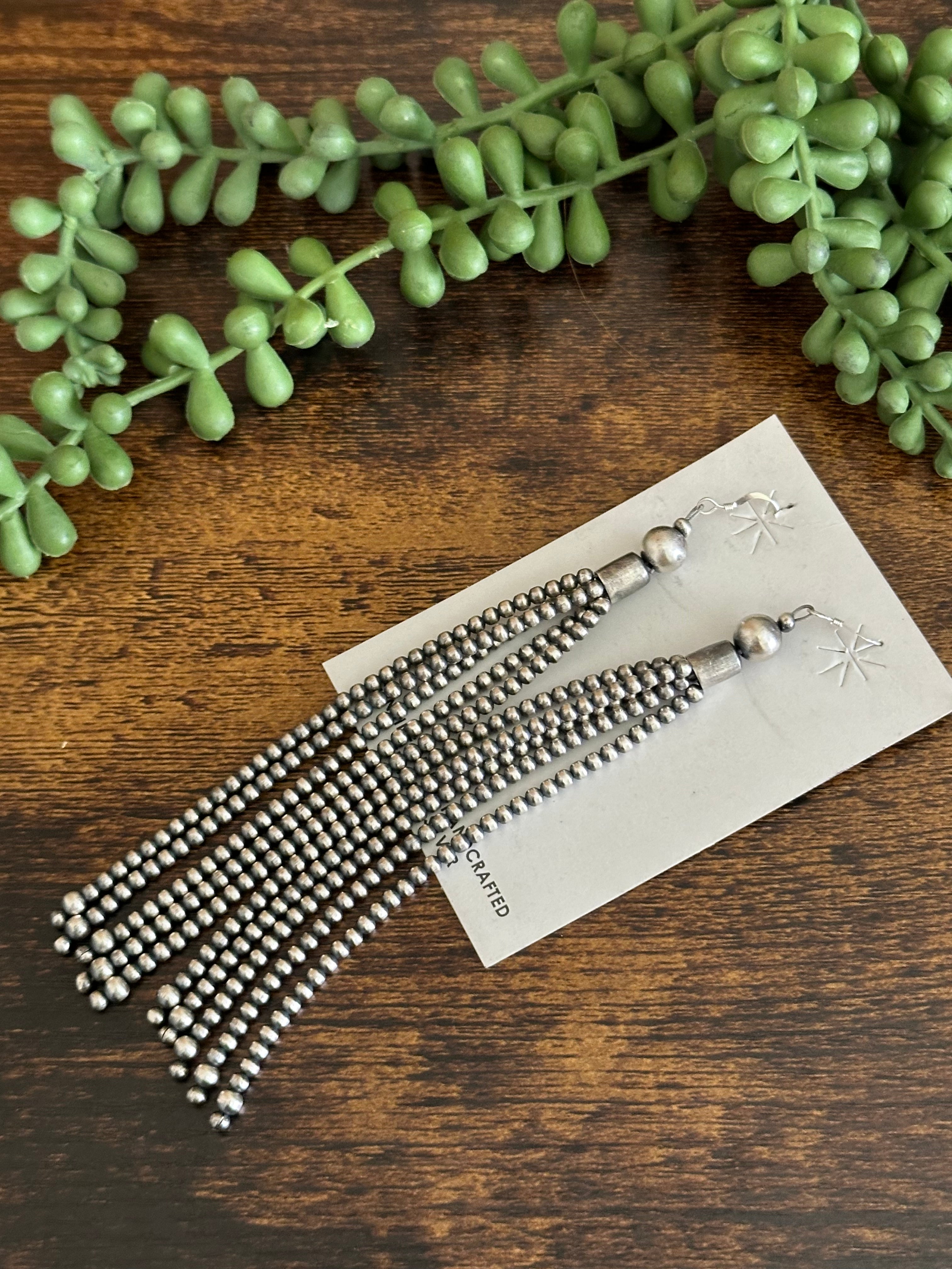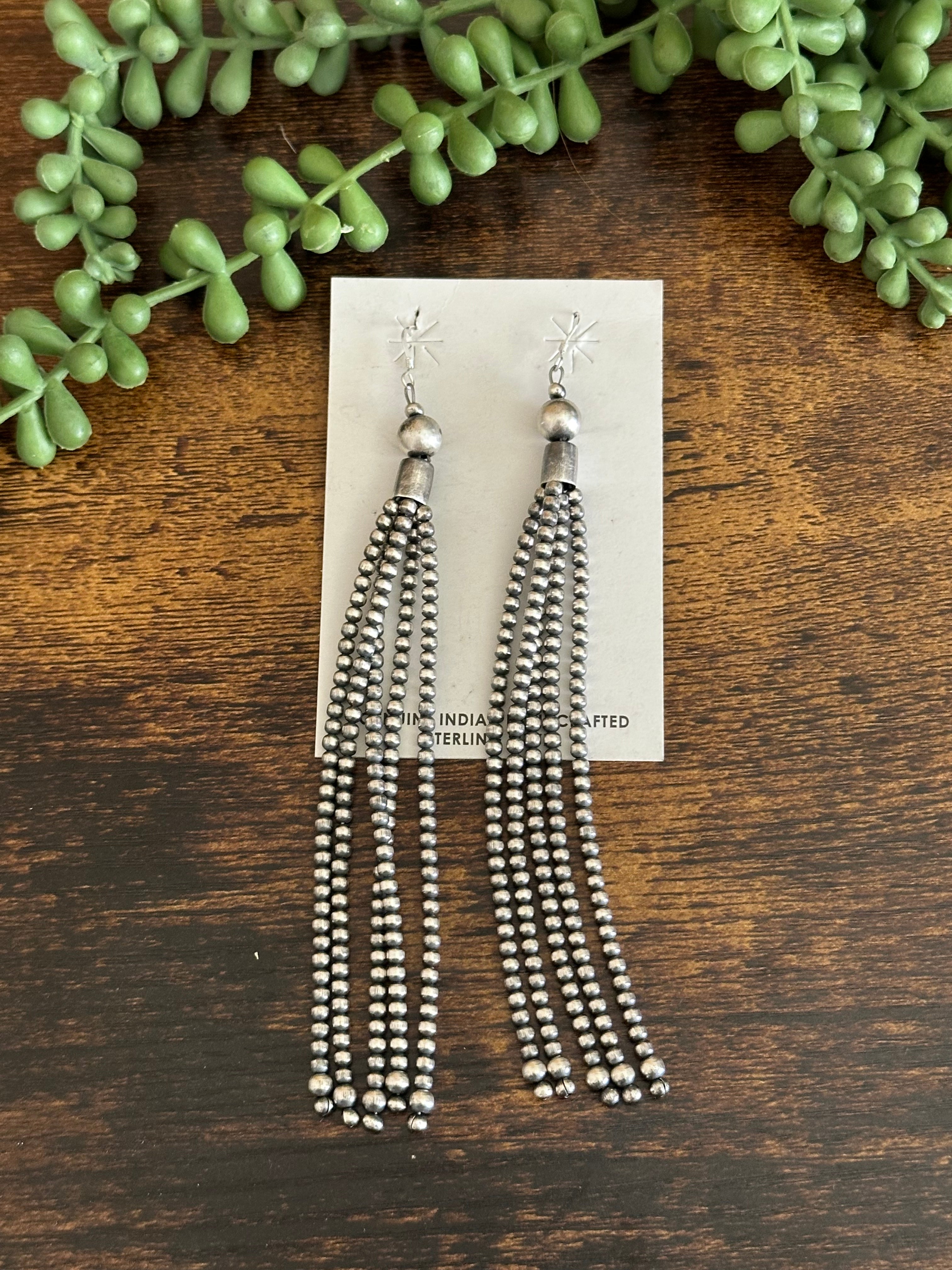 Navajo Strung Sterling Silver Graduated Pearls Dangle Earrings