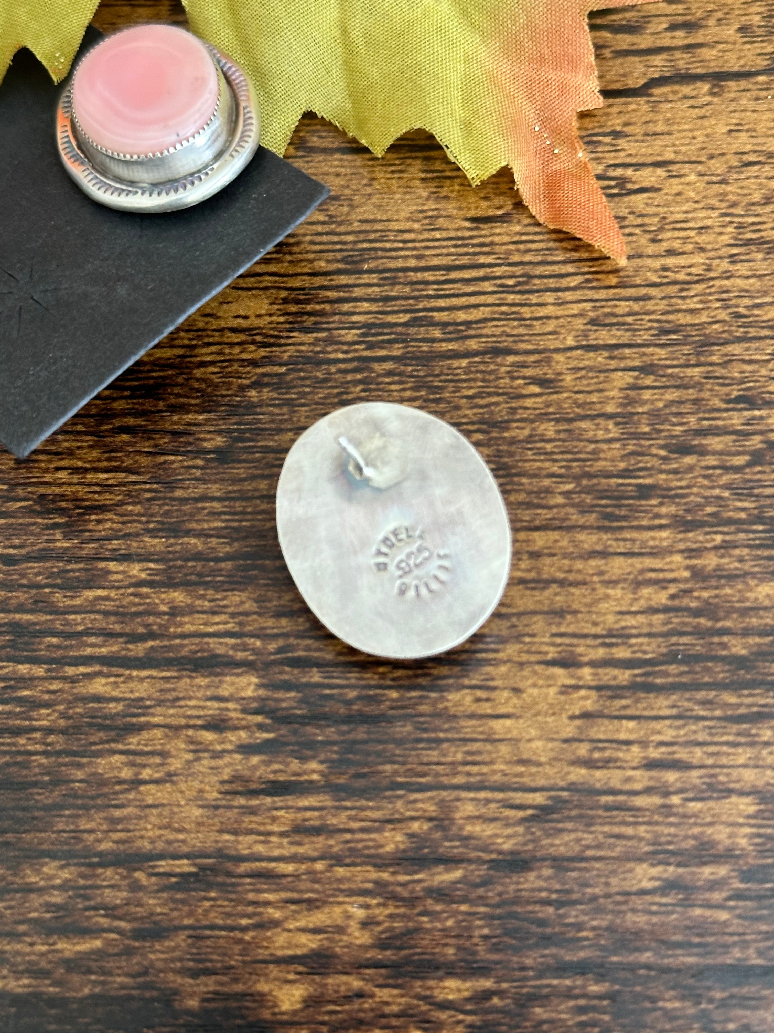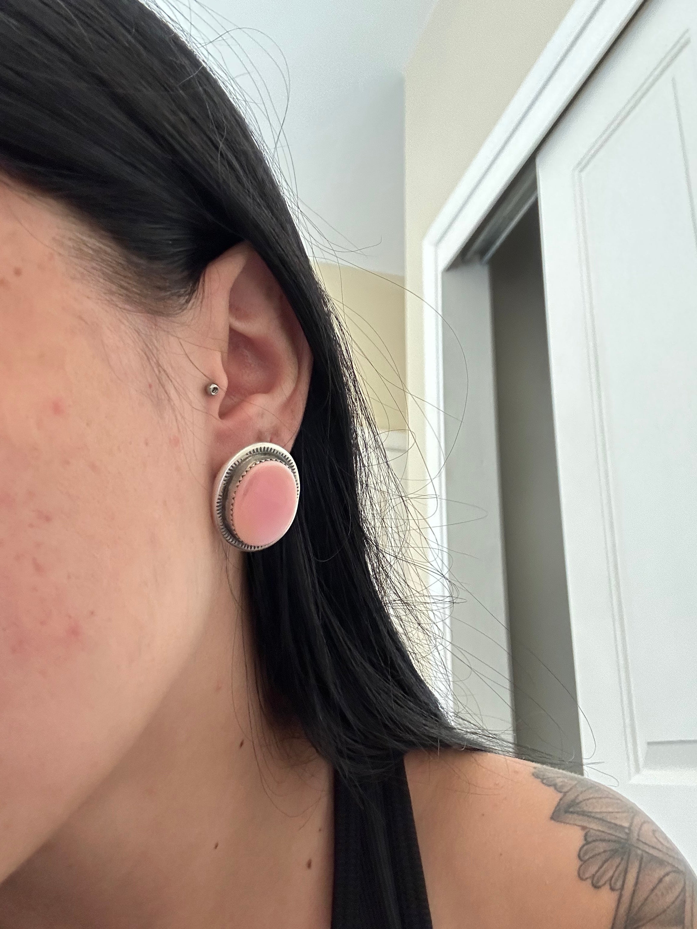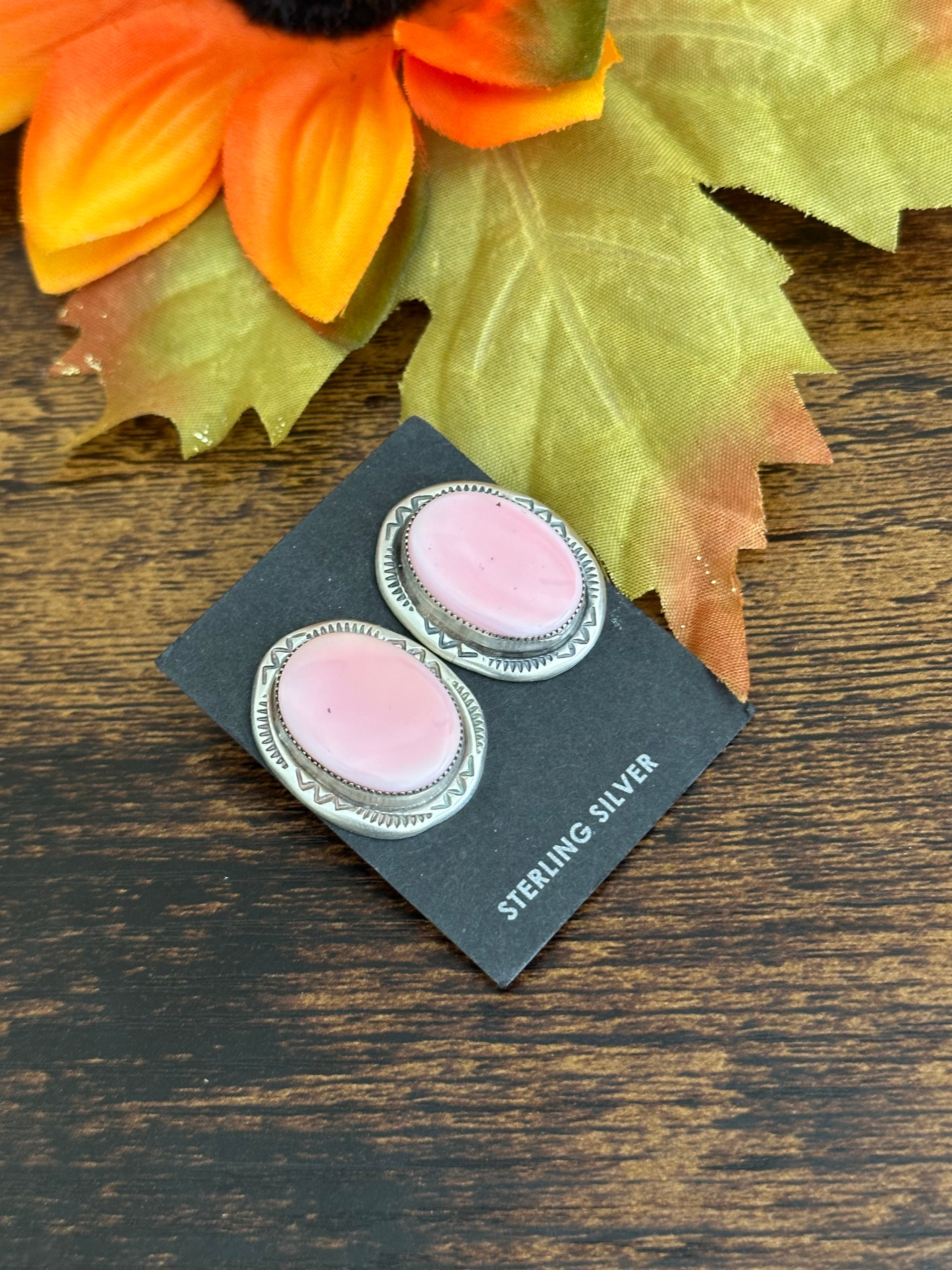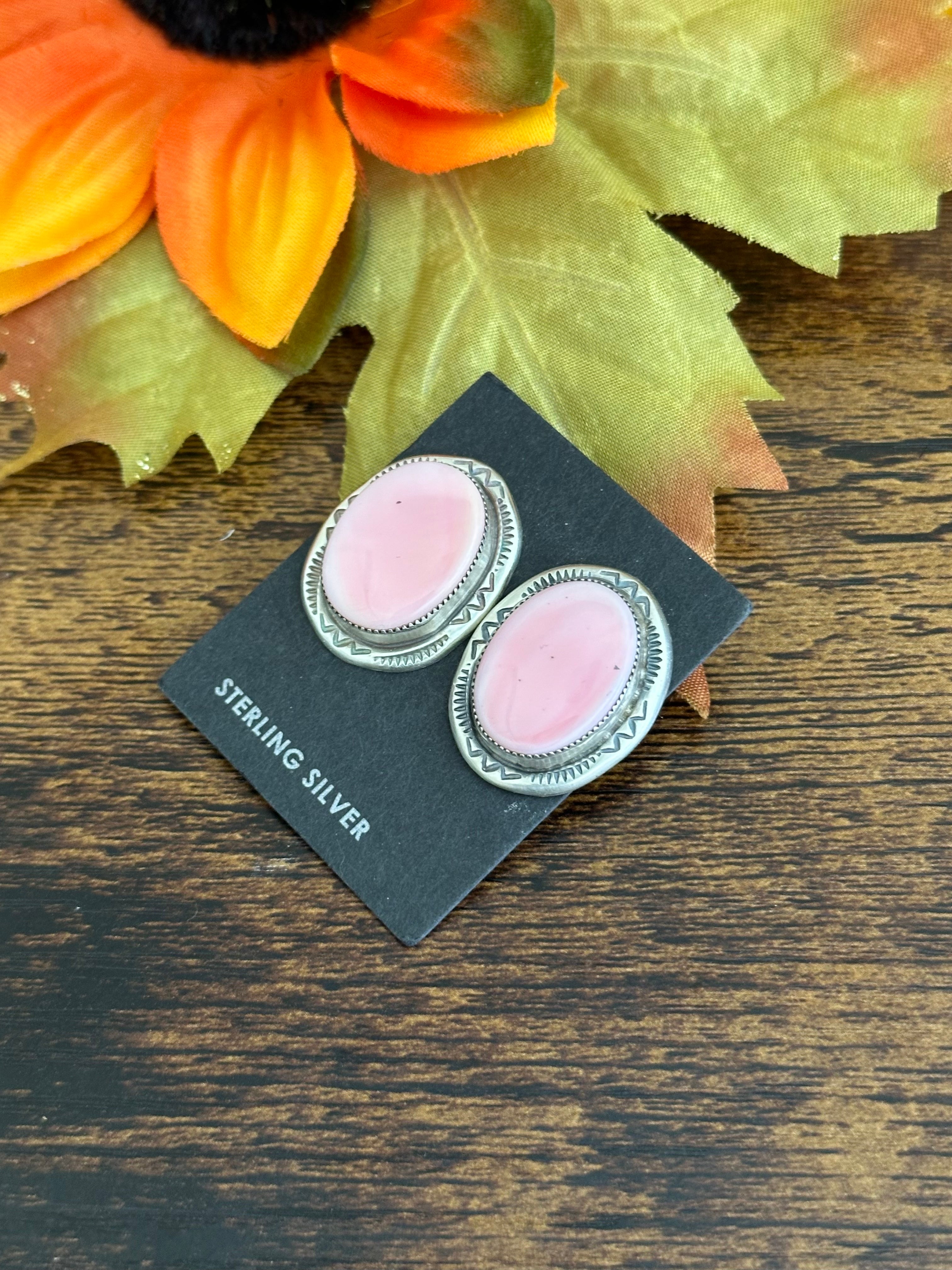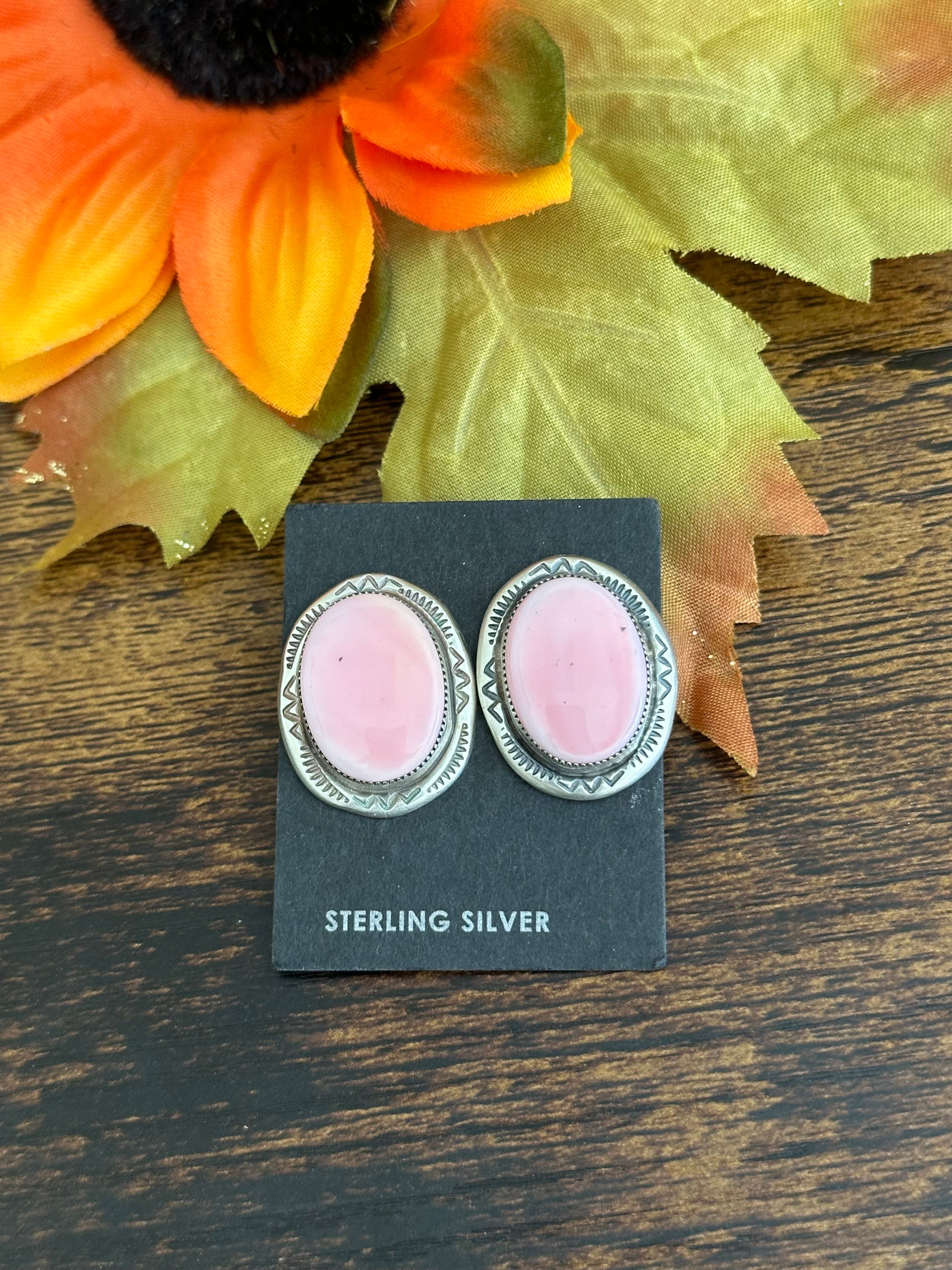 Navajo Made Pink Conch & Sterling Silver Post Earrings