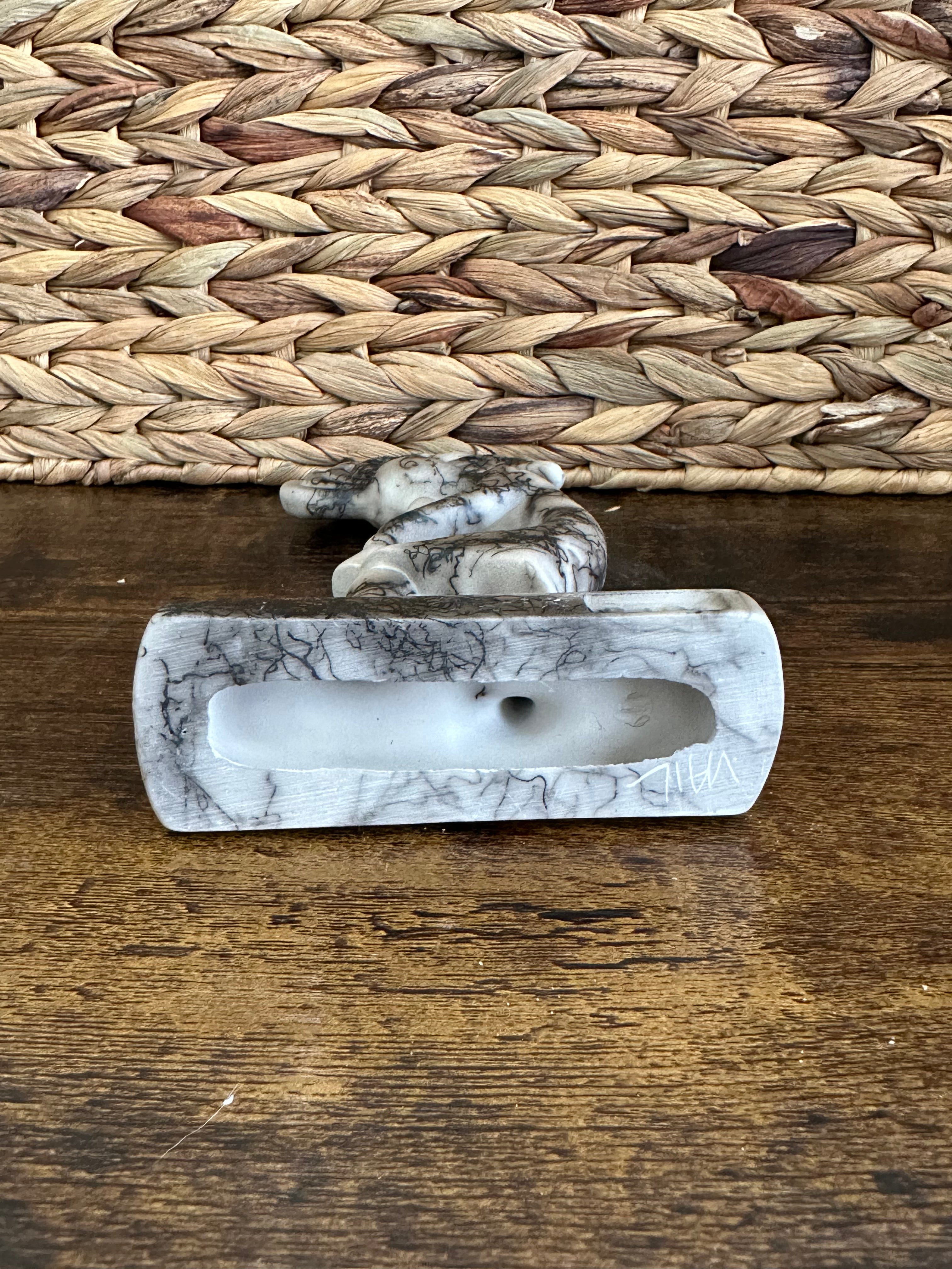 Valentina Vail Navajo Made Pottery. It measures 7 1/4 inches long and 4 3/8 inches wide. Signed by the artist.
