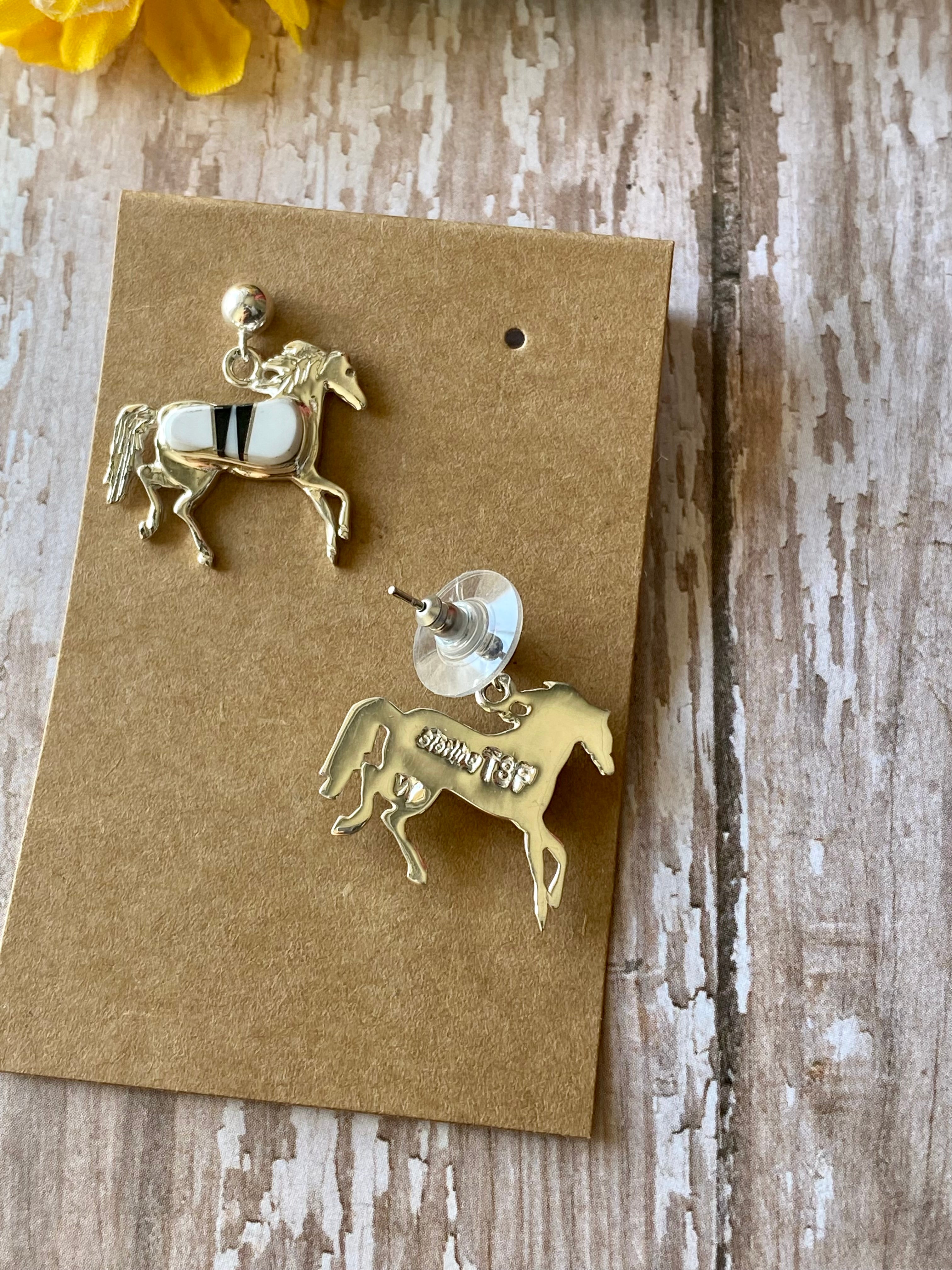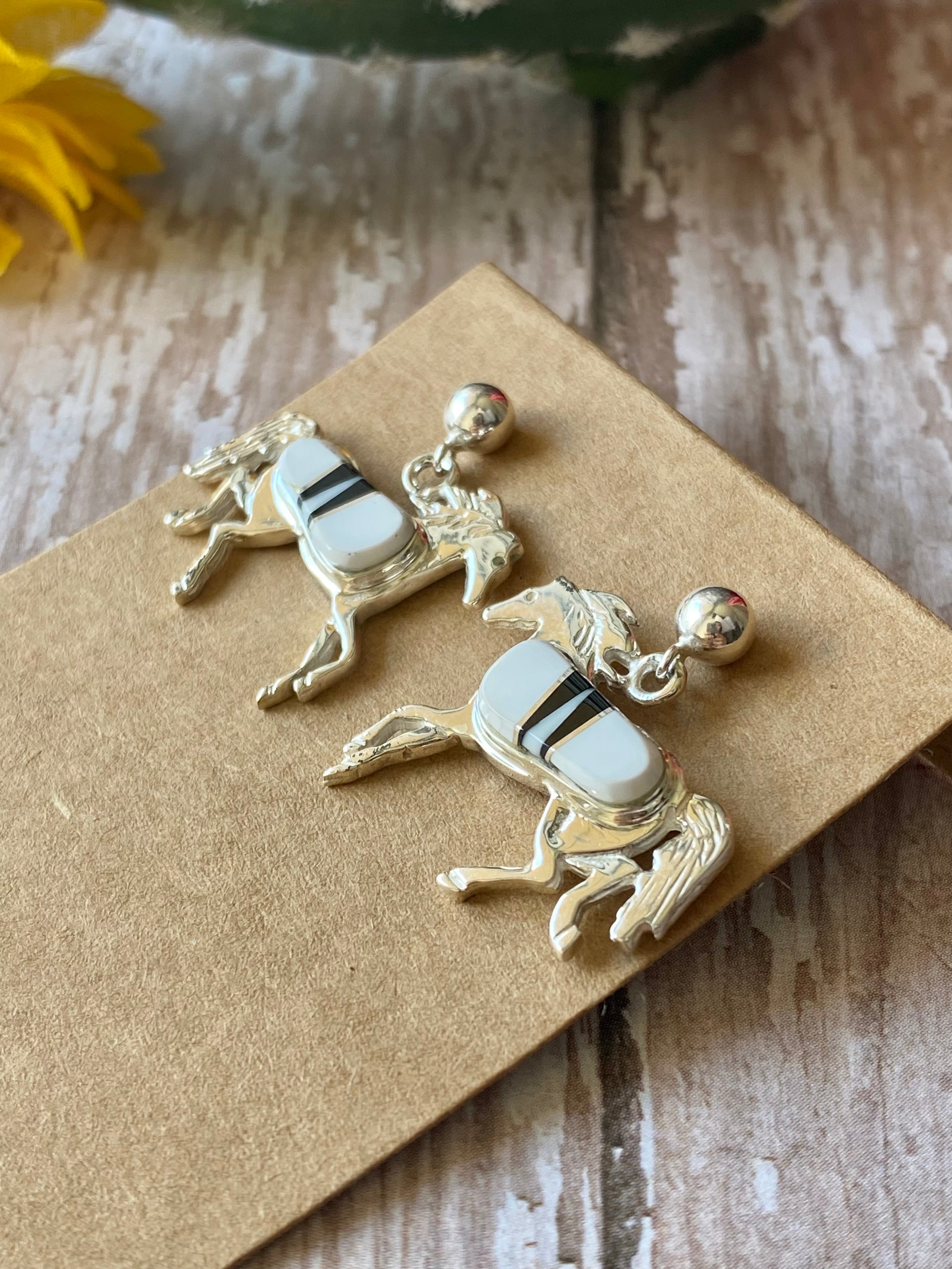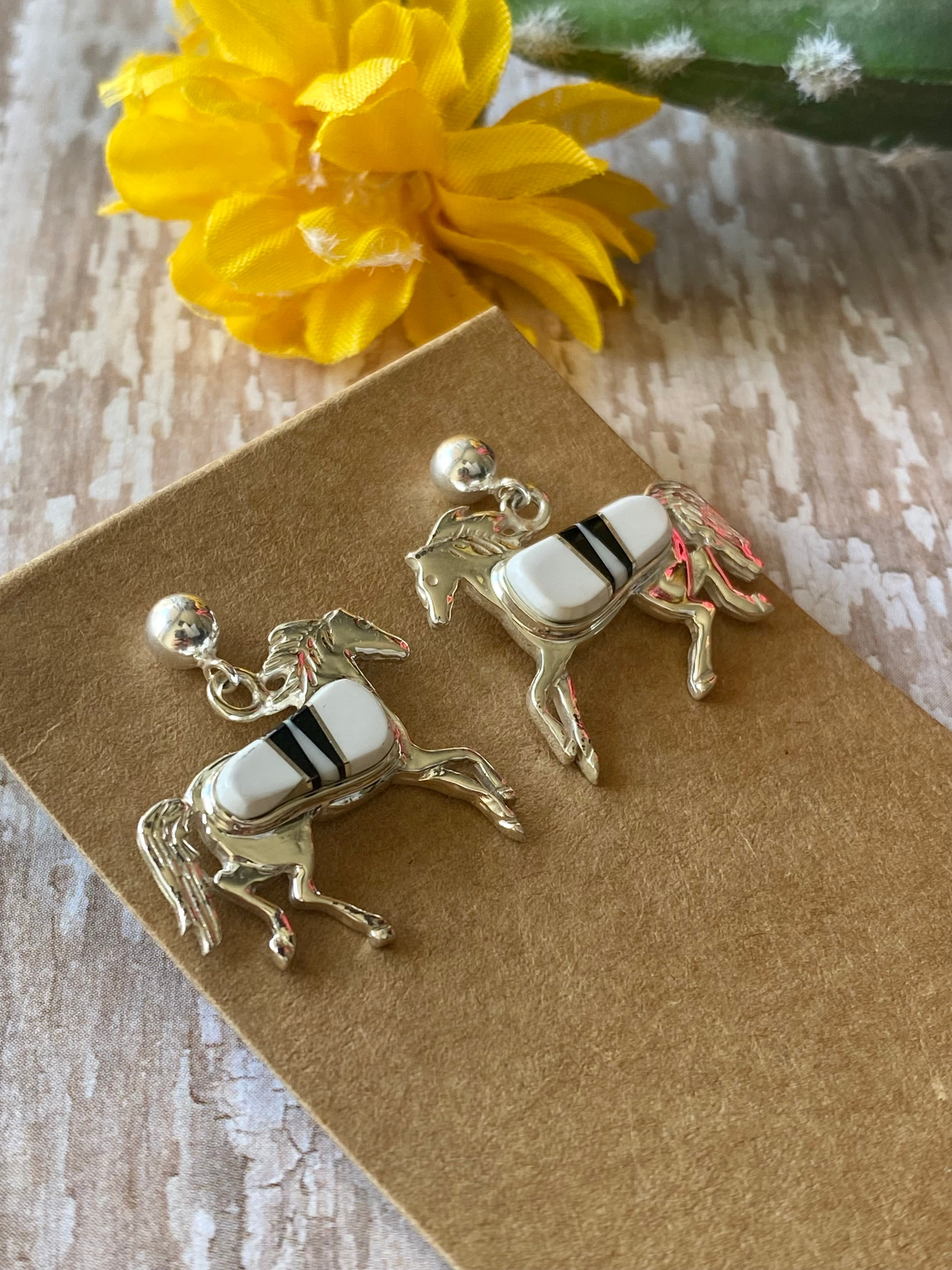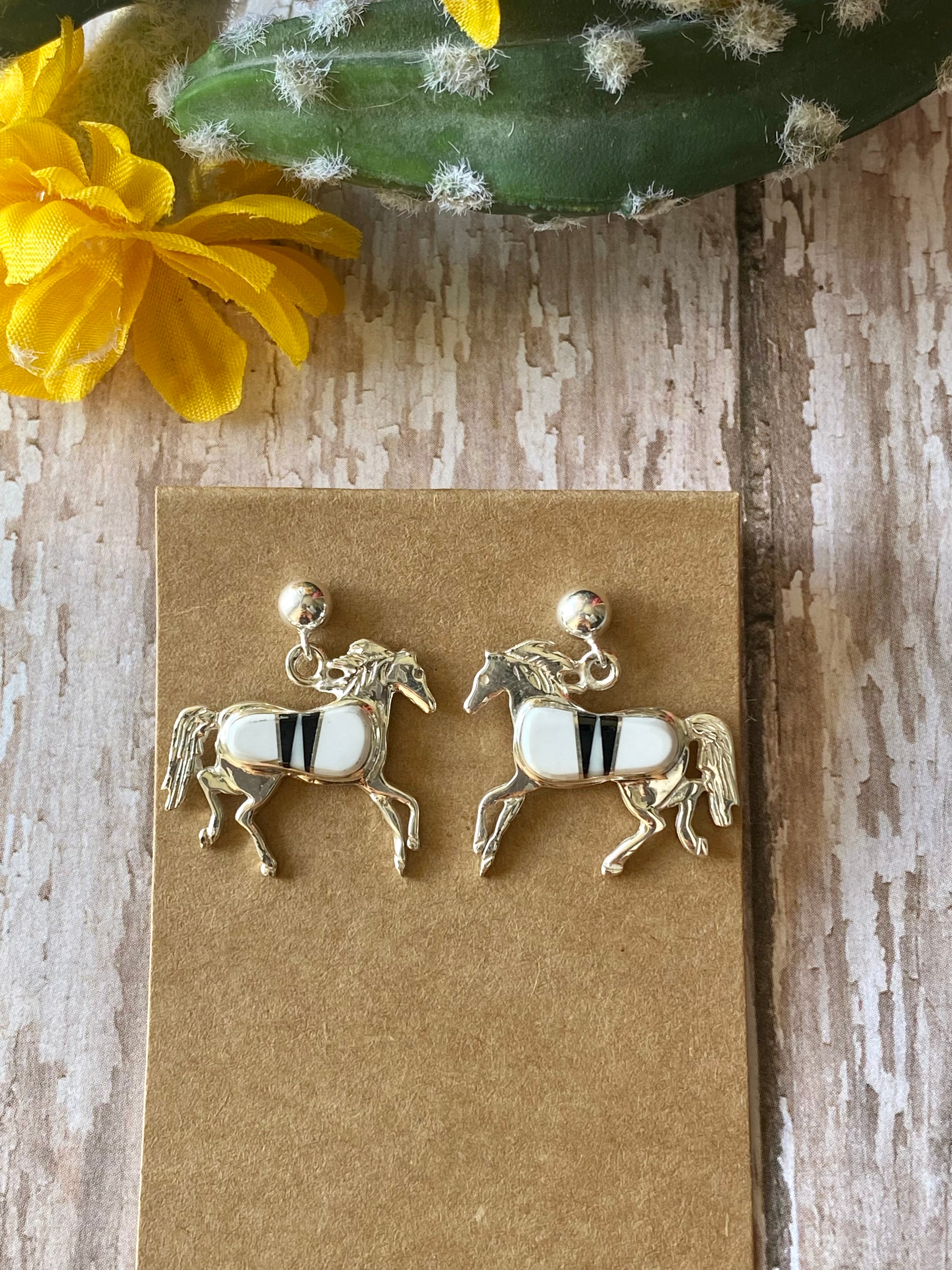 Valerie Yazzie Multi Stone & Sterling Silver Inlay Horse Post Dangle Earrings