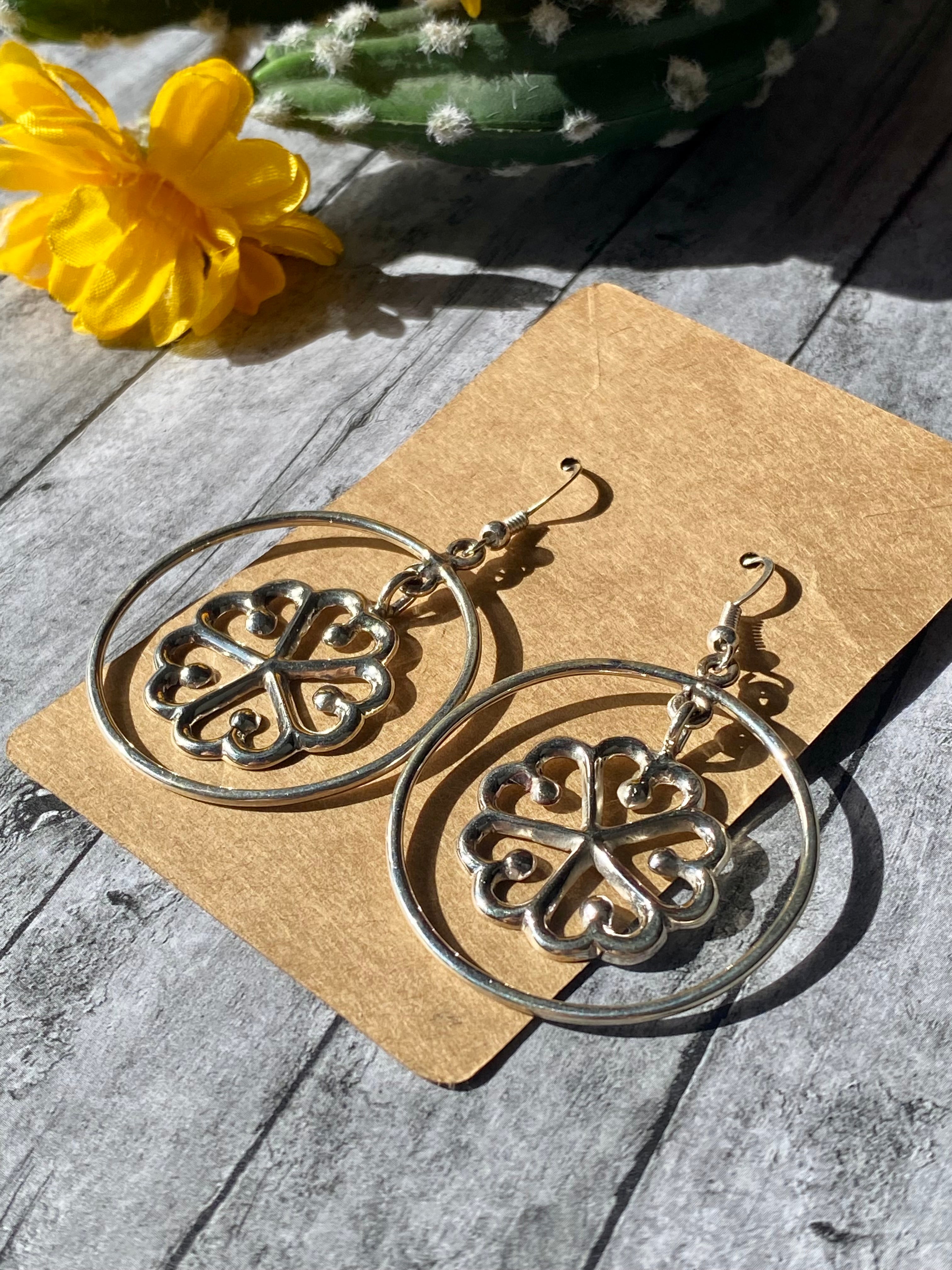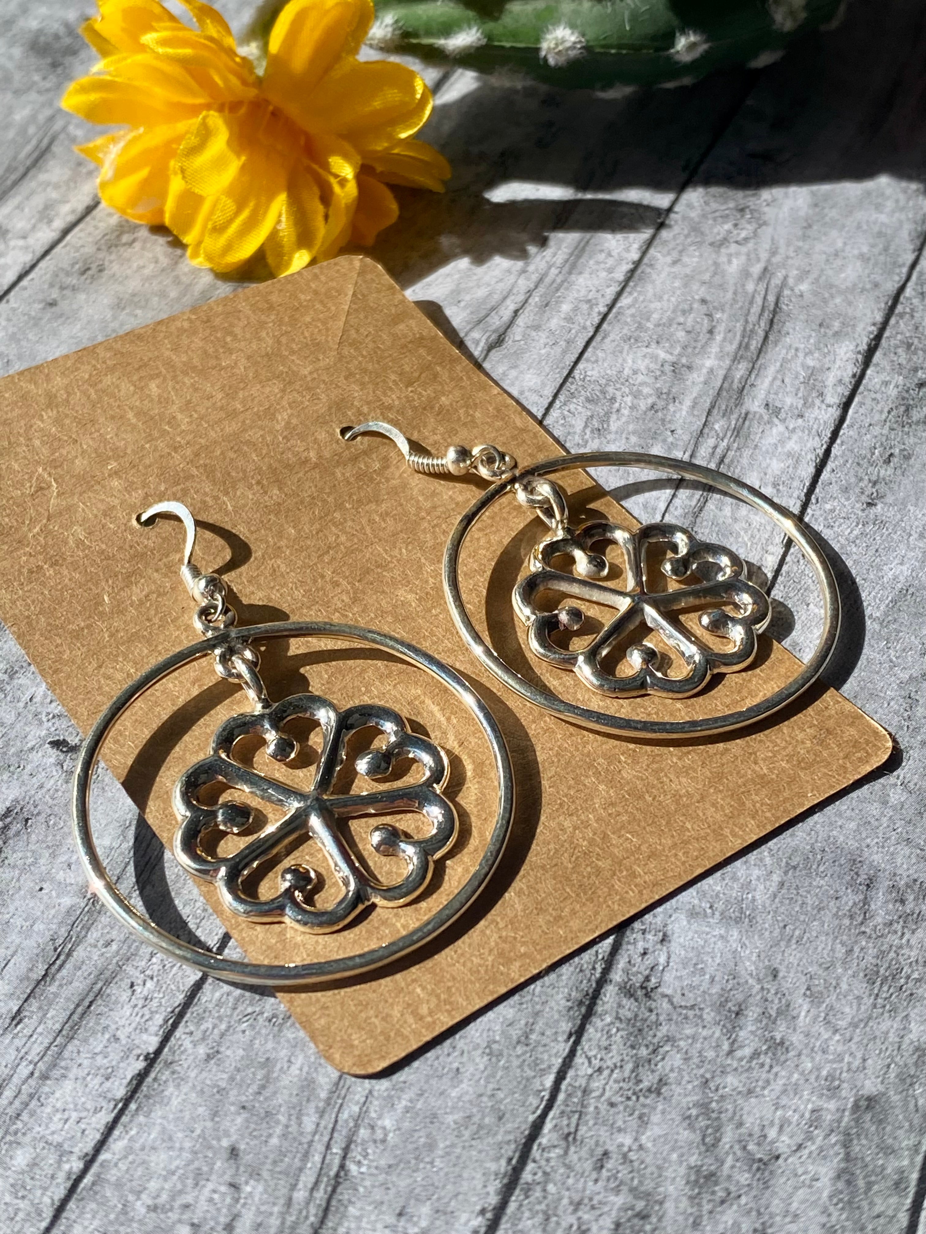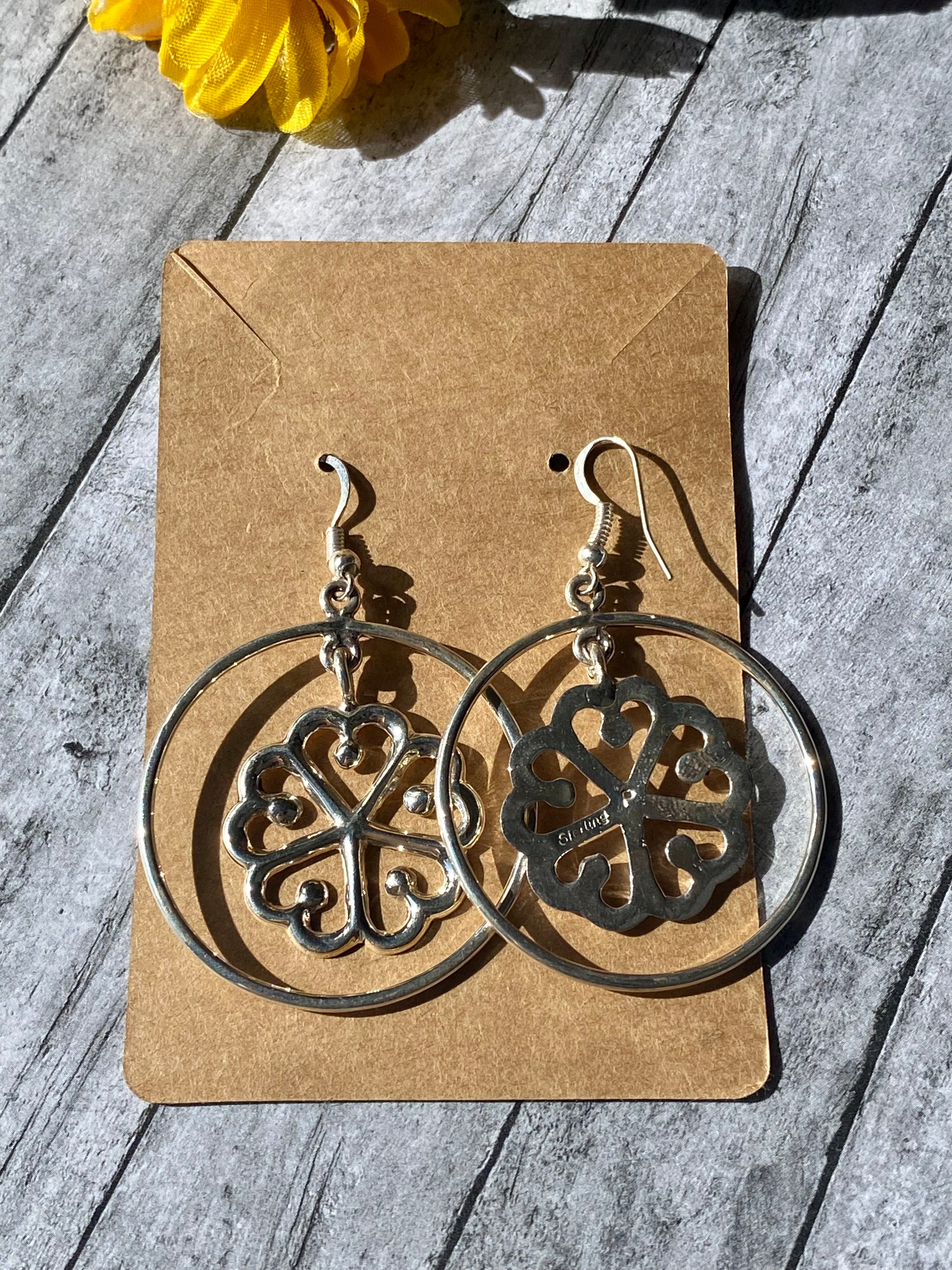 Victor Pena Sterling Silver Dangle Earrings. They measure 2 3/8 inches long and 1 1/2 inches wide. Signed by the artist and stamped sterling silver.