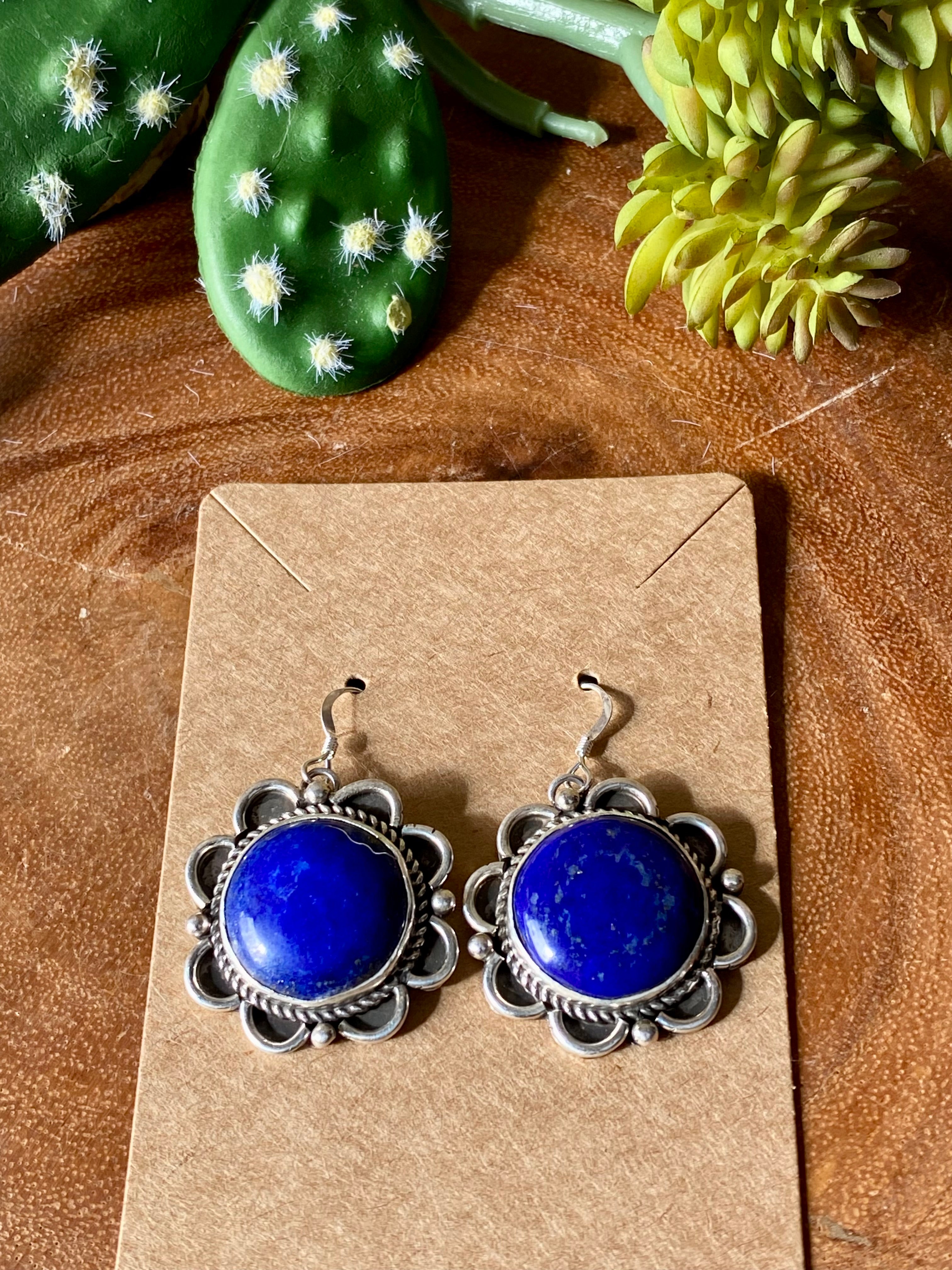 Vintage Etta Endito Lapis & Sterling Silver Dangle Earrings