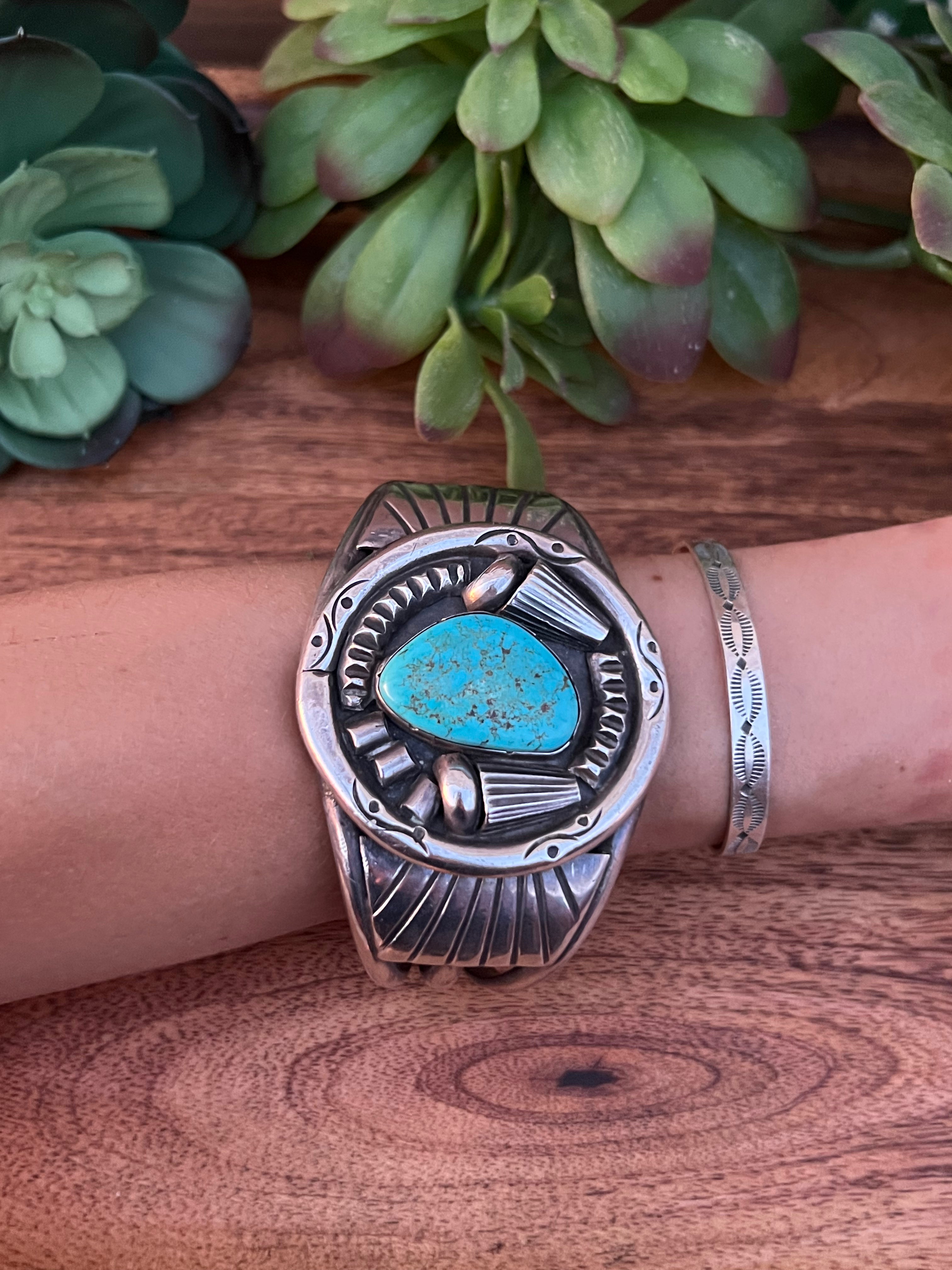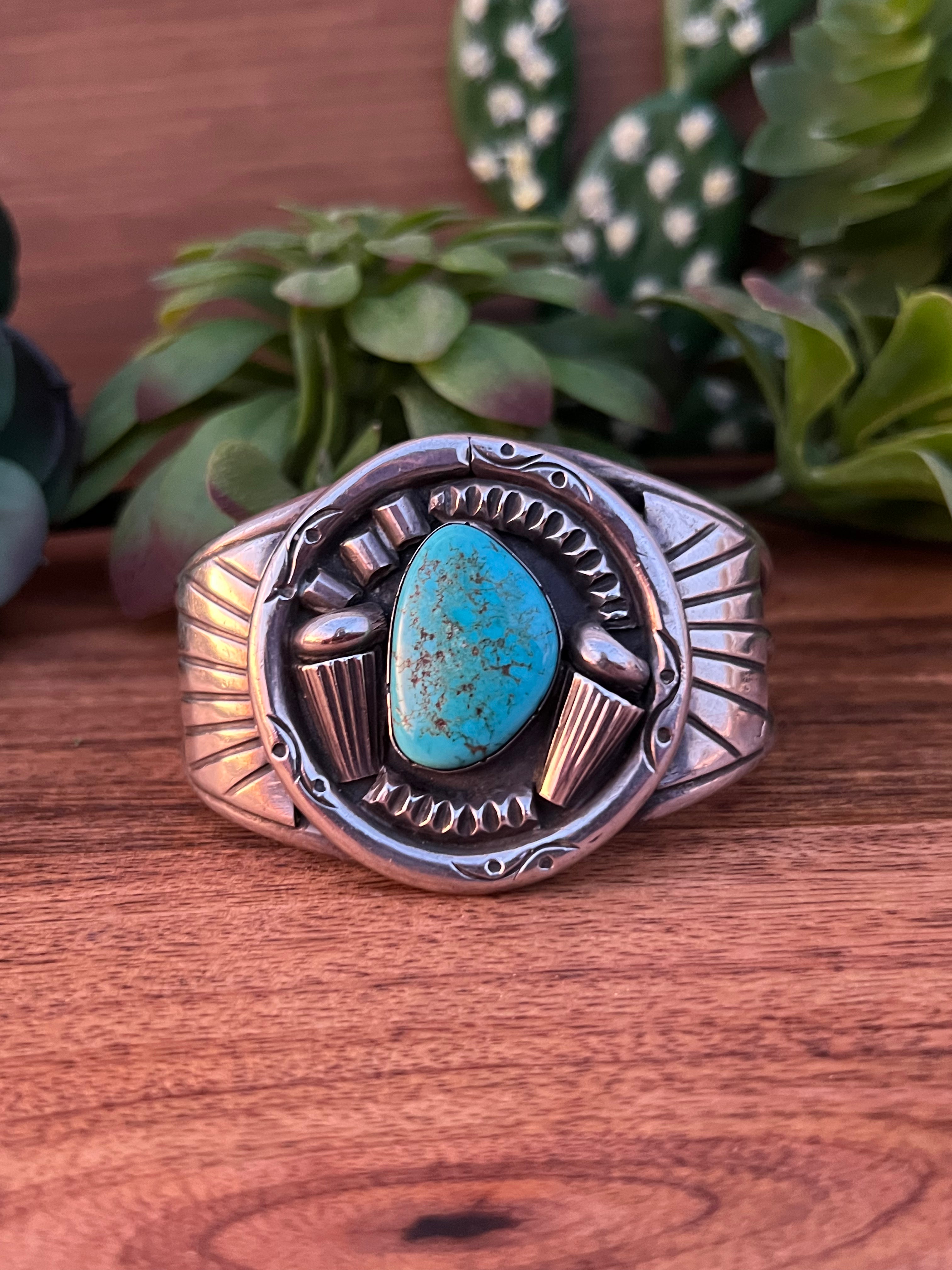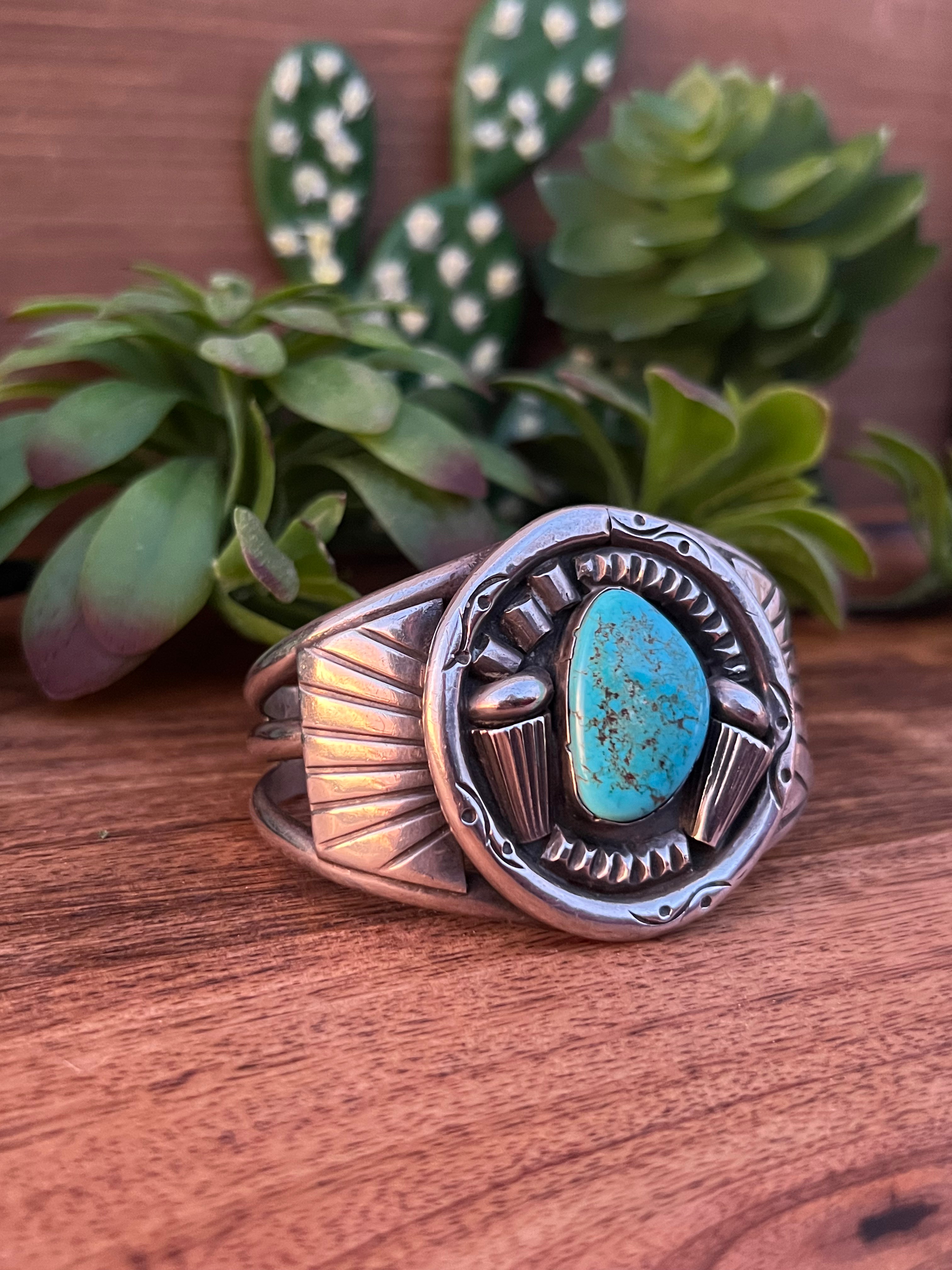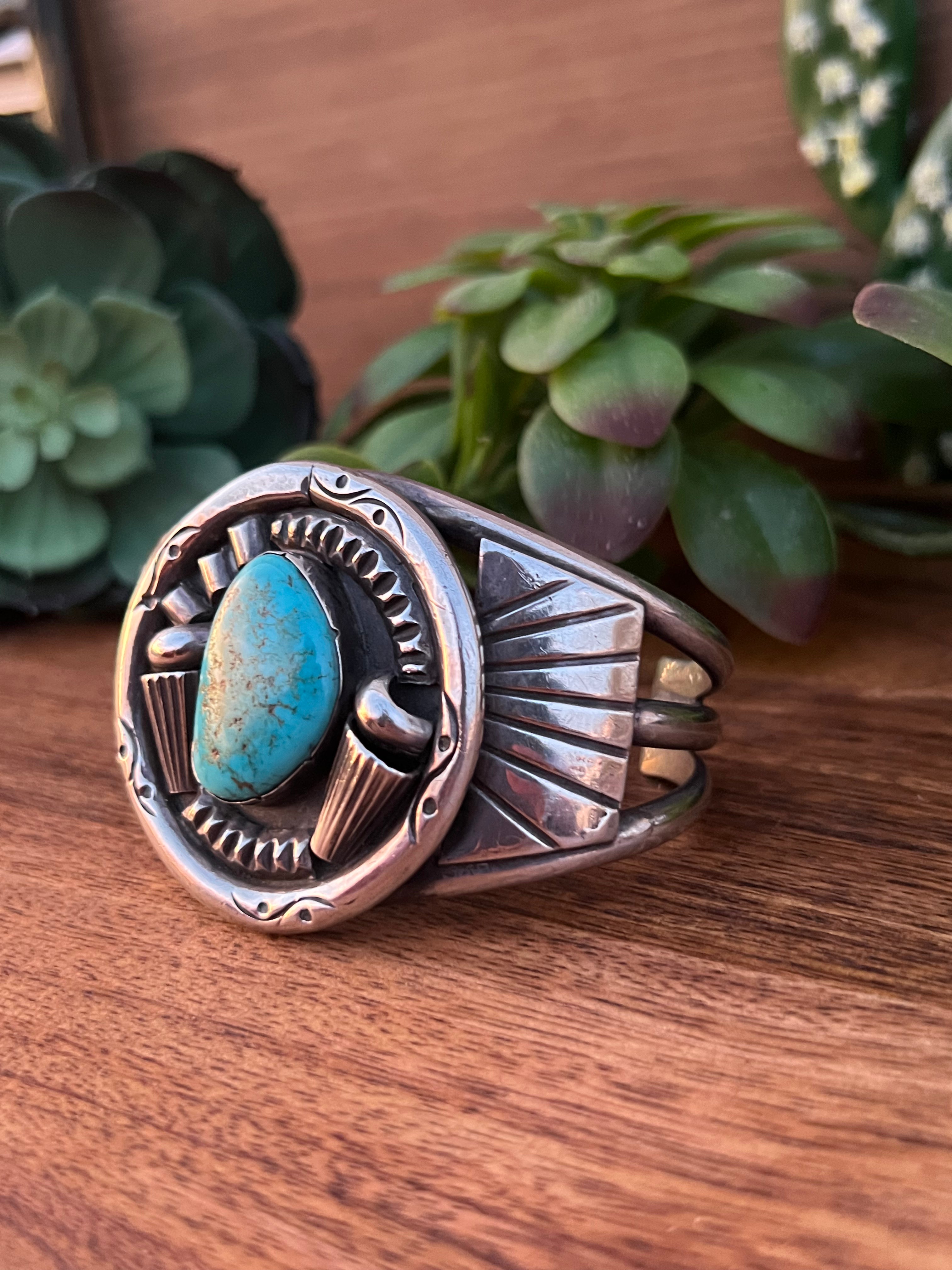 Vintage Kingman Turquoise & Sterling Silver Cuff Bracelet
