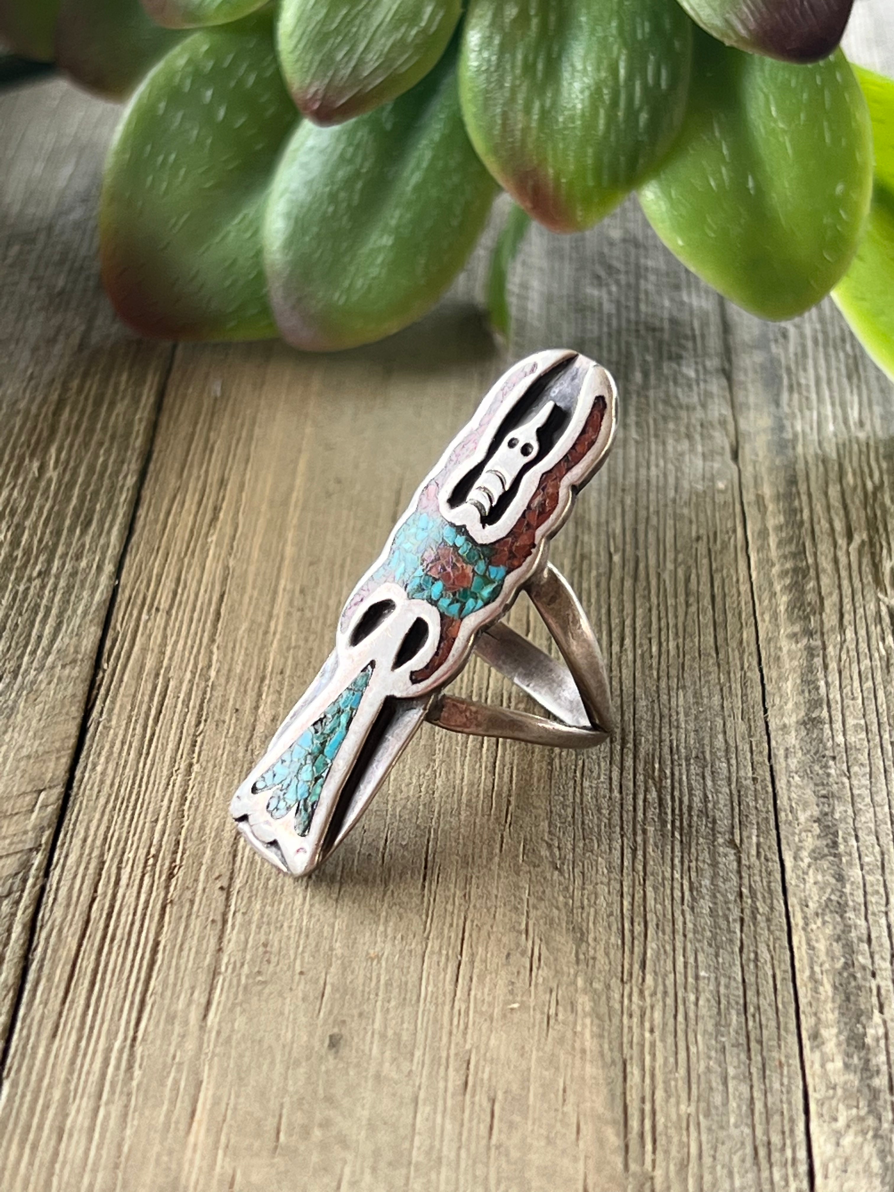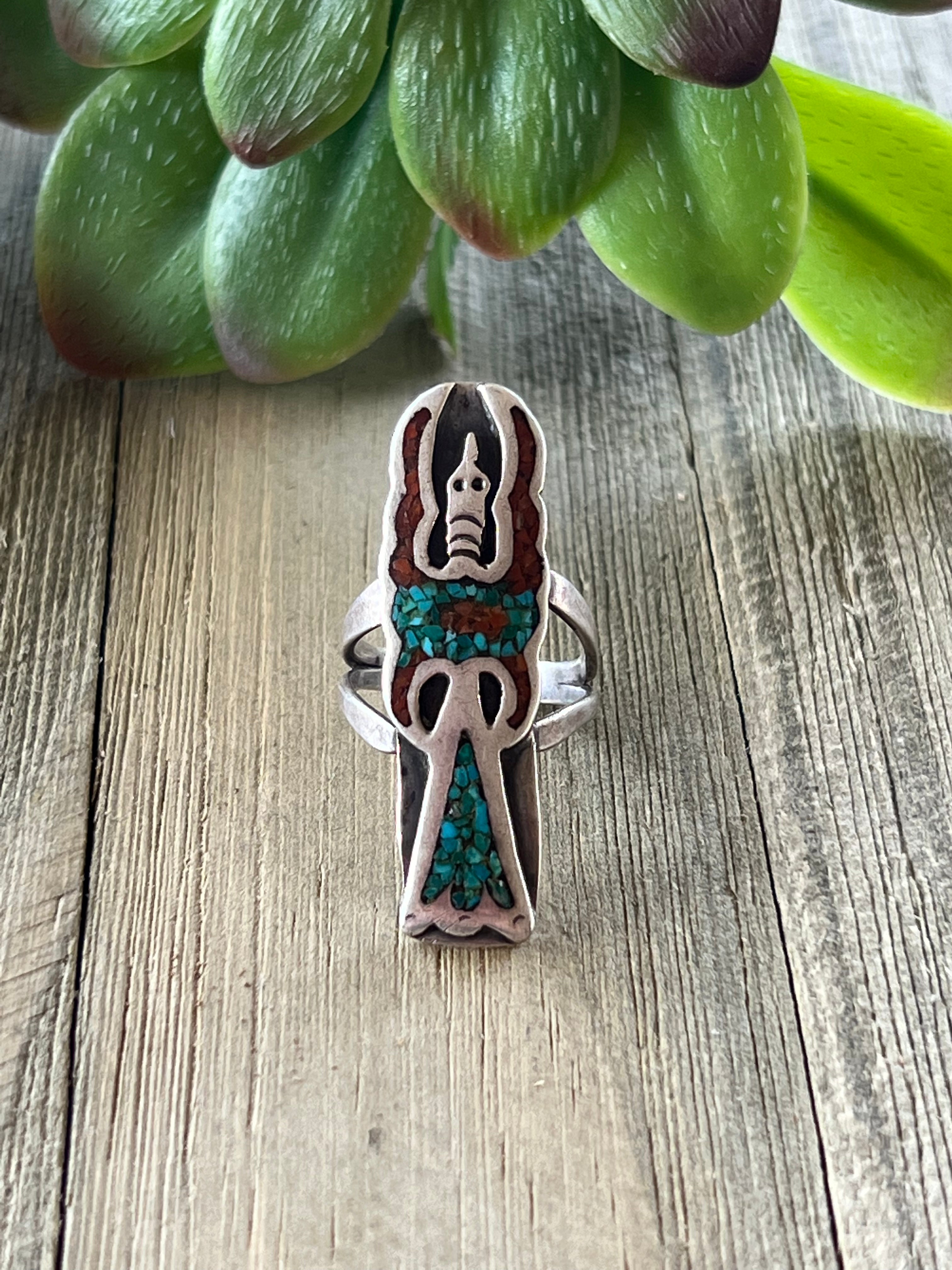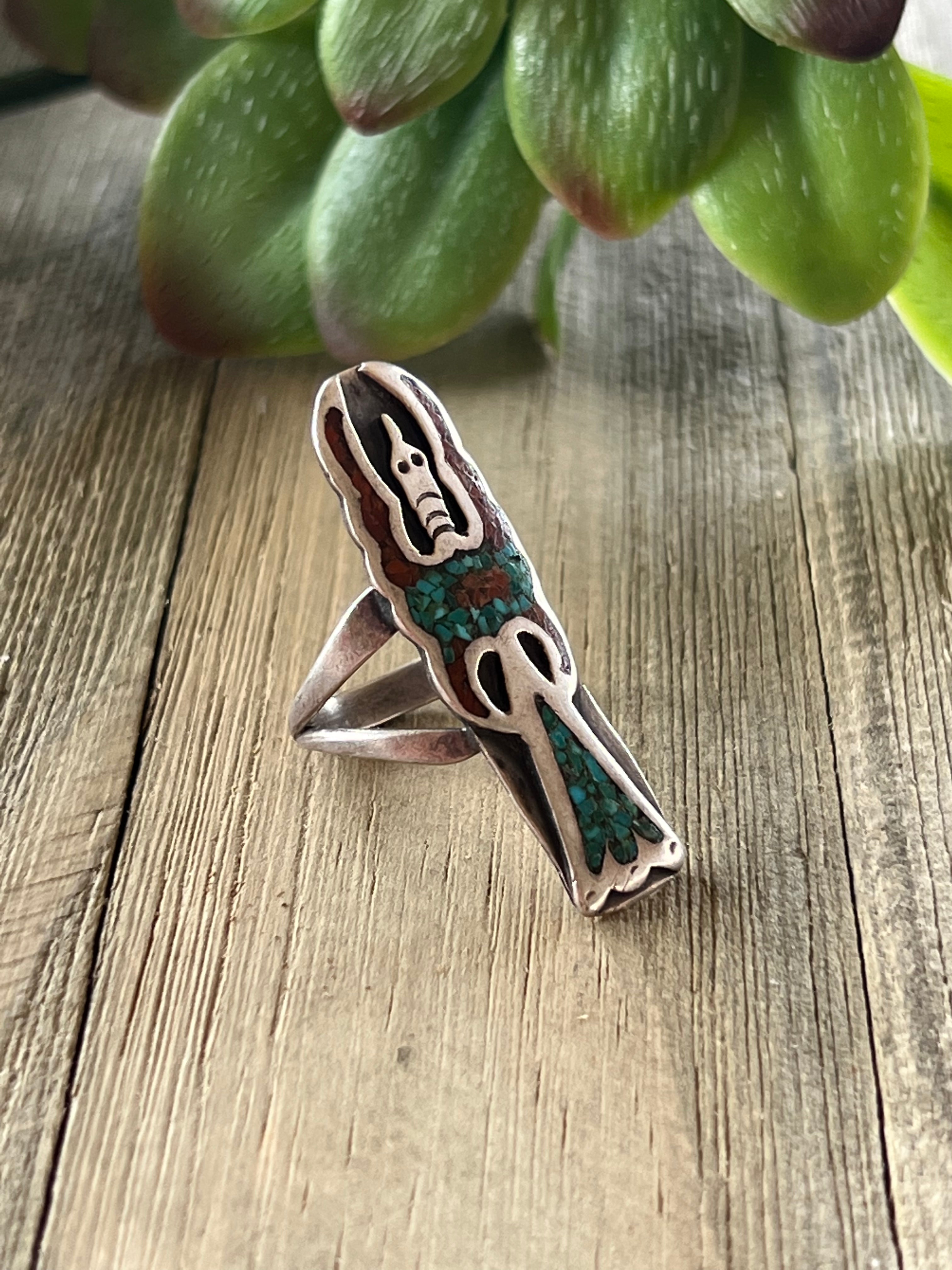 Vintage Navajo Made Multi Stone Flake & Sterling Silver Ring Size 6.25
