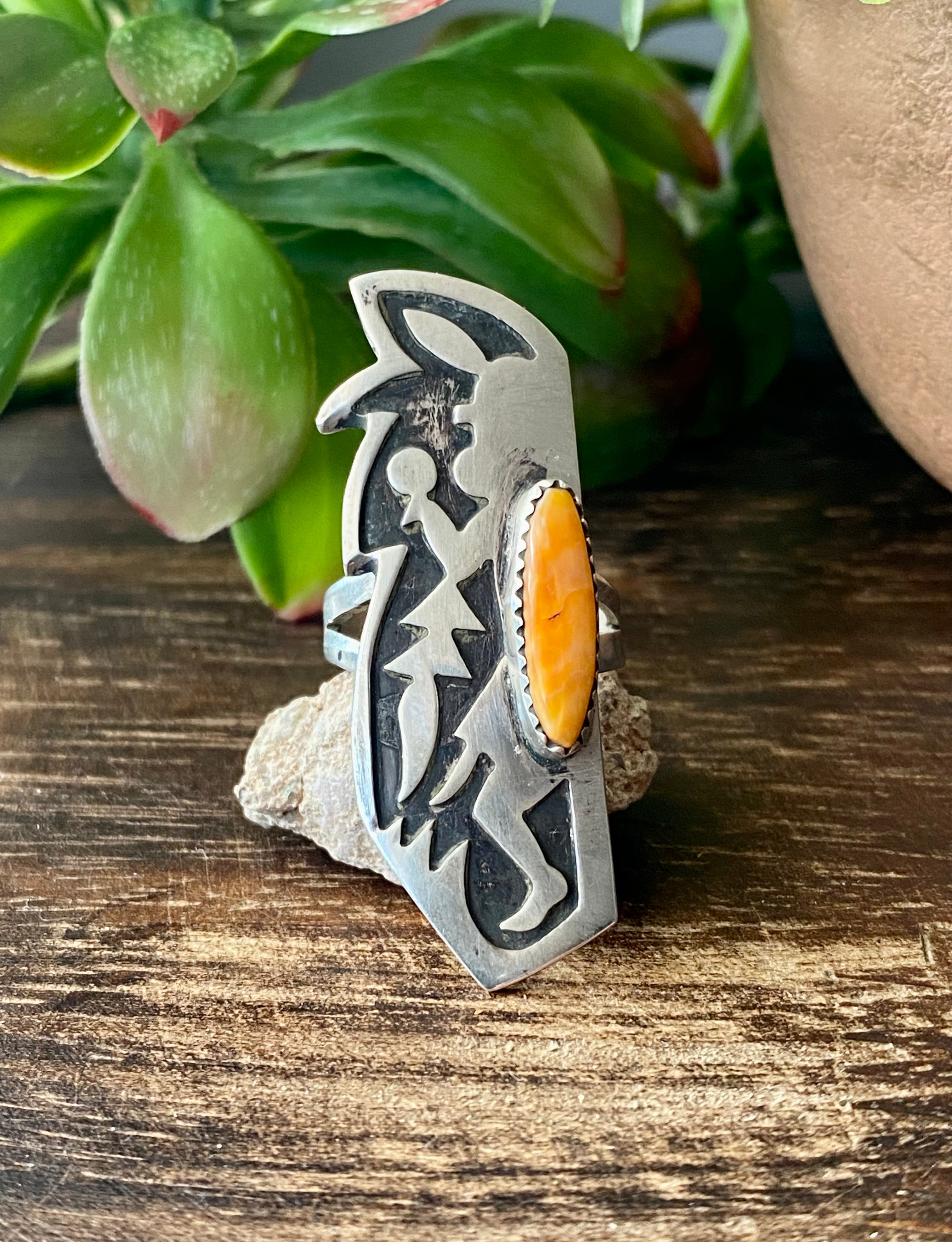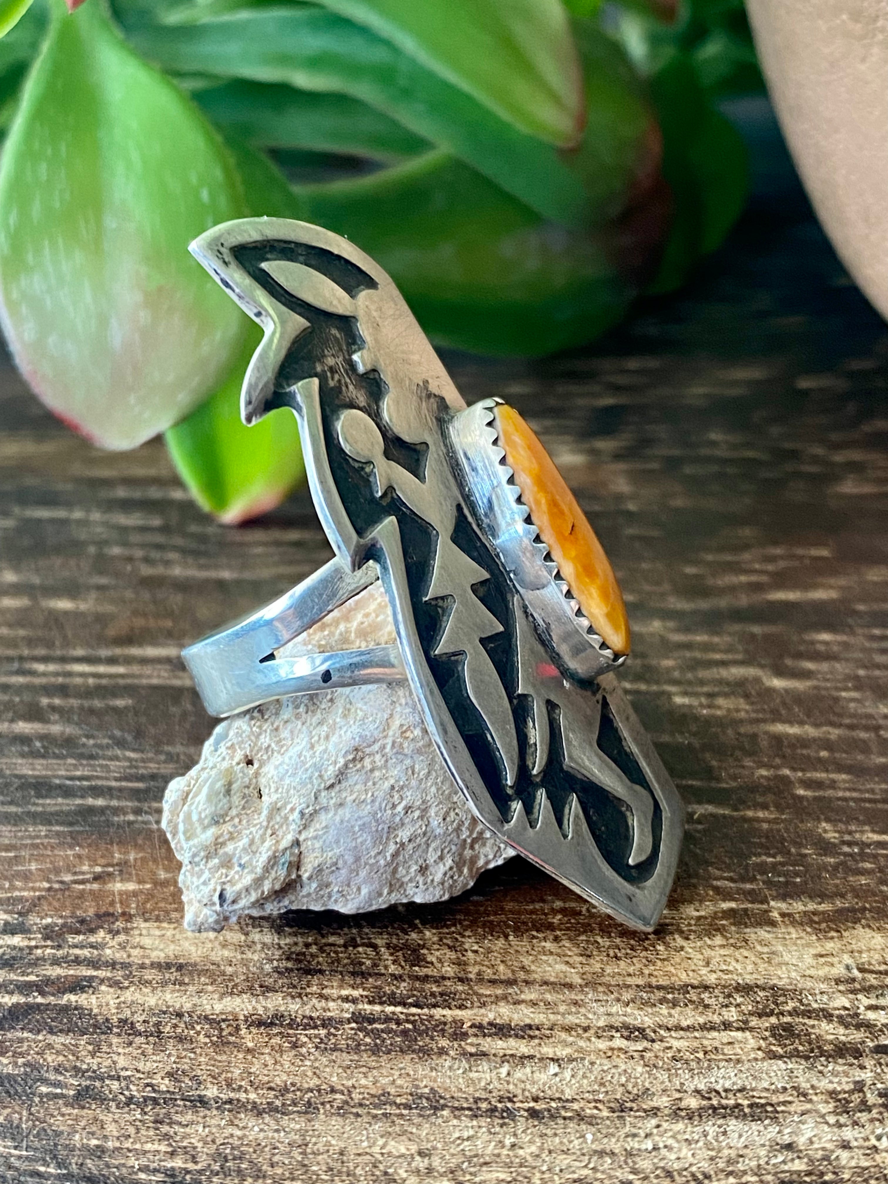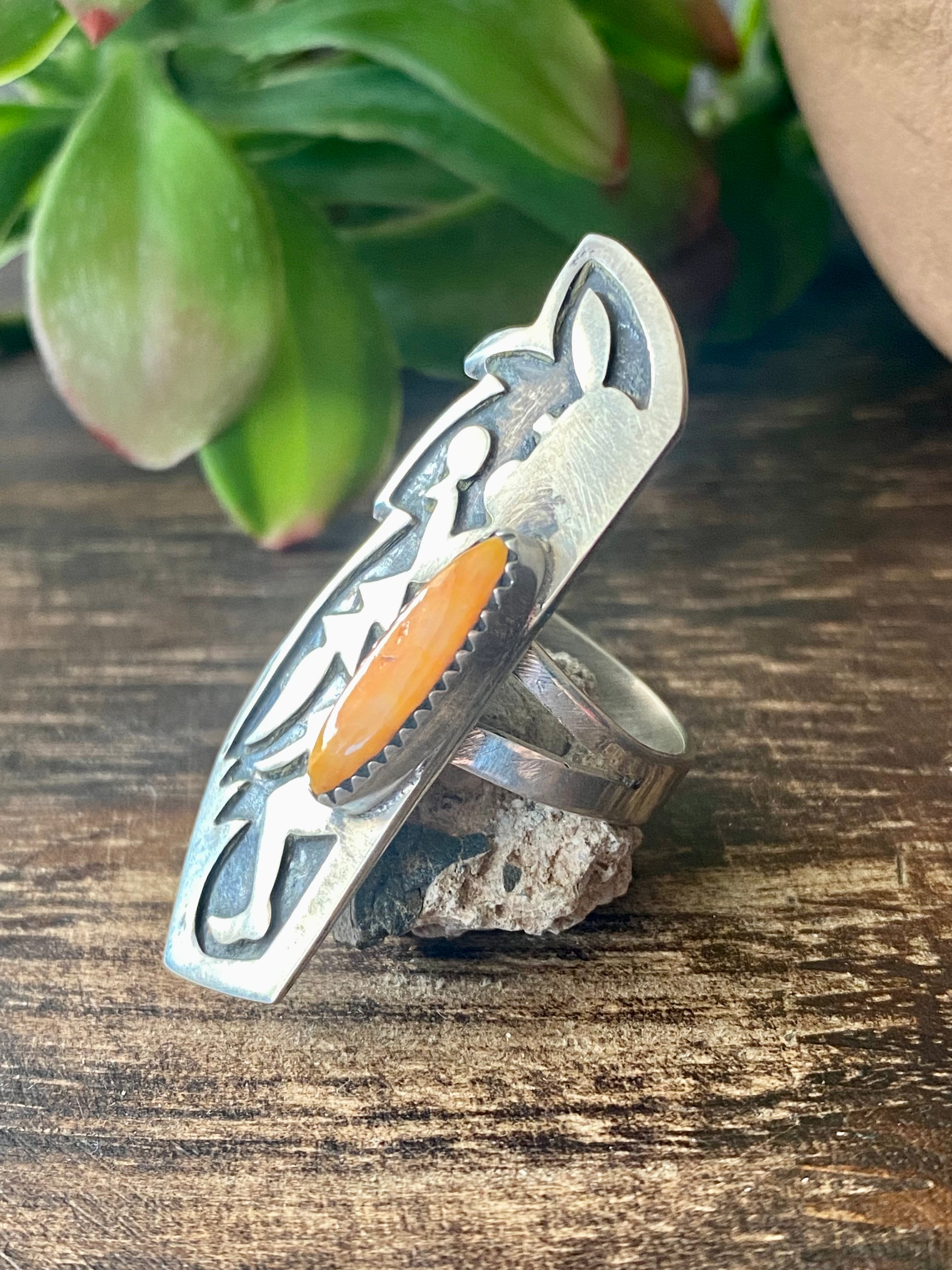 Vintage Navajo Made Spiny Oyster & Sterling Silver Ring Size 8.5
